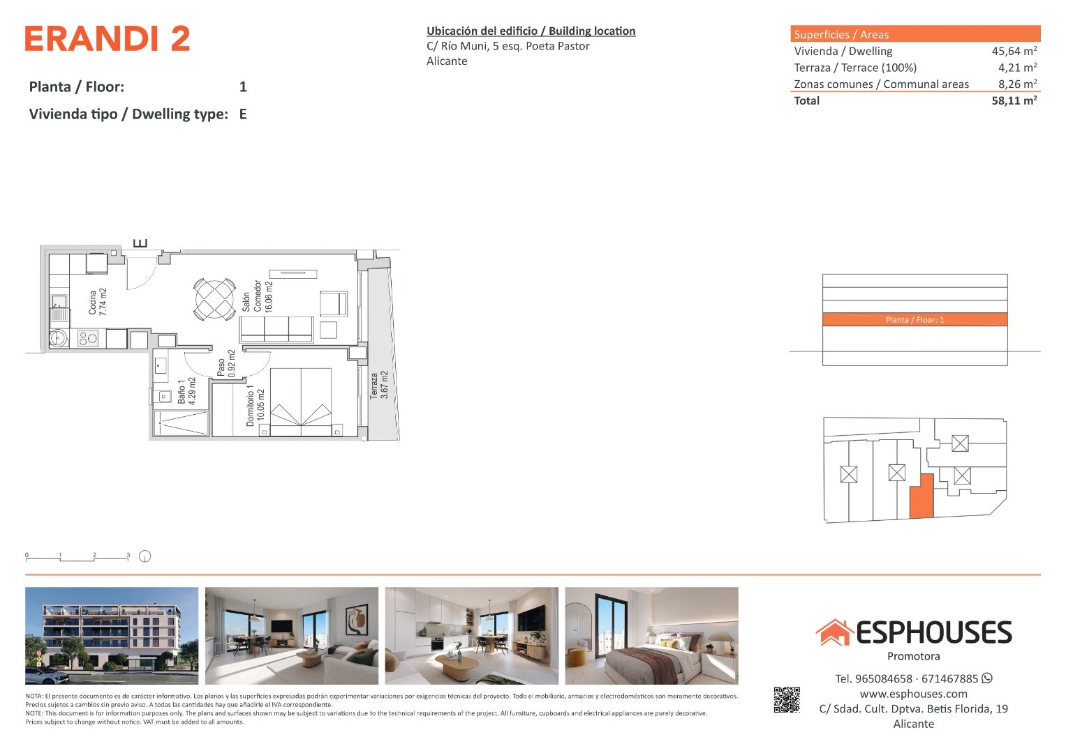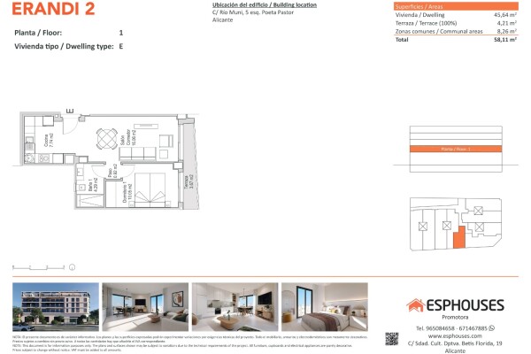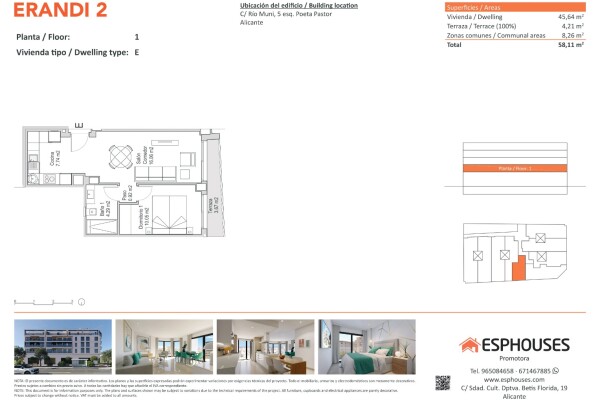 Dit gezellige nieuwbouwappartement bevindt zich op de eerste verdieping van het ERANDI 2-gebouw en heeft een bebouwde oppervlakte van 45,64 m². De functionele indeling omvat één slaapkamer met inbouwkast, een complete badkamer en een lichte woon-eetkamer met open keuken. Daarnaast is er een westgerichte terras van 4,21 m², perfect om van de middagz...on te genieten.