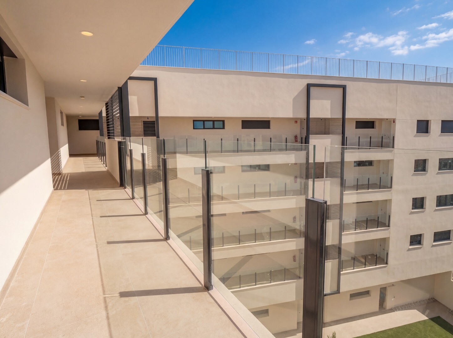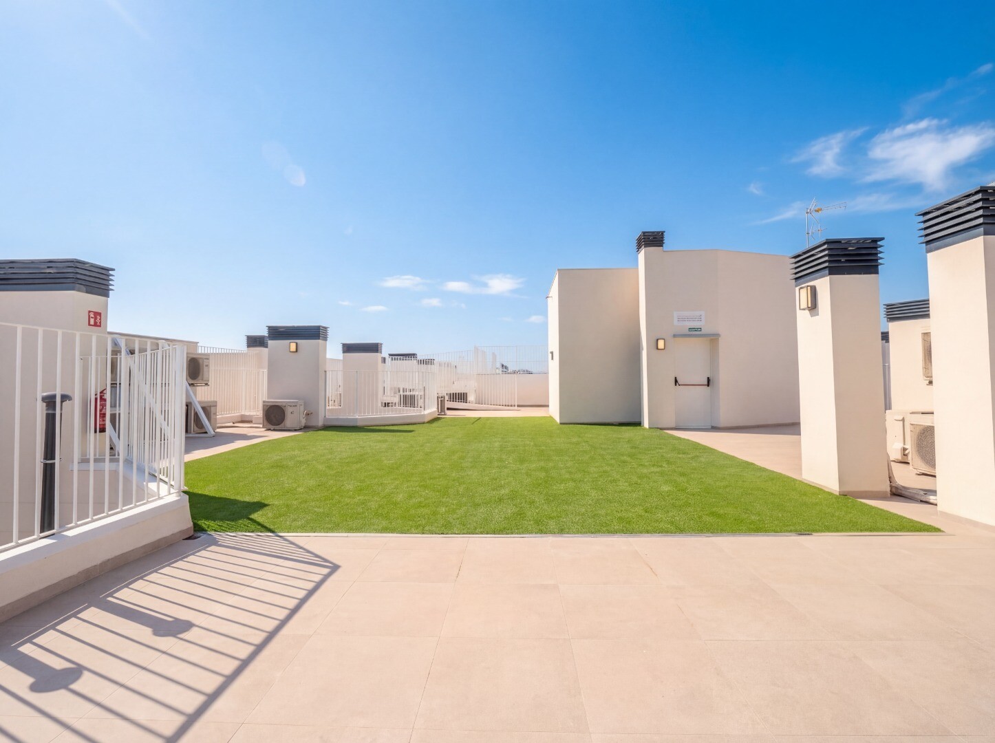 Het gebouw biedt uitgebreide gemeenschappelijke voorzieningen, waaronder een gemeenschappelijk zwembad en een aantrekkelijke chill-outzone op het dak, evenals aangelegde tuinen en een kinderspeelplaats, ideaal voor gezinnen.