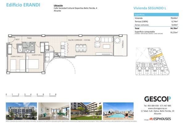 Dit gloednieuwe appartement bevindt zich op de tweede verdieping van het ERANDI-gebouw, in de gevestigde woonwijk La Florida in Alicante, een rustige omgeving met perfecte verbindingen naar het stadscentrum. De woning heeft een totale bebouwde oppervlakte van 91 m², verdeeld over twee slaapkamers, één complete badkamer en een lichte woon-eetkamer m...et open keuken, ontworpen in een moderne en functionele stijl voor dagelijks comfort.