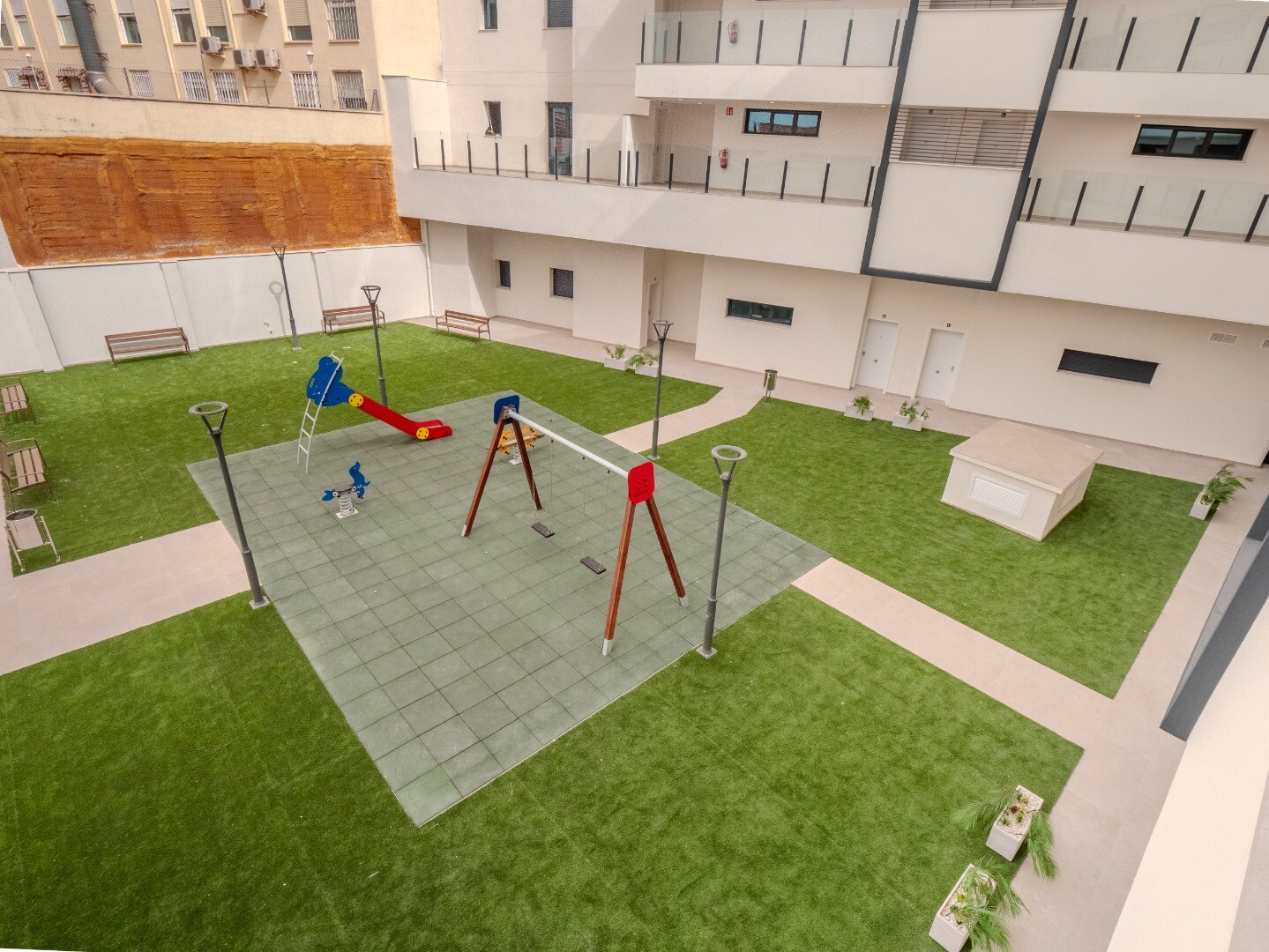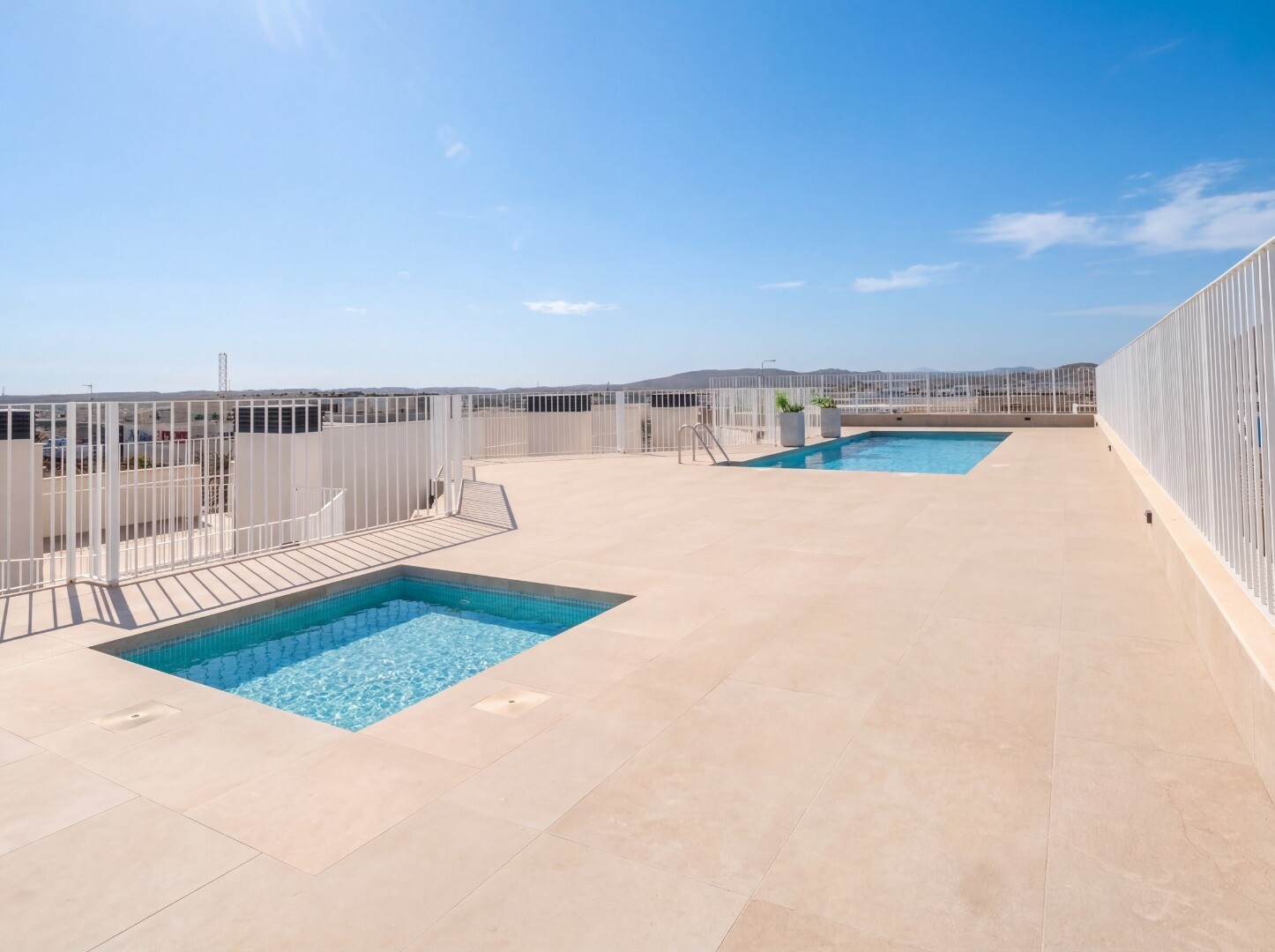 Het wooncomplex biedt uitgebreide gemeenschappelijke voorzieningen, waaronder een gemeenschappelijk zwembad en een chill-outzone op het dak, evenals aangelegde tuinen en een kinderspeelplaats, ideaal voor ontspanning en vrije tijd.