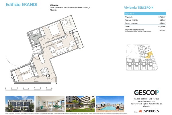 Het ERANDI-gebouw ligt op slechts enkele minuten lopen van het winkelcentrum Puerta de Alicante, op slechts 2 km van het strand en 12 km van de luchthaven Alicante-Elche. Het heeft uitstekende openbaarvervoerverbindingen, waardoor het centrum van Alicante in ongeveer 10–15 minuten bereikbaar is. Een ideale optie zowel als hoofdverblijf als investering in een van de meest veelbelovende gebieden van de stad.