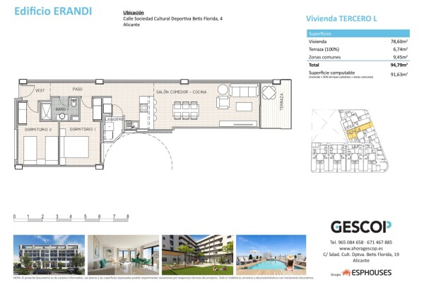 Het ERANDI-gebouw ligt op slechts enkele minuten lopen van het winkelcentrum Puerta de Alicante, op slechts 2 km van het strand en 12 km van de luchthaven Alicante-Elche. Het heeft uitstekende openbaarvervoerverbindingen, waardoor het centrum van Alicante in ongeveer 10–15 minuten bereikbaar is en rust perfect combineert met nabijheid van alle voorzieningen en recreatiemogelijkheden.