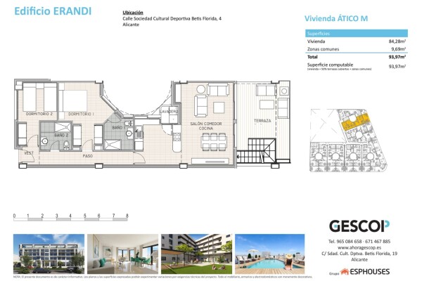 Het ERANDI-gebouw ligt op slechts enkele minuten lopen van het winkelcentrum Puerta de Alicante, op slechts 2 km van het strand en 12 km van de luchthaven Alicante-Elche. Het heeft uitstekende openbaarvervoerverbindingen, waardoor het centrum van Alicante in ongeveer 10–15 minuten bereikbaar is. Een ideale optie als permanente woning of investering.