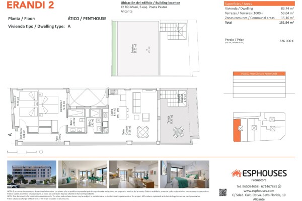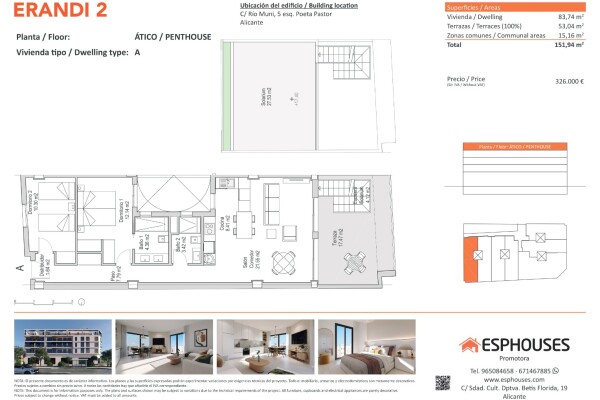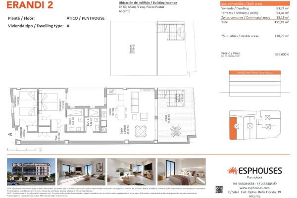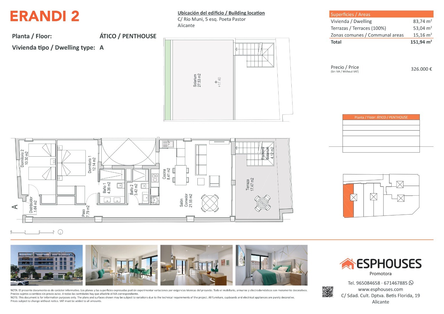 Dit exclusieve nieuwbouwpenthouse bevindt zich op de vierde verdieping van het ERANDI 2-gebouw en valt op door de royale buitenruimtes en westelijke oriëntatie, perfect om 's middags van de zon te genieten. De woning beschikt over 85,52 m² bebouwde oppervlakte, met twee slaapkamers met inbouwkasten, twee badkamers en een lichte woon-eetkamer met op...en keuken in moderne stijl.