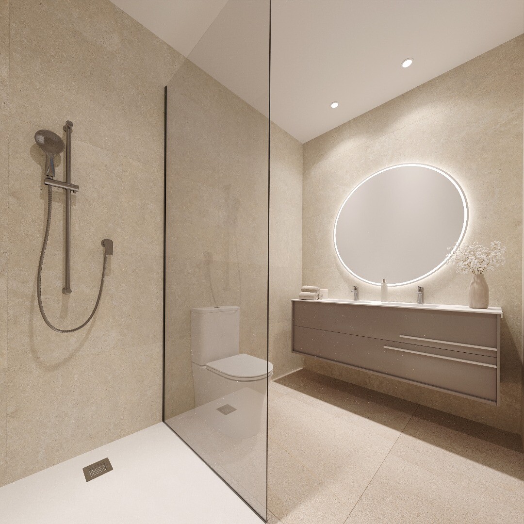 Het hoogtepunt van de woning is het riante privé buitenruimte van 122,94 m², verdeeld over een terras en een groot solarium op het dak van het gebouw – ideaal om het hele jaar door van het mediterrane klimaat te genieten.
