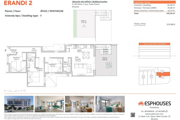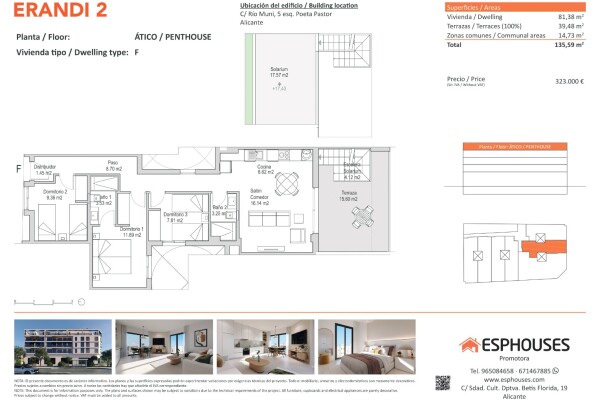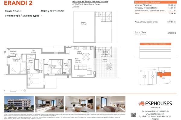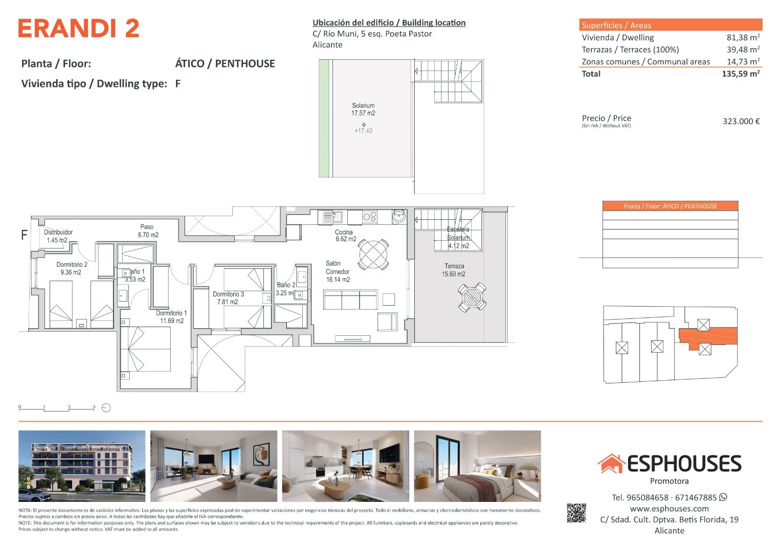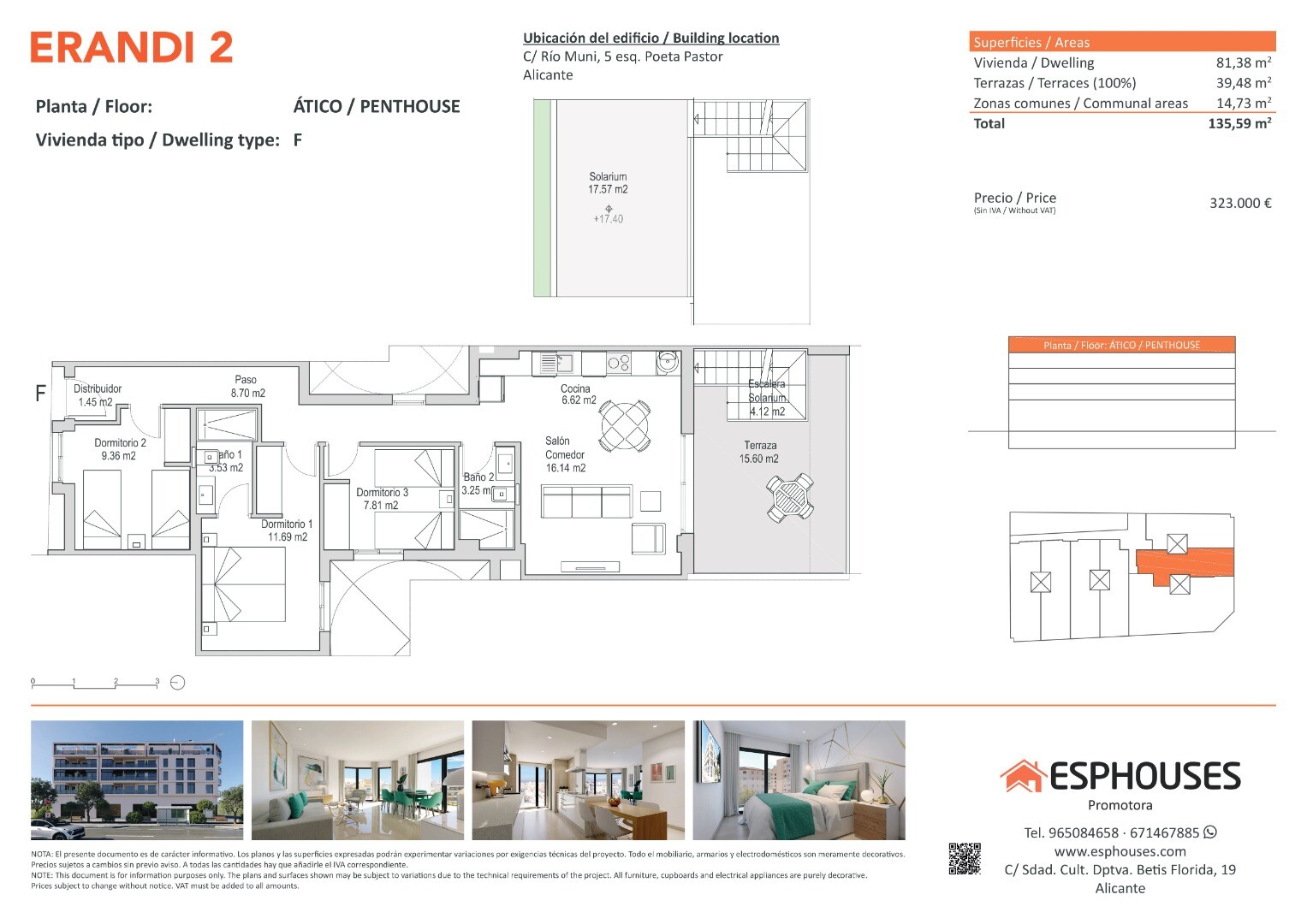 Dit nieuwbouw penthouse bevindt zich op de vierde verdieping van gebouw ERANDI 2, in de karakteristieke wijk La Florida – een goed verbonden en gevestigde buurt van Alicante. De woning heeft een bebouwde oppervlakte van 81,38 m² met drie slaapkamers met inbouwkasten, twee complete badkamers en een ruime woon-eetkamer met open keuken in een modern e...n functioneel ontwerp.