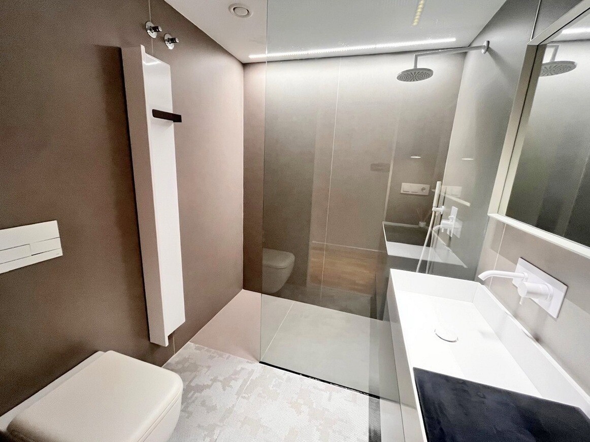 Het appartement heeft tevens een glazen terras, airconditioning (warm en koud), centrale verwarming, dubbele beglazing en automatische zonwering, zonneschermen en rolgordijnen.