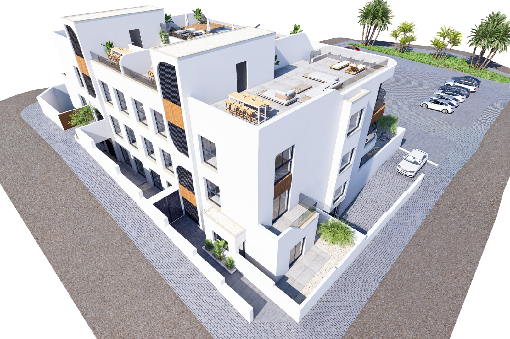 Het wooncomplex heeft een gemeenschappelijk zwembad, dat het hele jaar door een exclusieve omgeving biedt voor ontspanning en plezier.