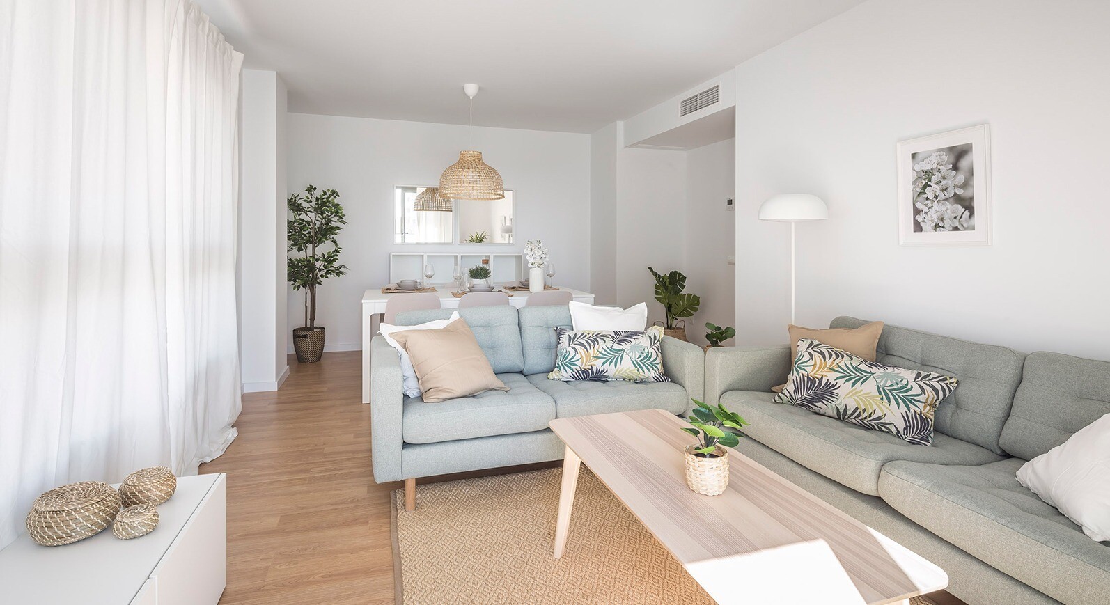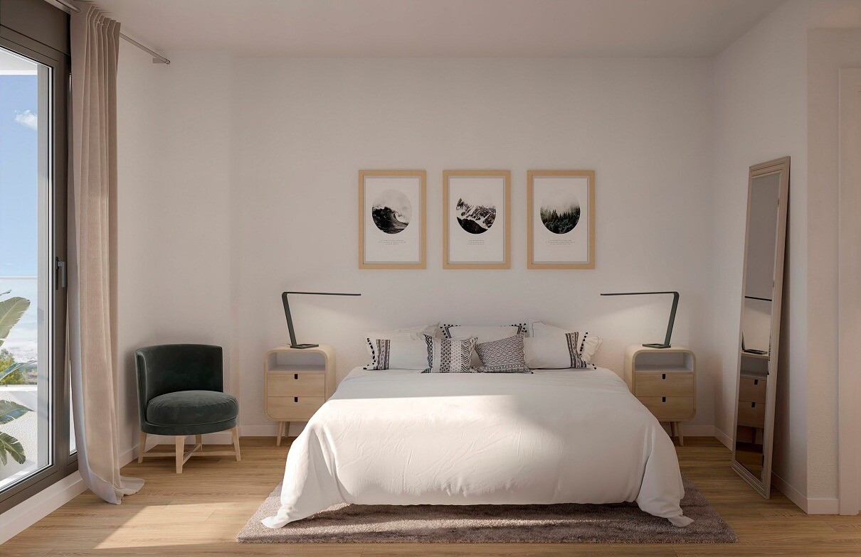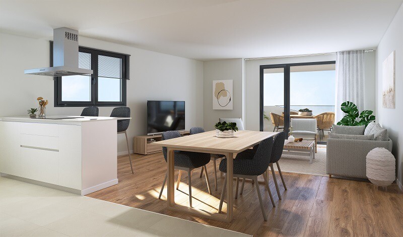 Nieuw wooncomplex met woningen met 2 en 3 slaapkamers, terras, zwembaden en gemeenschappelijke ruimtes.