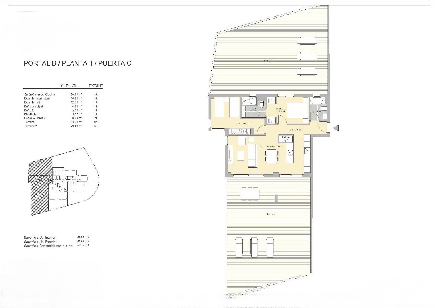 Gelijkvloers met een terras van 163m², parkeerplaats, berging, speeltuin, zwembad, groene zones, fietsenstalling, gourmetruimte, enz.
