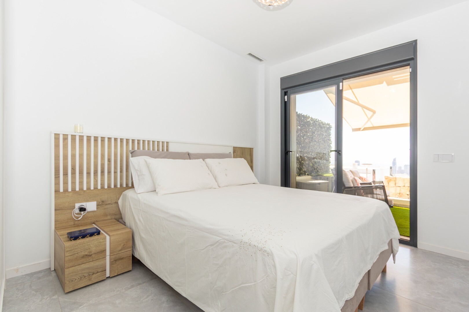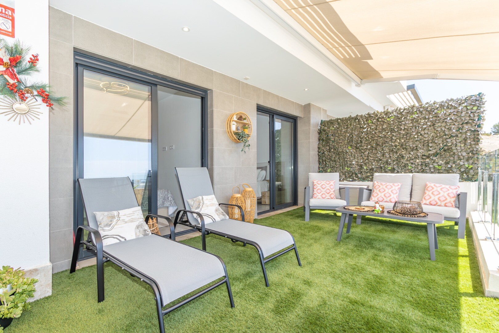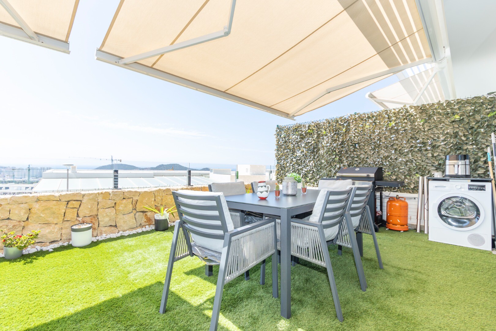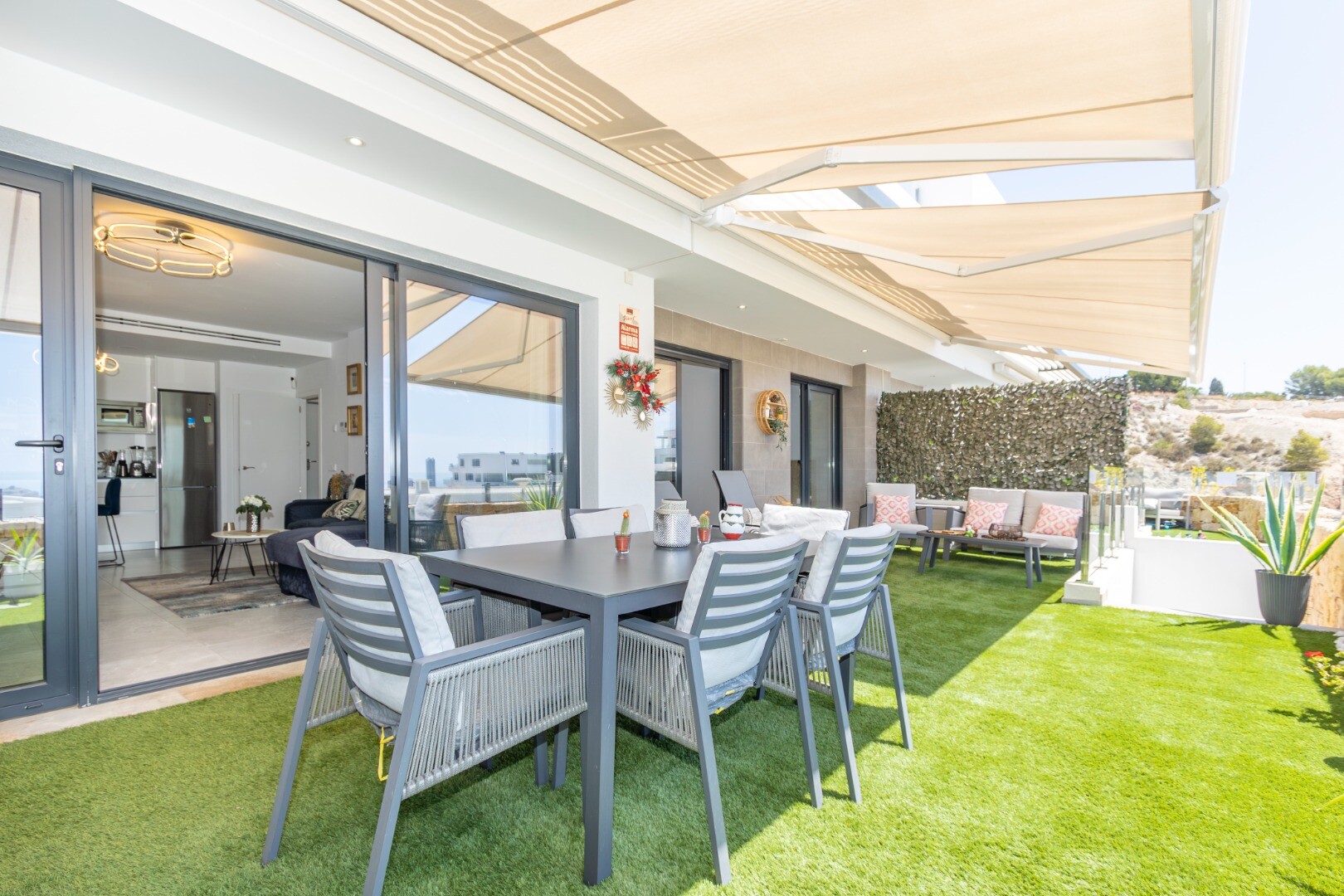 Dit moderne appartement in Finestrat, provincie Alicante, biedt een leven van luxe en comfort. Gebouwd in 2022, beschikt het over twee ruime slaapkamers, beide met directe toegang tot een spectaculair terras met adembenemend uitzicht op de zee en de stad Benidorm. De slaapkamers hebben ingebouwde kasten en twee volledige badkamers, waarvan één en s...uite, beide met douchebakken. De ruime woonkamer, verbonden met een moderne keuken die volledig is uitgerust met de nieuwste apparaten, creëert een ideale ruimte voor familieplezier. Daarnaast beschikt het pand over centrale airconditioning, geavanceerde domotica en een intelligent alarmsysteem voor extra veiligheid.