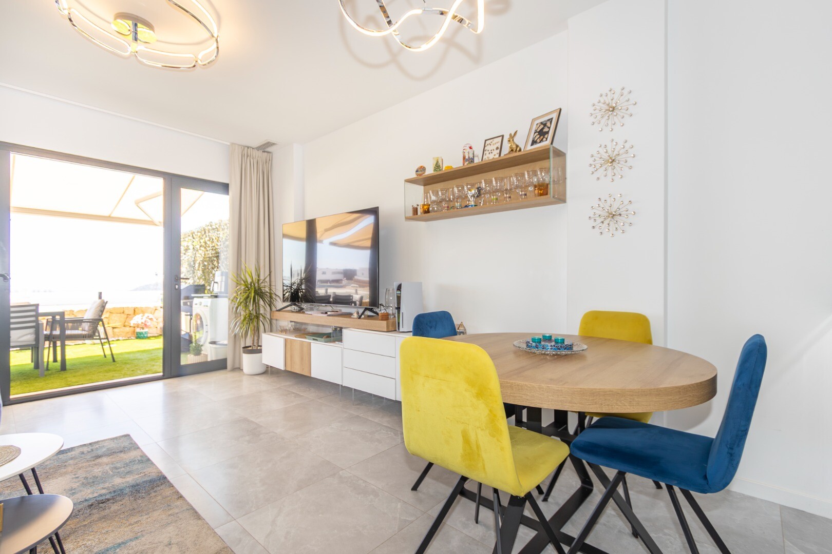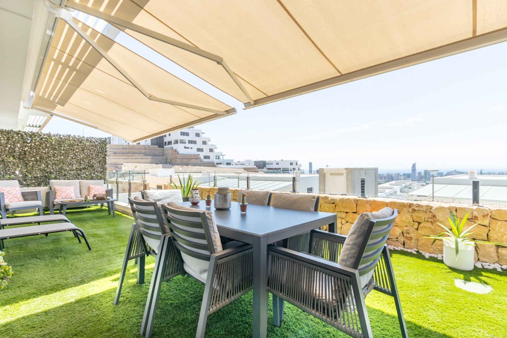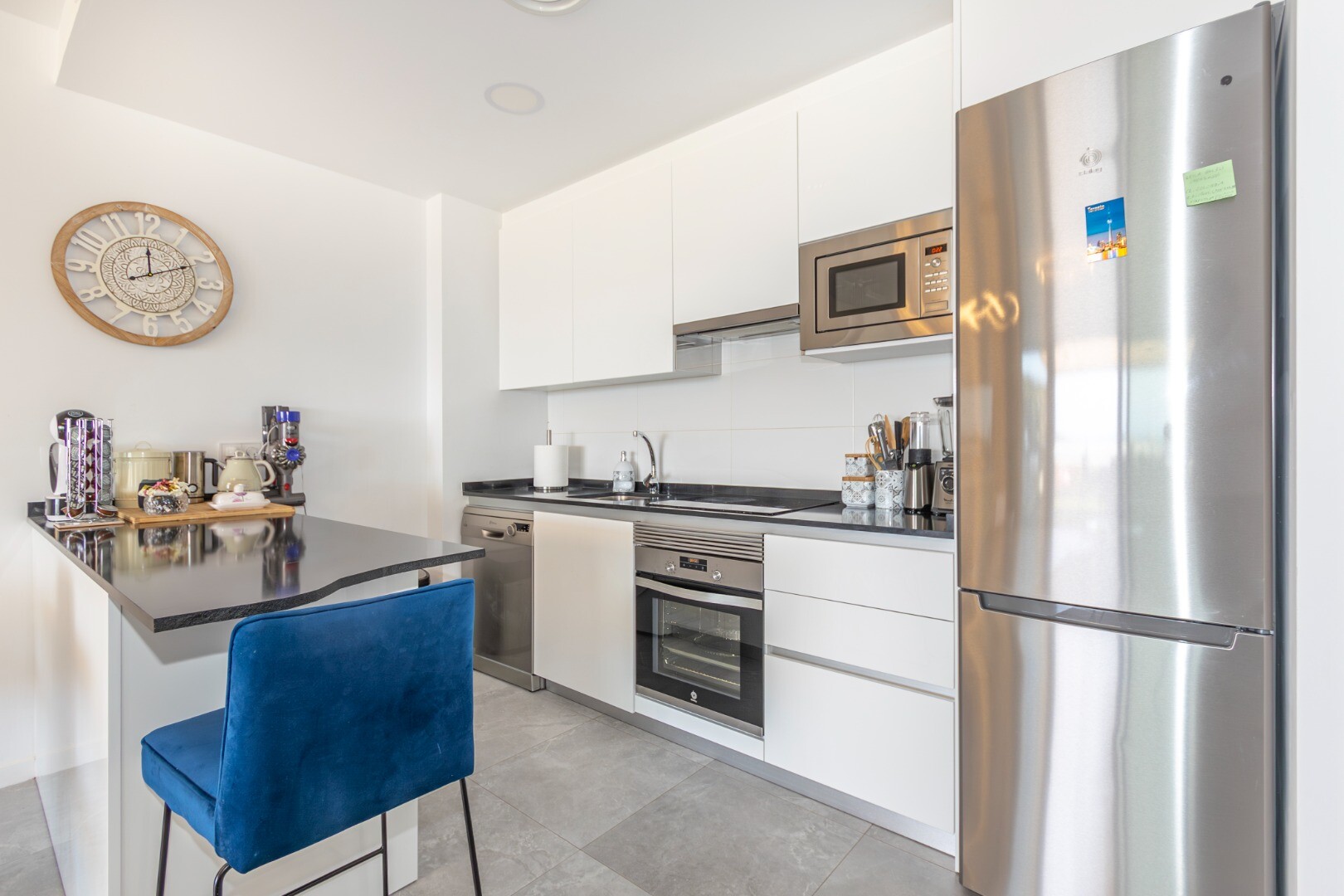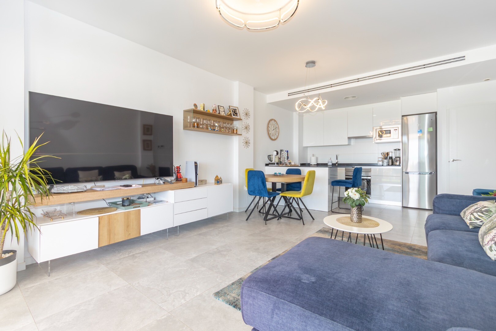 Dit moderne appartement in Finestrat, provincie Alicante, biedt een leven van luxe en comfort. Gebouwd in 2022, beschikt het over twee ruime slaapkamers, beide met directe toegang tot een spectaculair terras met adembenemend uitzicht op de zee en de stad Benidorm. De slaapkamers hebben ingebouwde kasten en twee volledige badkamers, waarvan één en s...uite, beide met douchebakken. De ruime woonkamer, verbonden met een moderne keuken die volledig is uitgerust met de nieuwste apparaten, creëert een ideale ruimte voor familieplezier. Daarnaast beschikt het pand over centrale airconditioning, geavanceerde domotica en een intelligent alarmsysteem voor extra veiligheid.
