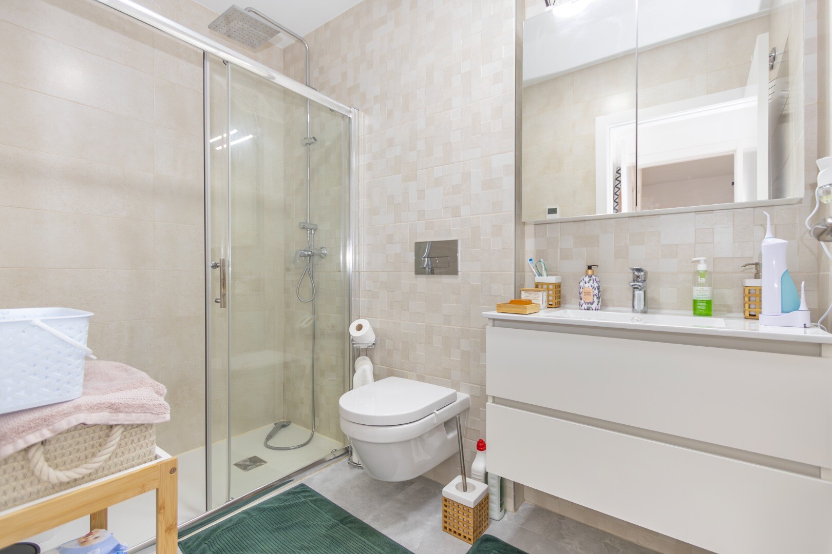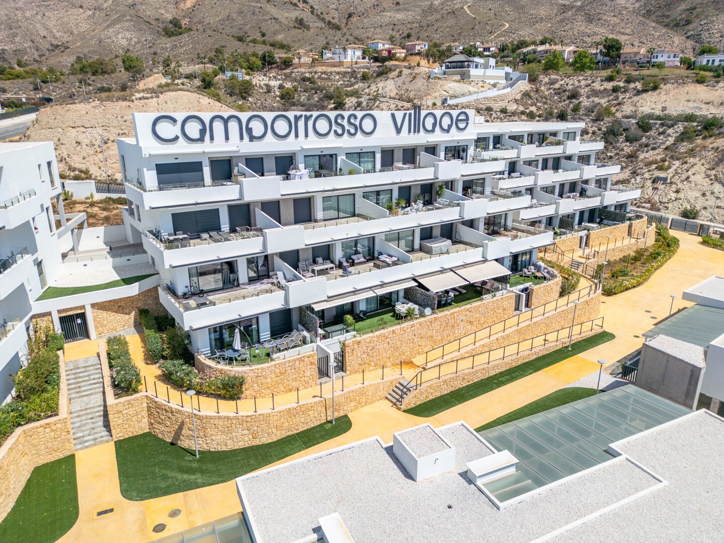 Het pand valt op door het grote terras van 45 vierkante meter, dat directe toegang heeft tot de gemeenschap en perfect is om van de omgeving te genieten en barbecues te organiseren. Het pand omvat ook een eigen garage van 12,58 vierkante meter met directe toegang tot het appartement en een opslagruimte van 4,93 vierkante meter, dicht bij het pand.