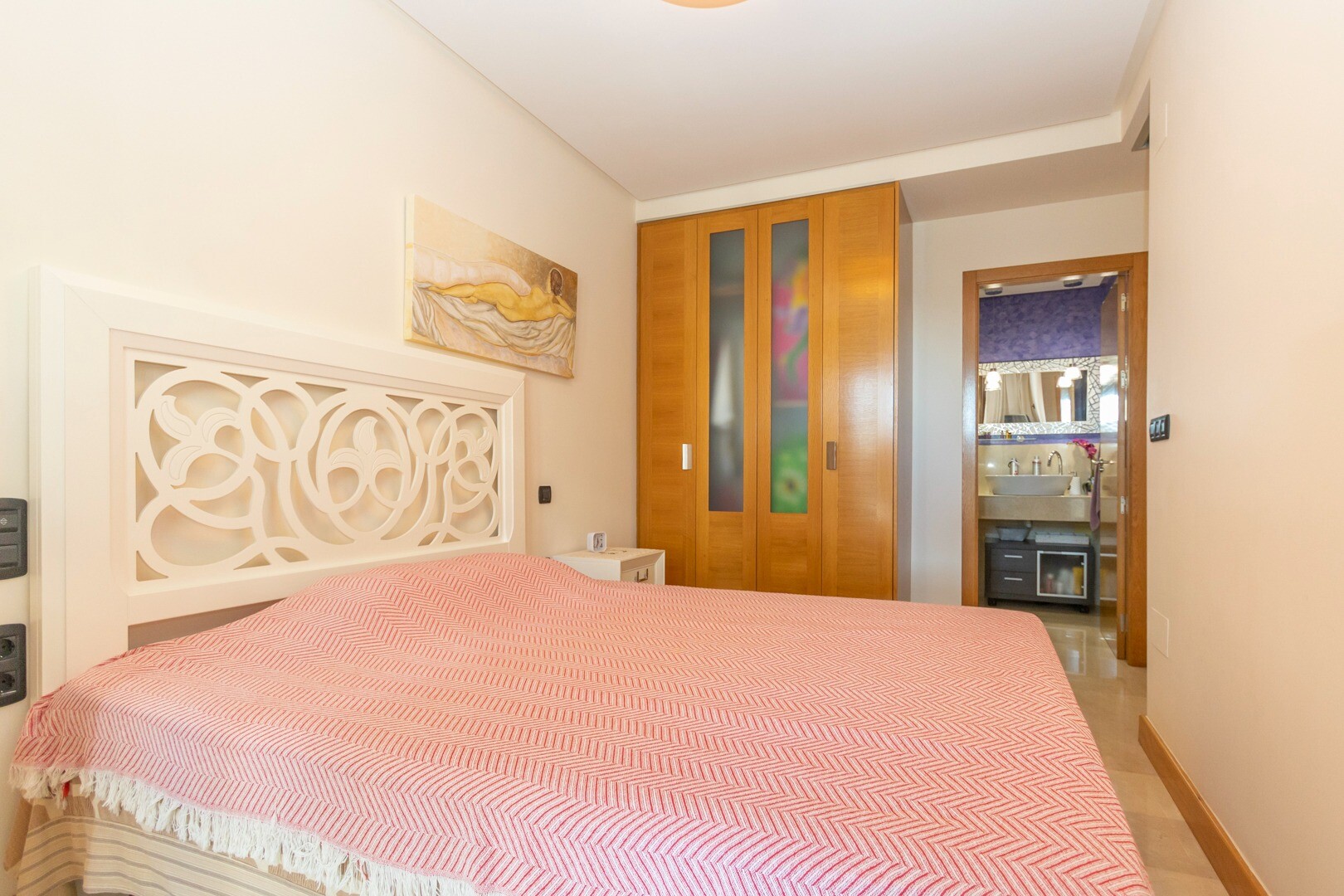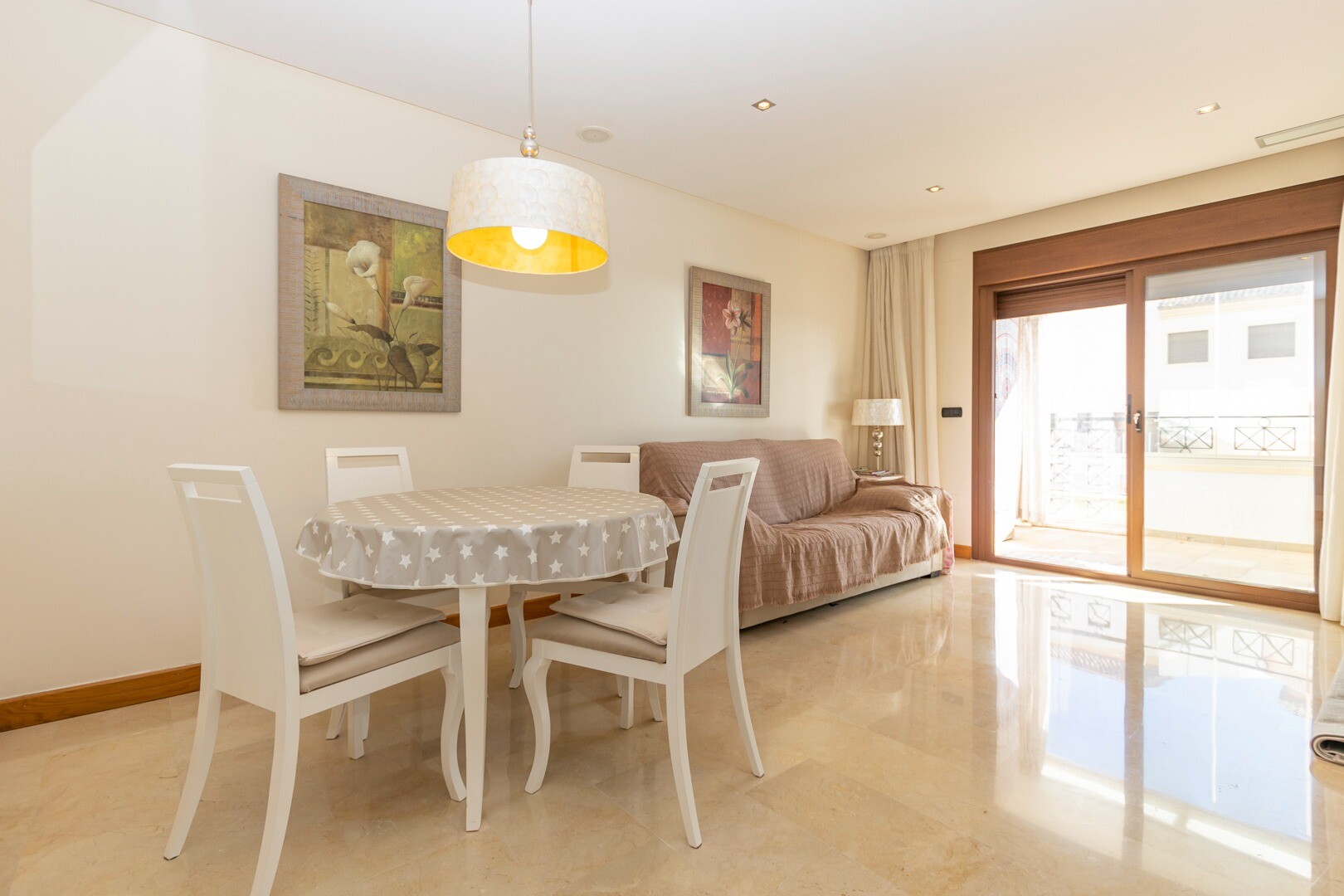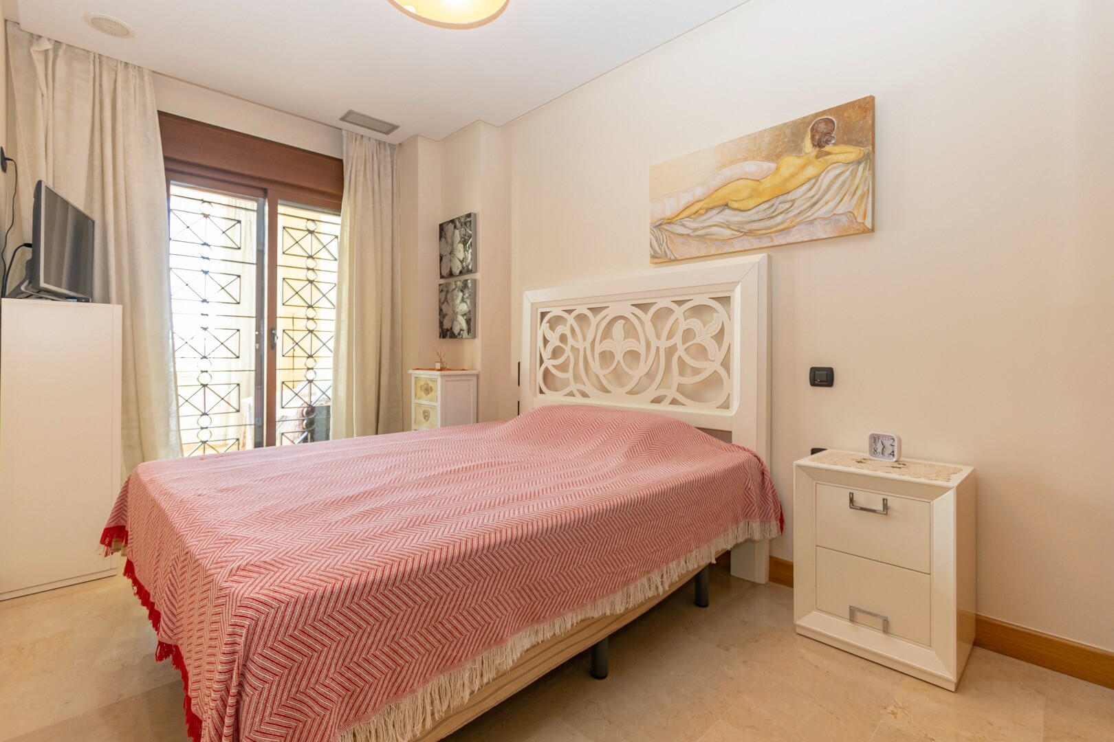 Appartement op de begane grond, in een gesloten woonwijk, met directe toegang tot de tuin met zwembad en tuinen. Het huis bestaat uit 2 slaapkamers en 2 badkamers, met een aparte keuken met galerij en patio, woonkamer en eetkamer, evenals de 2 slaapkamers met toegang tot een groot glazen terras. De woning is gebouwd met materialen en afwerkingen va...n topkwaliteit, de woning is voorzien van gemotoriseerde zonwering, domoticasysteem, kluis, geleide airconditioning en nog veel meer details. De residentie heeft een groot zomerzwembad en een winterzwembad, een sauna, een fitnessruimte, een paddle-tennisbaan, minigolf en prachtige tuinen waar de buren van kunnen genieten. De prijs is inclusief een parkeerplaats in de kelder van het gebouw. Het huis wordt verkocht met alle meubels en apparaten.