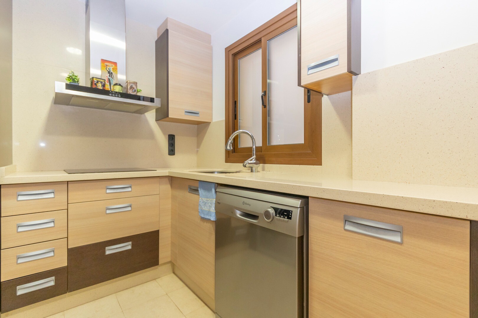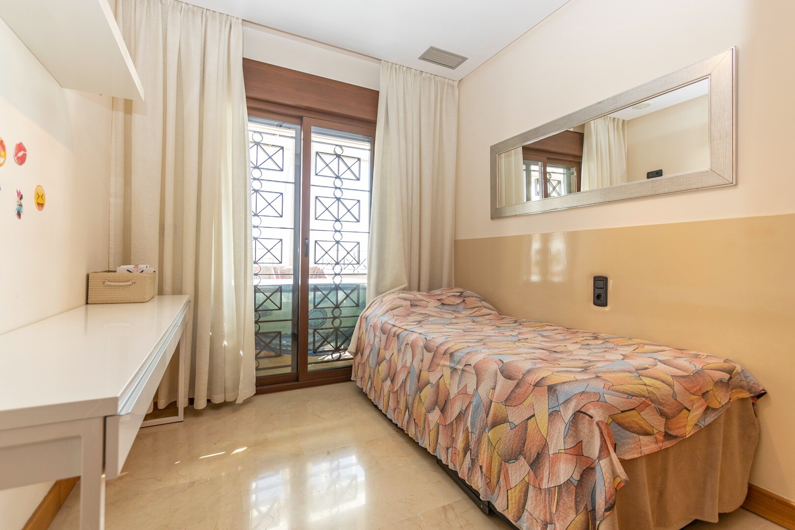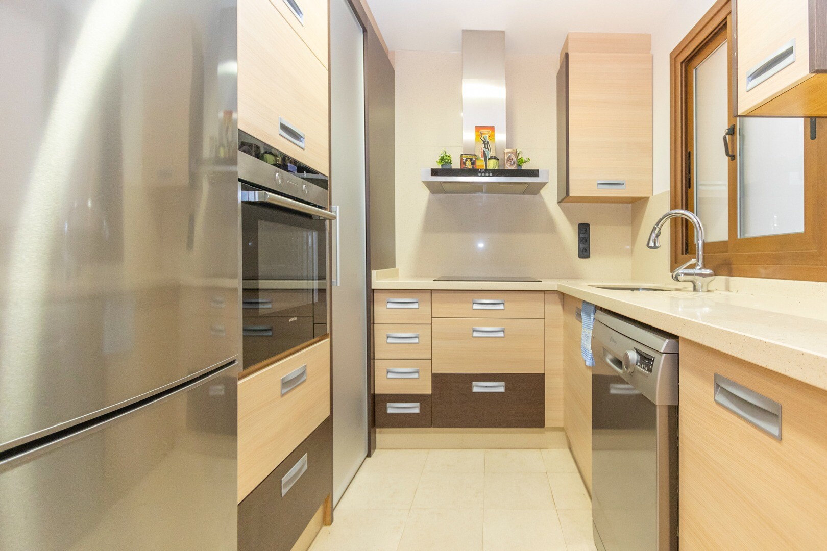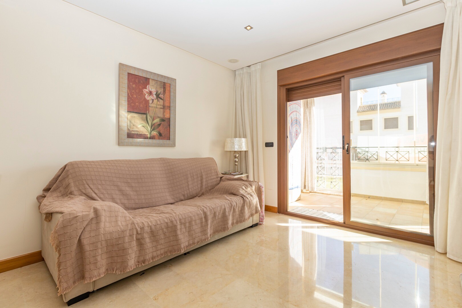 Appartement op de begane grond, in een gesloten woonwijk, met directe toegang tot de tuin met zwembad en tuinen. Het huis bestaat uit 2 slaapkamers en 2 badkamers, met een aparte keuken met galerij en patio, woonkamer en eetkamer, evenals de 2 slaapkamers met toegang tot een groot glazen terras. De woning is gebouwd met materialen en afwerkingen va...n topkwaliteit, de woning is voorzien van gemotoriseerde zonwering, domoticasysteem, kluis, geleide airconditioning en nog veel meer details. De residentie heeft een groot zomerzwembad en een winterzwembad, een sauna, een fitnessruimte, een paddle-tennisbaan, minigolf en prachtige tuinen waar de buren van kunnen genieten. De prijs is inclusief een parkeerplaats in de kelder van het gebouw. Het huis wordt verkocht met alle meubels en apparaten.
