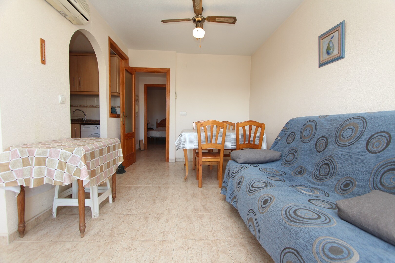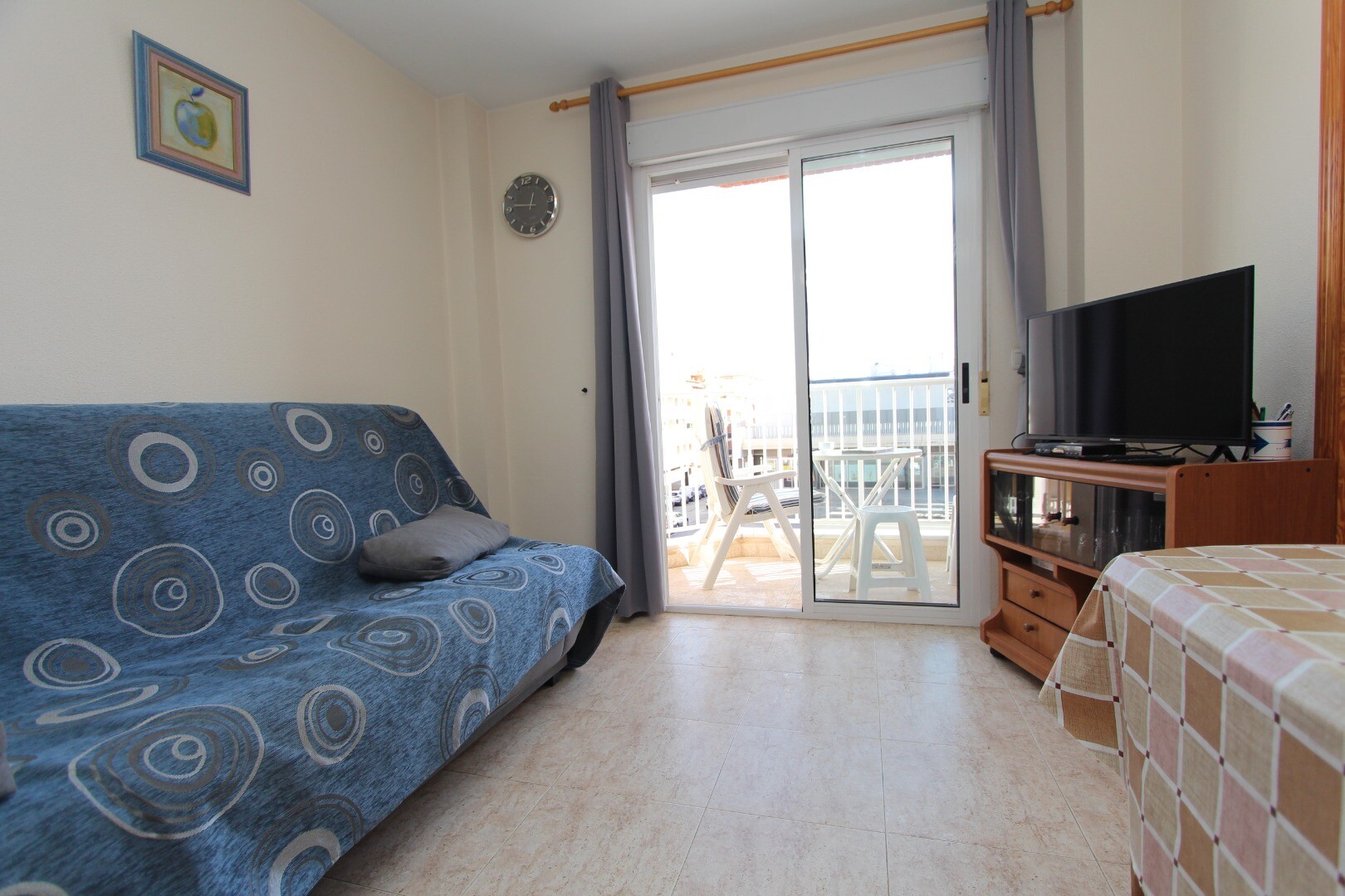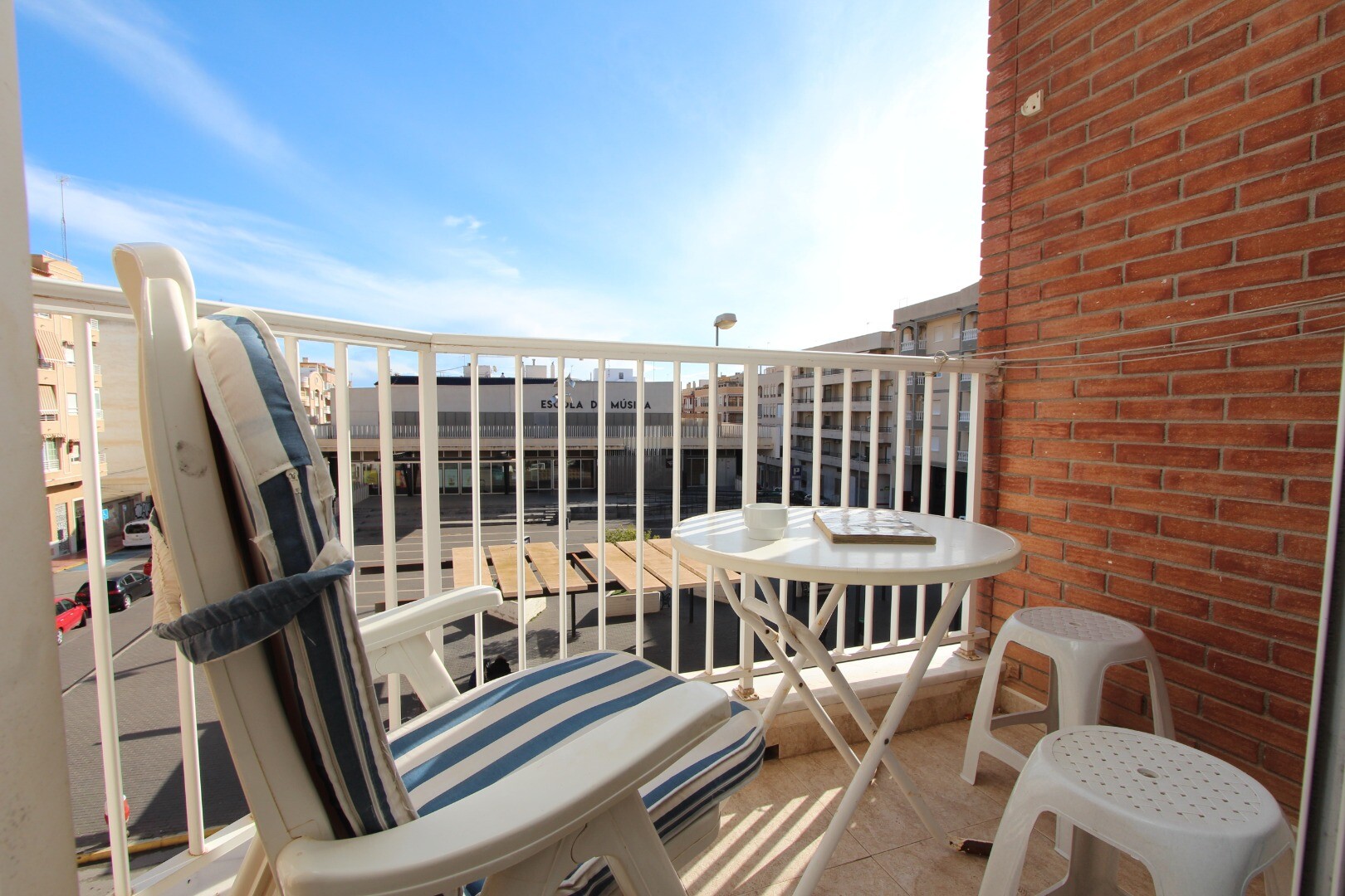 Centraal centrum appartement op 300 meter van de kust gelegen en op wandelafstand van alle denkbare voorzieningen. Het appartement heeft 2 slaapkamers waarvan een ruime hoofd slaapkamer en 1 badkamer. Vanuit de woonkamer heeft men toegang tot een terras met open zicht op de muziekschool. Het heeft een gemeenschappelijk dakterras waar zich ook de be...rging bevindt. De luchthaven van Alicante is bereikbaar in een 30-tal minuten.