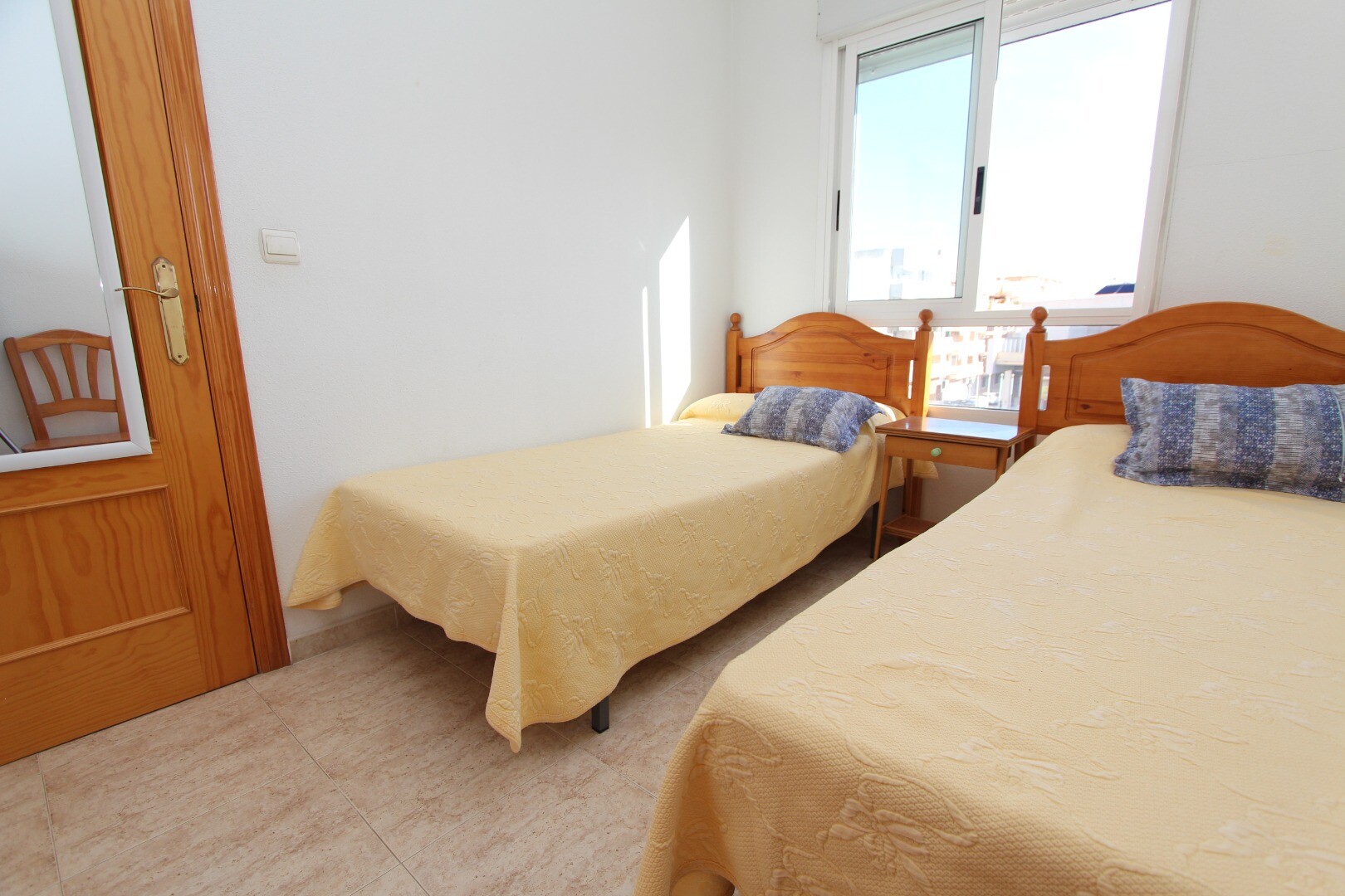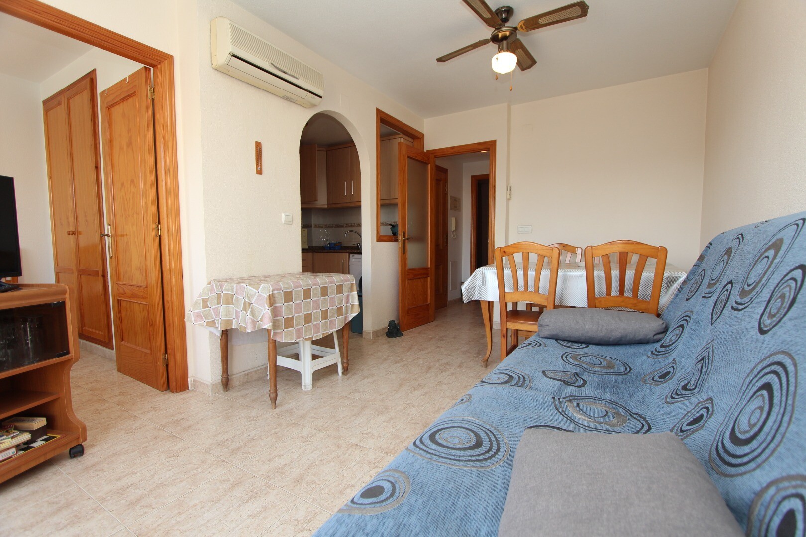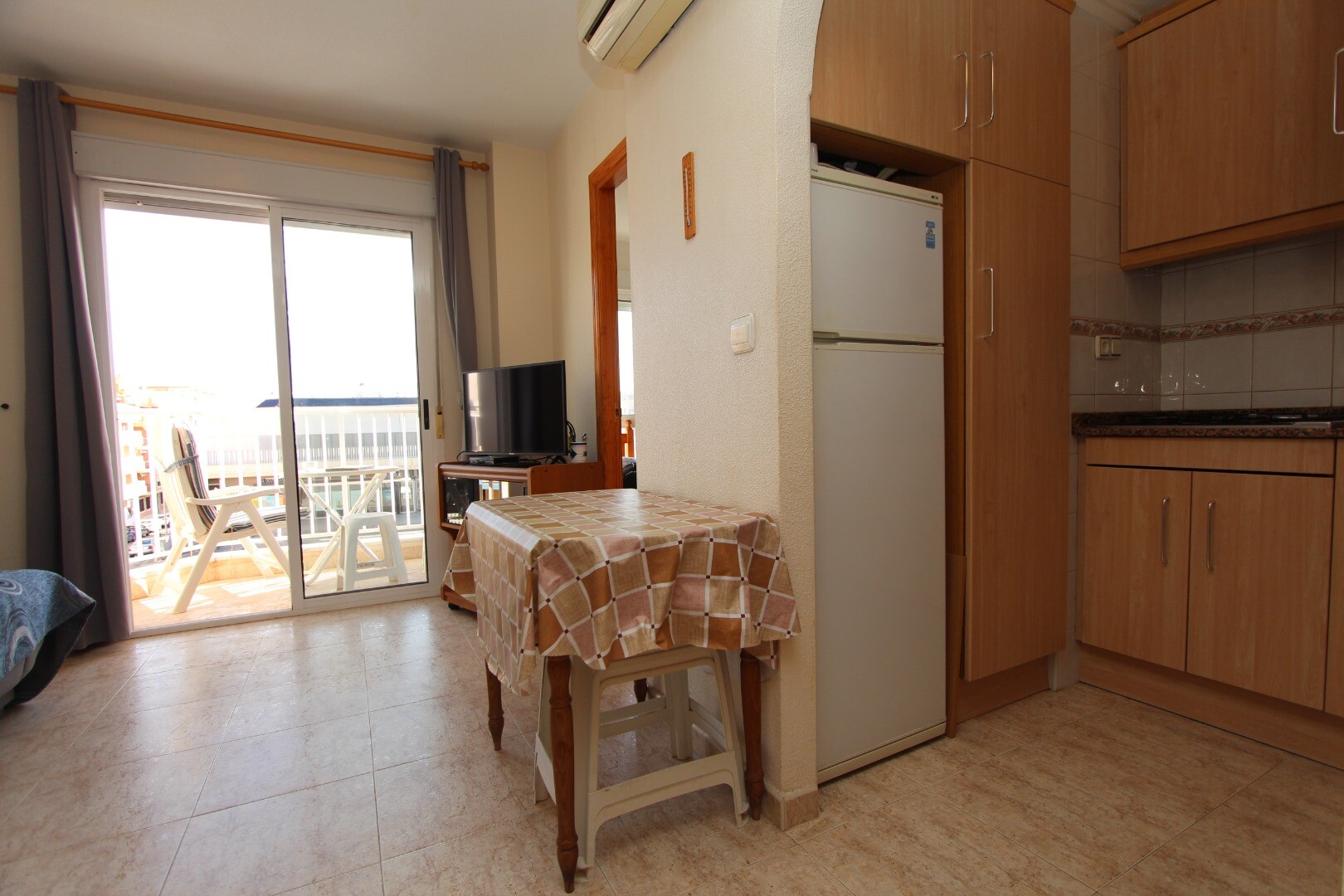 Centraal centrum appartement op 300 meter van de kust gelegen en op wandelafstand van alle denkbare voorzieningen. Het appartement heeft 2 slaapkamers waarvan een ruime hoofd slaapkamer en 1 badkamer. Vanuit de woonkamer heeft men toegang tot een terras met open zicht op de muziekschool. Het heeft een gemeenschappelijk dakterras waar zich ook de be...rging bevindt. De luchthaven van Alicante is bereikbaar in een 30-tal minuten.