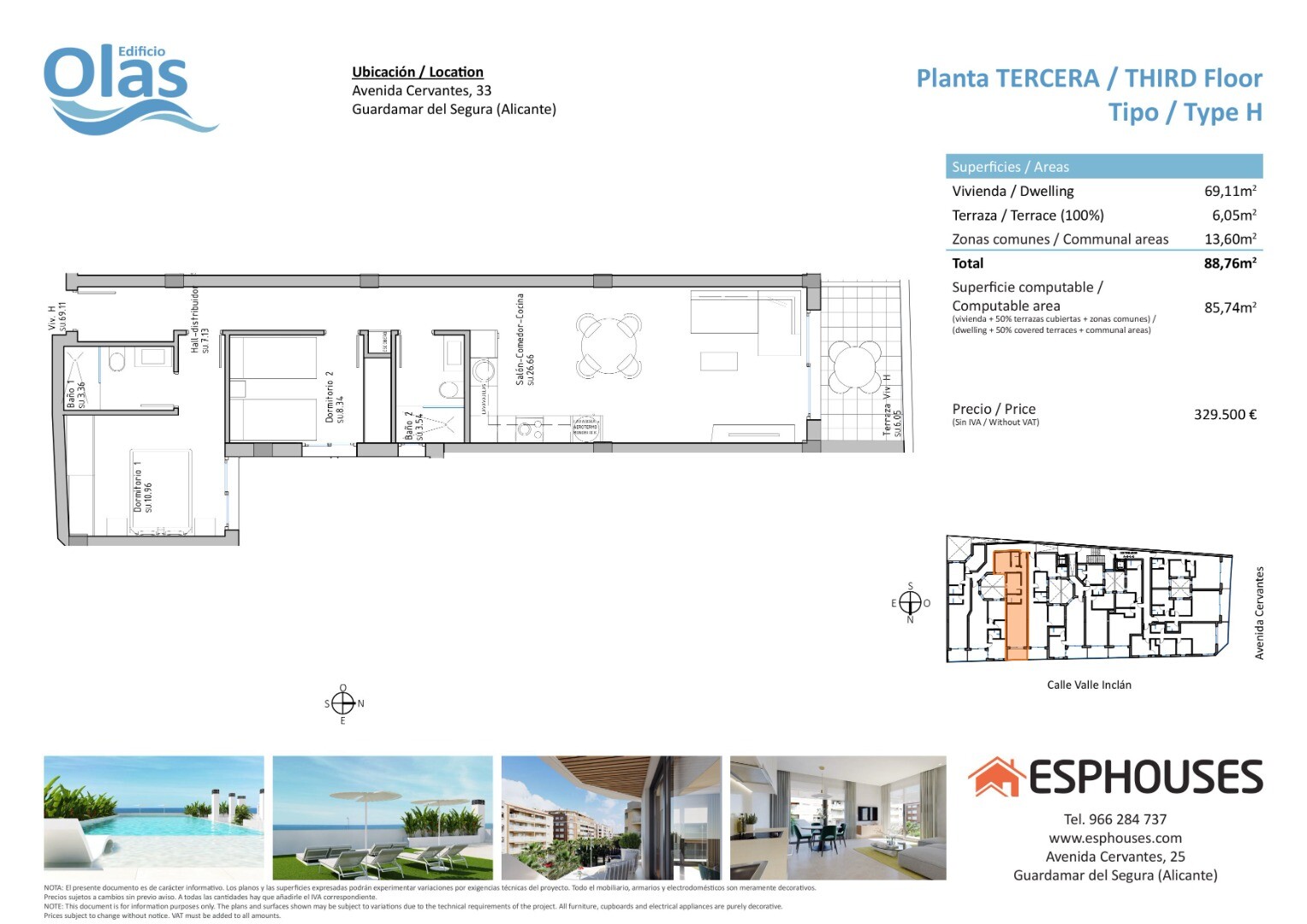 Gelegen op een gewilde locatie in Guardamar del Segura, aan de populaire Avenida de Cervantes, vind je Edificio Olas, een perfecte keuze vanwege de nabijheid van het strand en een breed scala aan voorzieningen. Dit gebouw beschikt over een zwembad en een dakterras, de ideale plek om van de zon te genieten en te ontspannen. Het appartement in kwesti...e heeft twee slaapkamers, twee badkamers, een woonkamer met eethoek en een geïntegreerde keuken, evenals een mooi terras. De bebouwde oppervlakte van het appartement is 85,74 vierkante meter en het terras is 6,05 vierkante meter, wat een comfortabele en gezellige ruimte oplevert. Naast het aantrekkelijke ontwerp is de flat uitgerust met airconditioning en domotica, voor een efficiënte en handige bediening van verschillende aspecten van de woning. De keuken wordt uitgerust met hoogwaardige apparatuur, waaronder een oven, vaatwasser, koel-vriescombinatie, afzuigkap en inductiekookplaat, zodat functionaliteit en stijl gegarandeerd zijn. Als extra bonus is er de mogelijkheid om een parkeerplaats en berging in het gebouw zelf aan te schaffen, wat de veilige opslag van spullen vergemakkelijkt en het gemak biedt van een eigen parkeerplaats. Edificio Olas presenteert zichzelf als een unieke kans om te genieten van een comfortabel en gemakkelijk leven in een van de meest gewilde gebieden van Guardamar del Segura. De bevoorrechte locatie, samen met de kenmerken en voordelen van de flat, maken dit een ideale keuze voor wie op zoek is naar een moderne en stijlvolle woning in een kustomgeving.
