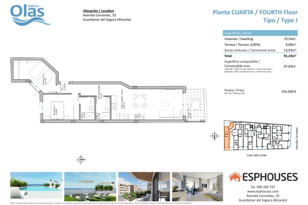 Gelegen aan de prestigieuze Avenida de Cervantes, in een van de meest gewilde wijken van Guardamar del Segura, zal het Edificio Olas verrijzen. Dit uitstekende gebouw is de perfecte keuze dankzij de nabijheid van het strand en een breed scala aan diensten. Tot de faciliteiten behoren een zwembad en een solarium op het dak, waar de bewoners kunnen o...ntspannen en genieten.