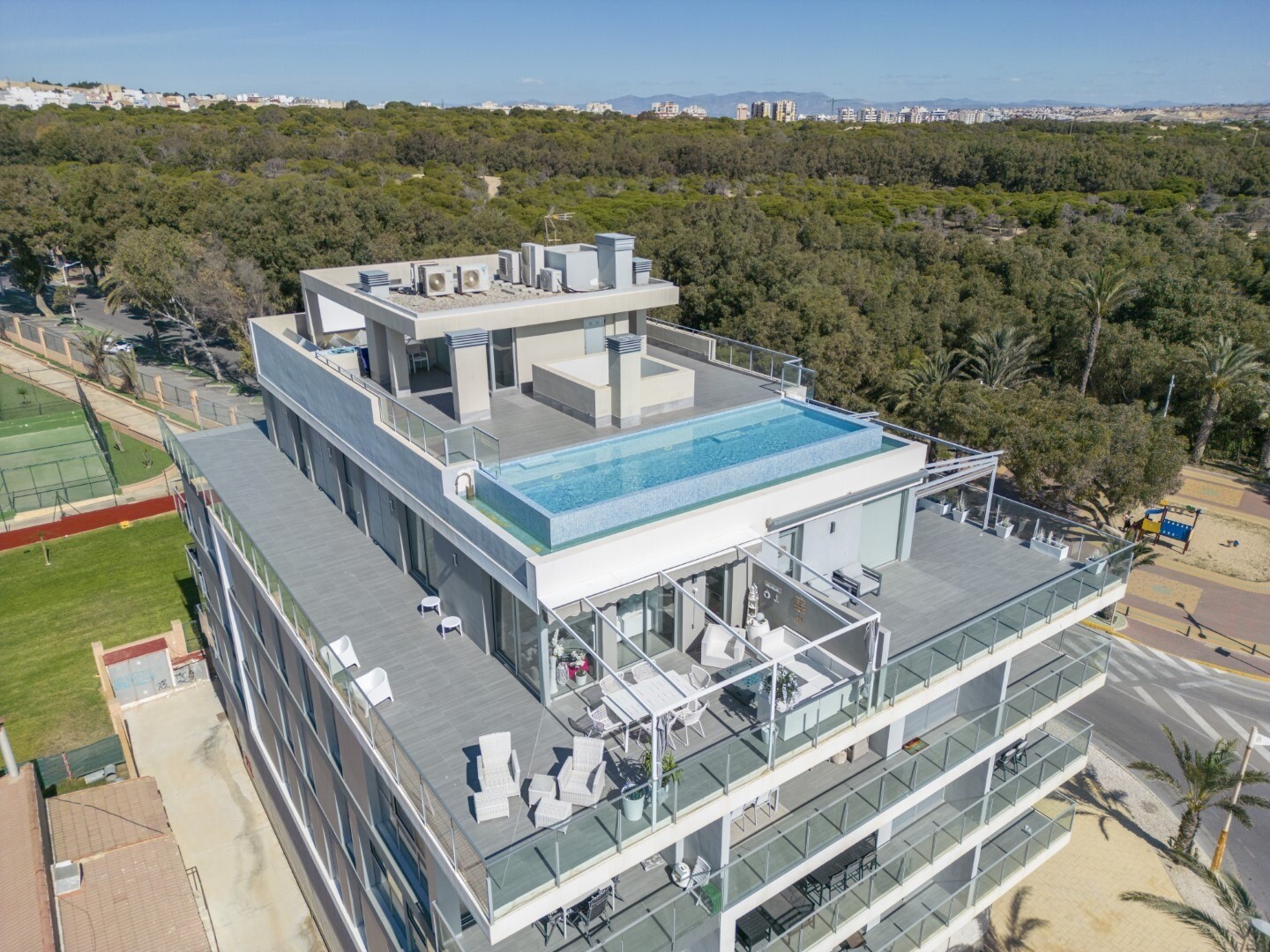 De woning is in perfecte staat, heeft uitstekende kwaliteiten, airconditioning via het kanaal, hoogwaardige apparatuur en heeft een waterontkalkingssysteem door het hele pand. Inbegrepen in de prijs is een parkeerplaats in de kelder met directe toegang vanuit de lift. Bovendien is er op het dak van het gebouw een zwembad met oneindig uitzicht waar je zult genieten van aangename momenten en een prachtig uitzicht.