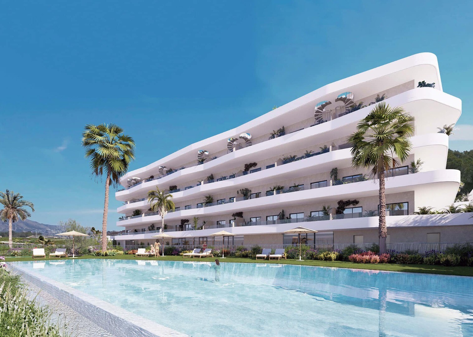 Dit exclusieve wooncomplex in La Nucía biedt appartementen met twee en drie slaapkamers, gelijkvloerse woningen en penthouses, ontworpen om in harmonie te zijn met de natuur en de authentieke mediterrane levensstijl.