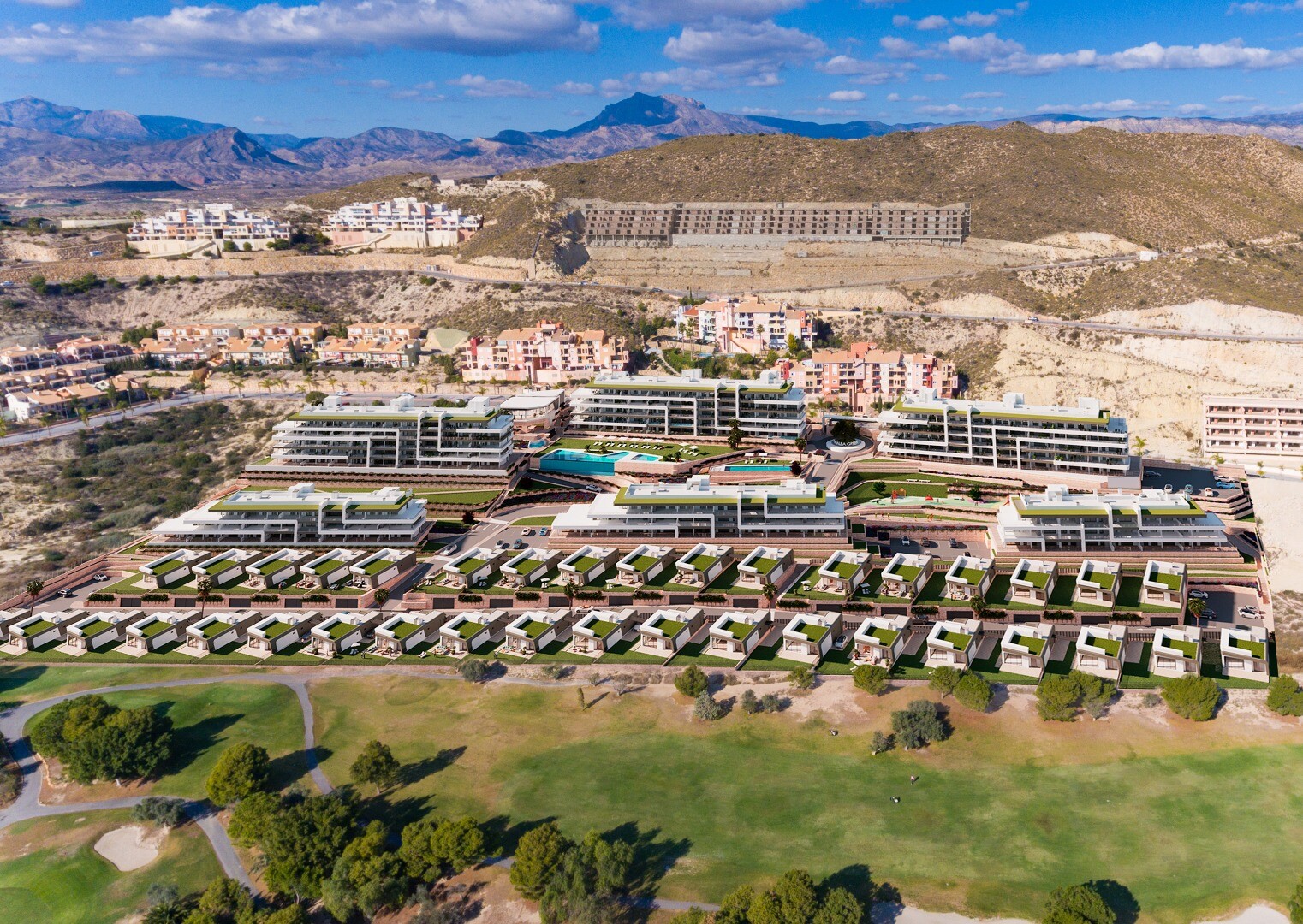 Hoekappartement met 3 slaapkamers en 2 badkamers, avant-gardistisch design, zuidoostelijke oriëntatie om optimaal van de zon te genieten en grote terrassen met uitzicht op de Middellandse Zee en de golfbaan. Inbegrepen in de prijs is een garageplaats en een berging. Het complex beschikt over een zwembad, een eigen sociale club, een kinderspeelplaat...s en recreatiegebieden waar je kunt genieten van je vrije tijd. De internationale luchthaven Elche - Alicante Miguel Hernández ligt op slechts 20 minuten afstand, de bekende stranden van El Campello liggen op slechts 10 minuten afstand en de stad Alicante met een breed scala aan diensten en recreatiegebieden ligt op slechts 15 minuten afstand. Het project combineert de begrippen zee, leven, avant-gardistische architectuur en golf tot een stijl met een uniek karakter. Neem contact met ons op voor meer informatie!