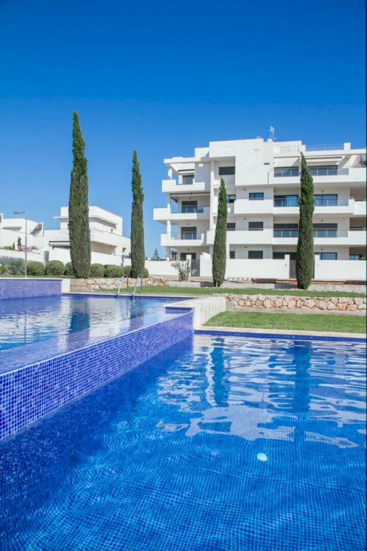 Dicht bij de Zenia boulevard en de golfbanen Villamartin en Las Ramblas, 2 of 3 slaapkamer appartementen met garage inbegrepen.