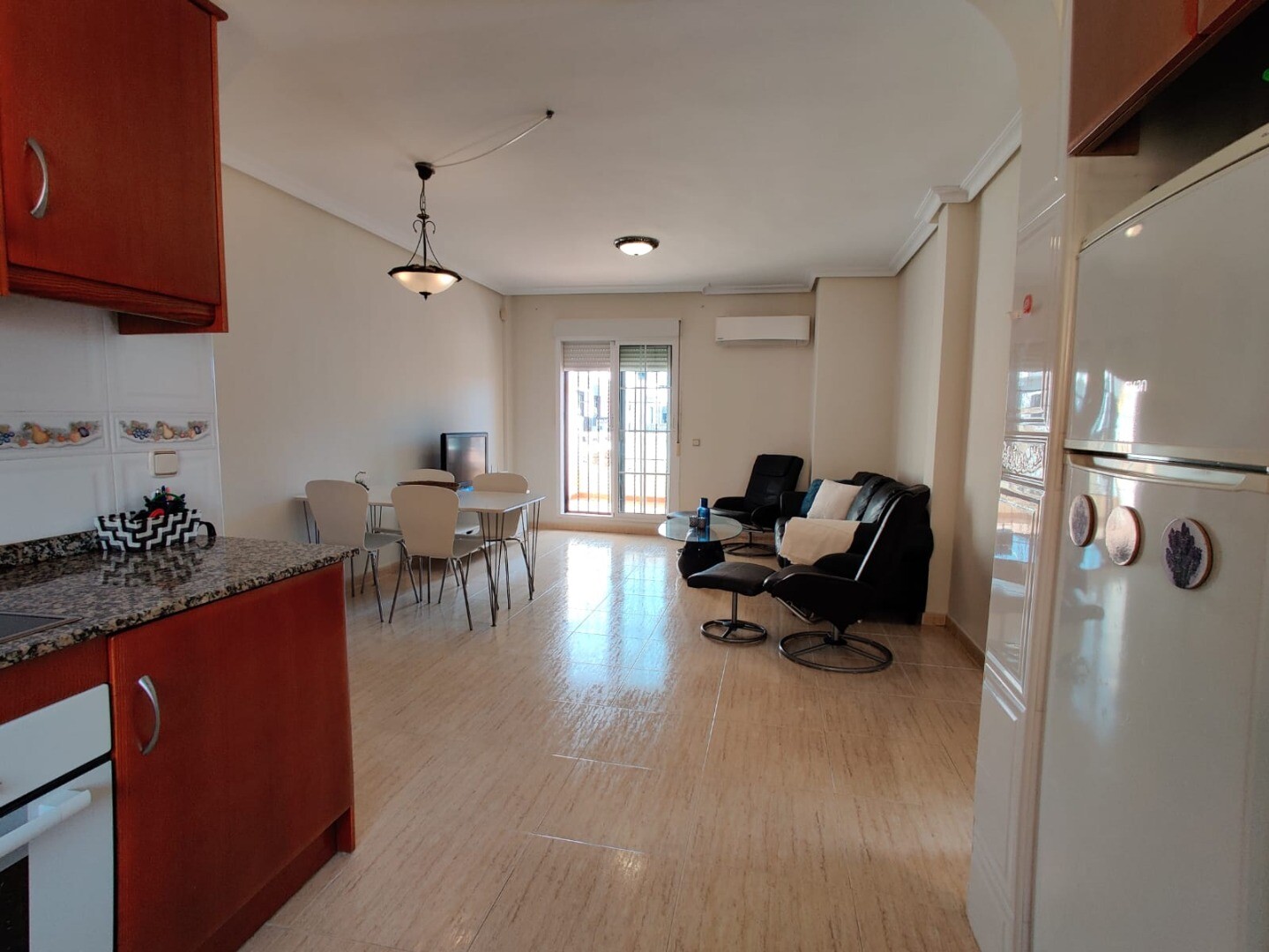Het appartement heeft twee slaapkamers en twee badkamers van ongeveer 70 m2, met terras en een eigen solarium met berging (toegankelijk via de buitentrap van het huis). Het heeft een gemeenschappelijk zwembad en ligt op 3 km van de prachtige urbanisatie Dehesa de Campoamor en op een paar meter van het commerciële gebied met tal van restaurants en s...upermarkt.