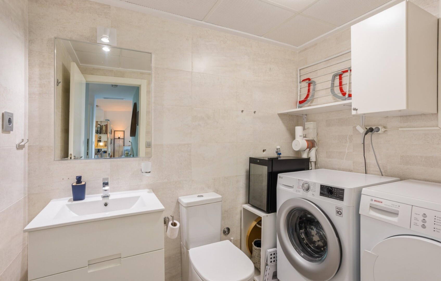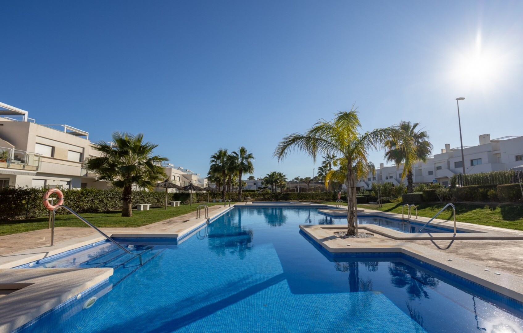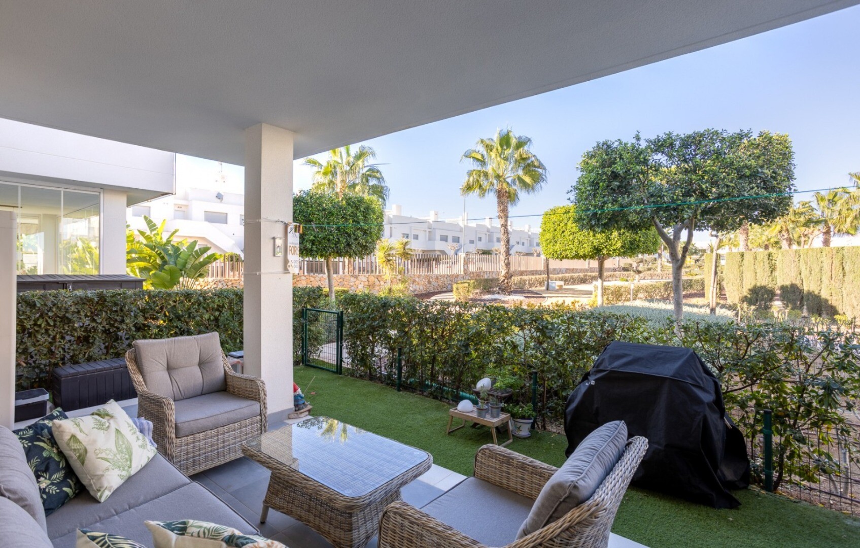 Dit appartement ligt op slechts 500 m van het commerciële centrum met bars, restaurants, een geldautomaat en een supermarkt en 1000 m van het golfterrein, engels bowls en Padel-terreinen. Vistabella Golf dient meer aanzien te worden als een kleine Pueblo met alle voorzieningen zoals bankautomaat, supermarkt, verschillende bars en restaurants, apoth...eek .... met als voordeel dat het een volledig beveiligde zone is met 1 in- en uitgang via een security post waar elke wagen zijn kenteken elektronisch geregistreerd wordt. De kosten voor de beveiliging worden helemaal gedragen door Vistabella Golf en de promotor zelf. Van hieruit is er elke donderdag een vaste busverbinding tussen Vistabella en La Zenia Shopping Boulevard. Tevens is er een vaste buslijn tussen Orihuela en Torrevieja. Vanaf Vistabella Golf zijn alle kustplaatsen van Orihuela Costa in een 15-tal minuten bereikbaar met de wagen. De luchthaven van Alicante is bereikbaar in een 40-tal minuten en Corvera (Murcia) in een klein uurtje.