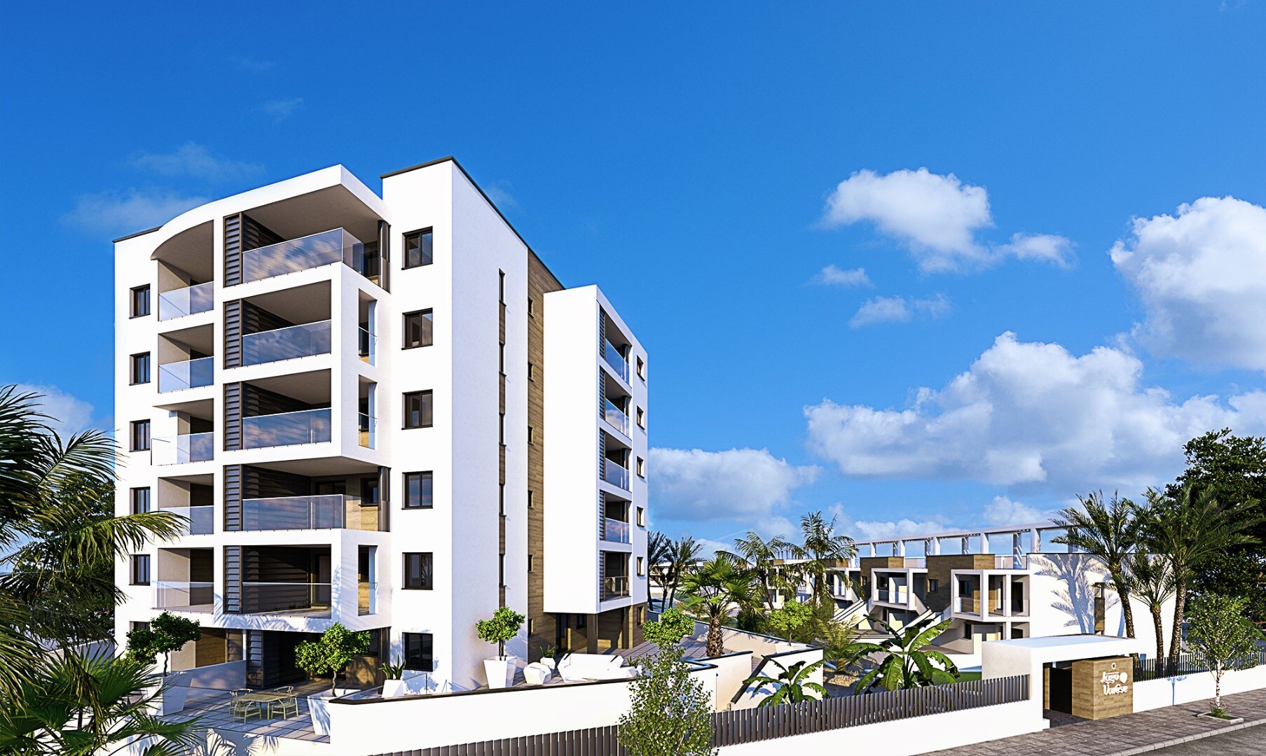 Het wooncomplex heeft grote gemeenschappelijke tuinen en zwembaden, die een perfecte omgeving creëren voor ontspanning en vrije tijd in een rustige en veilige sfeer.