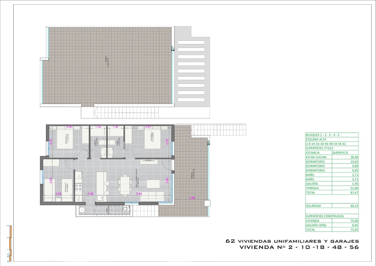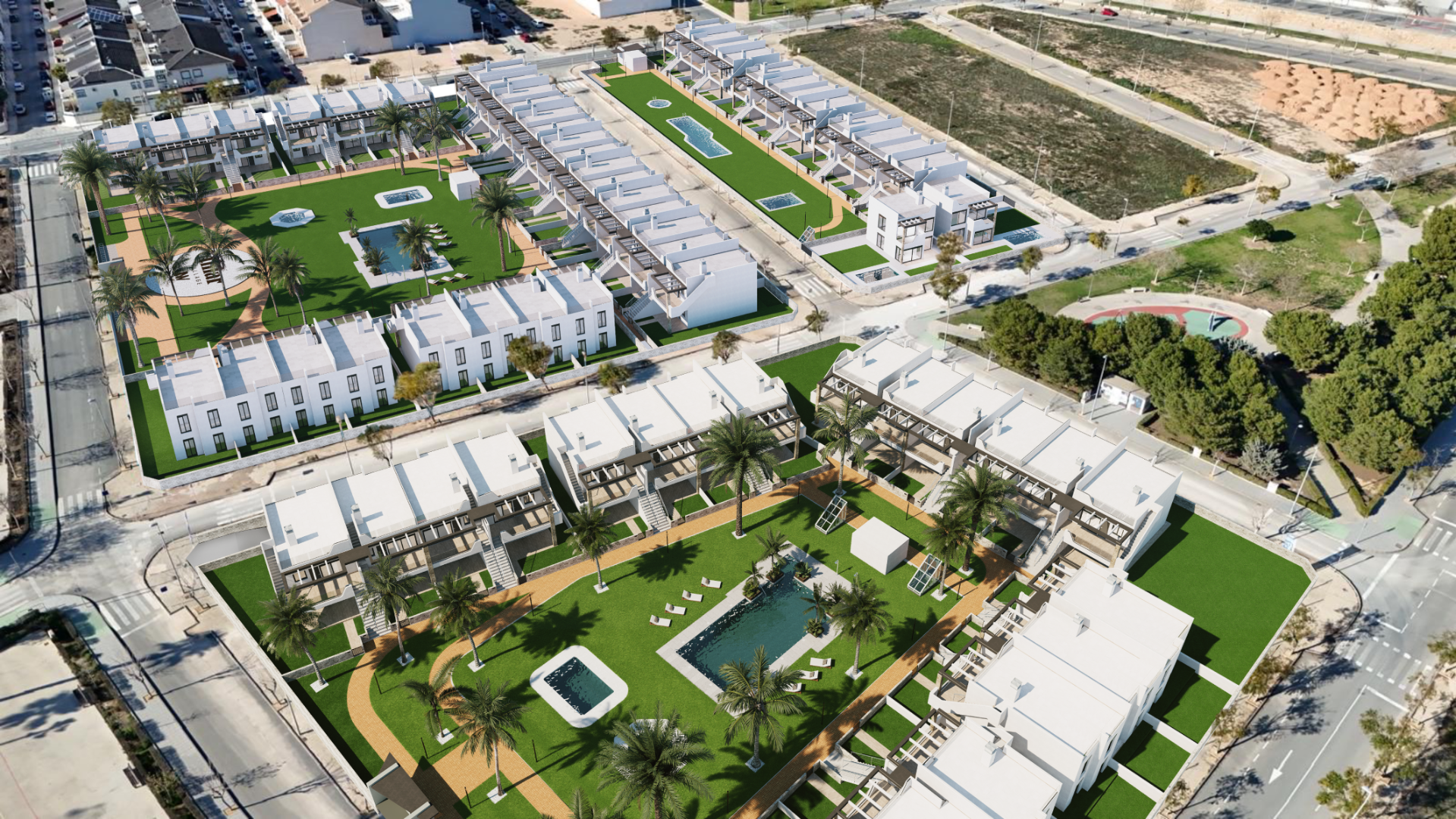 Residentie van 5 blokken met in totaal van 62 appartementen. Gelijkvloers met tuin en de eerste verdieping met privé dakterras met pre-installatie voor een buitenkeuken. De residentie heeft een mooie gemeenschappelijke tuin en zwembad, tevens is er ook een fitness ruimte voorzien in de kelder. Pilar de la Horadada is een typisch Spaans stadje dat h...