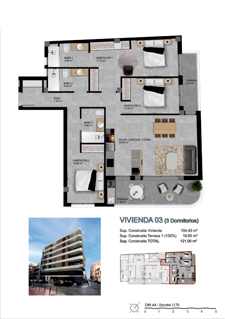 Wonen in een bevoorrecht klimaat, het hele jaar door, in een van de meest veelzijdige gebieden van de Costa Blanca, dat in dit woongebouw. Dit woongebouw, strategisch gelegen in het hart van Santa Pola, nodigt u uit om te genieten van een goed verbonden levensstijl, aan een van de meest centrale straten van de stad, op slechts 500 meter van het str...and en de haven. Het woongebouw bestaat uit 15 woningen in verschillende stijlen, zodat u de woning kunt kiezen die het beste bij uw wensen past. Kies uit appartementen en penthouses tot 121 m², allemaal met 2 slaapkamers en 2 badkamers. Er zijn ook appartementen met 1 of 3 slaapkamers beschikbaar. Alle woningen beschikken over ruime, open woon- en eetkamers, geïntegreerd met een volledig uitgeruste keuken. Voor meer gemak en opbergruimte zijn er bovendien extra bergruimtes beschikbaar. Elke woning is ontworpen om optimaal te profiteren van natuurlijk licht en het mediterrane klimaat, met directe toegang tot grote terrassen van 10 tot 16 m². Deze buitenruimtes vormen een verlengstuk van de woning en zijn ideaal om te ontspannen, buiten te eten of gewoon te genieten van de zeebries in een privé, comfortabele omgeving. Bovendien beschikken de penthouses over een groot solarium, waardoor bewoners hun buitenruimte kunnen personaliseren met opties zoals een barbecue, douche, wastafel, ruimte voor een compacte koelkast en eersteklas tuinmeubilair. Het woongebouw ligt op 500 meter van de haven en het strand van Santa Pola en biedt bewoners de mogelijkheid om volop te genieten van het leven aan zee. Met zijn fijne zandstranden is de omgeving perfect om te ontspannen in de zon of om watersporten te beoefenen zoals windsurfen, parasailing, kajakken en duiken. Voor de natuurliefhebbers ligt het natuurpark Las Salinas de Santa Pola op slechts 15 minuten rijden. Het is een waar biodiversiteitsreservaat met soorten zoals de roze flamingo. Dit gebied is ideaal voor liefhebbers van wandelen en buitenactiviteiten. De luchthaven van Alicante is bereikbaar in een 15-tal minuten.