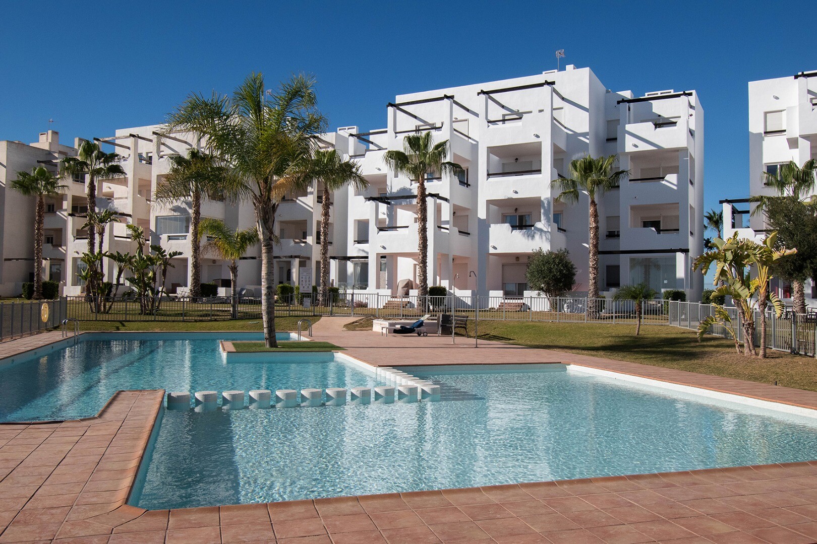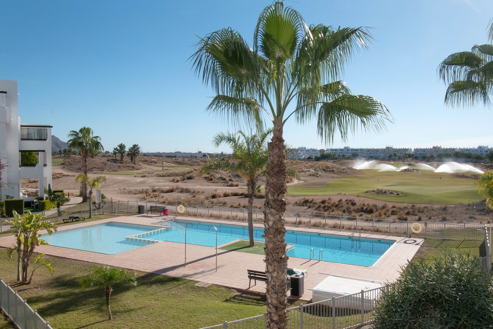 Appartement op het golfterrein van La terrazas de la Torre Golf waar u gebruik kunt maken van 12 gemeenschappelijke zwembaden en een door Jack Nicklaus ingericht 18 hole golfterrein waar u uitzicht op heeft. De stranden van de Mar Menor (Santiago de la Ribera) zijn bereikbaar in een 20-tal minuten. De internationale luchthaven van Corvera-Murcia zi...jn bereikbaar in een 20-tal minuten, de internationale luchthaven van Alicante is bereikbaar in een klein uurtje.