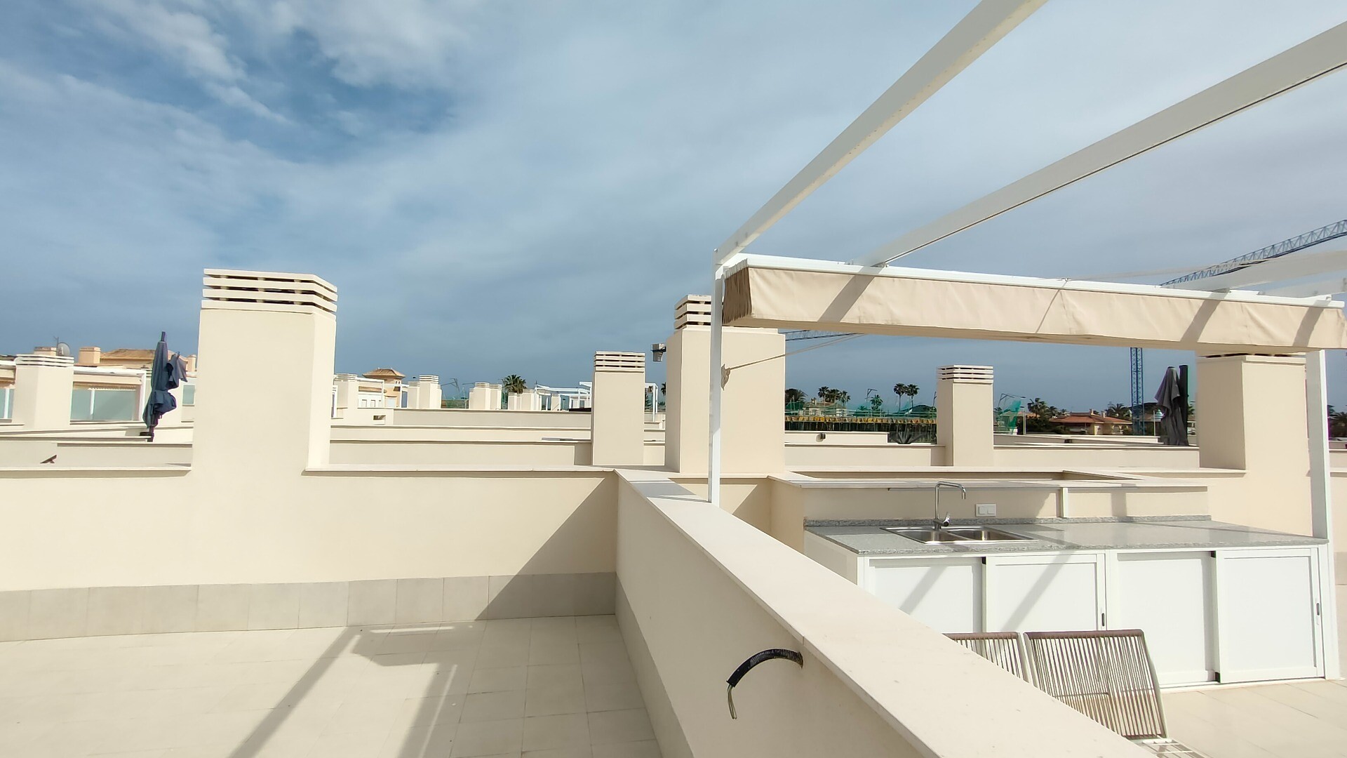 Het appartement heeft een bewoonbare oppervlakte van 68m2 en een terras van 20m2 en een solarium van 72m2 met de mogelijkheid om een Jacuzzi te installeren. Het appartement heeft volledig werkende airco voor warme en koude lucht, badkamers met geïnstalleerde doucheschermen en vloerverwarming en heeft een ondergrondse parkeerplaats. Het ligt op wand...elafstand van allerlei voorzieningen. Zo ligt de Aldi supermarkt op slechts 300m. De Yachthaven van Torrevieja ligt op slechts 3,5km van deze residentie waar men tal van activiteiten heeft zoals het huren van een motorboot, jet skis, sportvissen, bars en restaurant aan de haven waarvan de Niki Beach Club de bekendste is. De luchthaven van Alicante is bereikbaar in een 45-tal minuten via de AP-7 en N332.