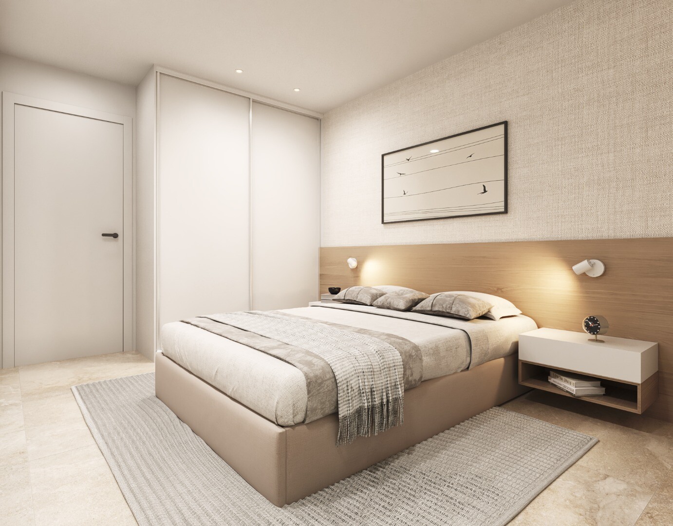 Het appartement heeft een lichte woon-eetkamer, die perfect geïntegreerd is met een open keuken, waardoor een functionele en gezellige ruimte ontstaat voor het dagelijks leven. Daarnaast is er een groot terras van 17 m², ideaal om te genieten van de frisse lucht en het aangename mediterrane klimaat.