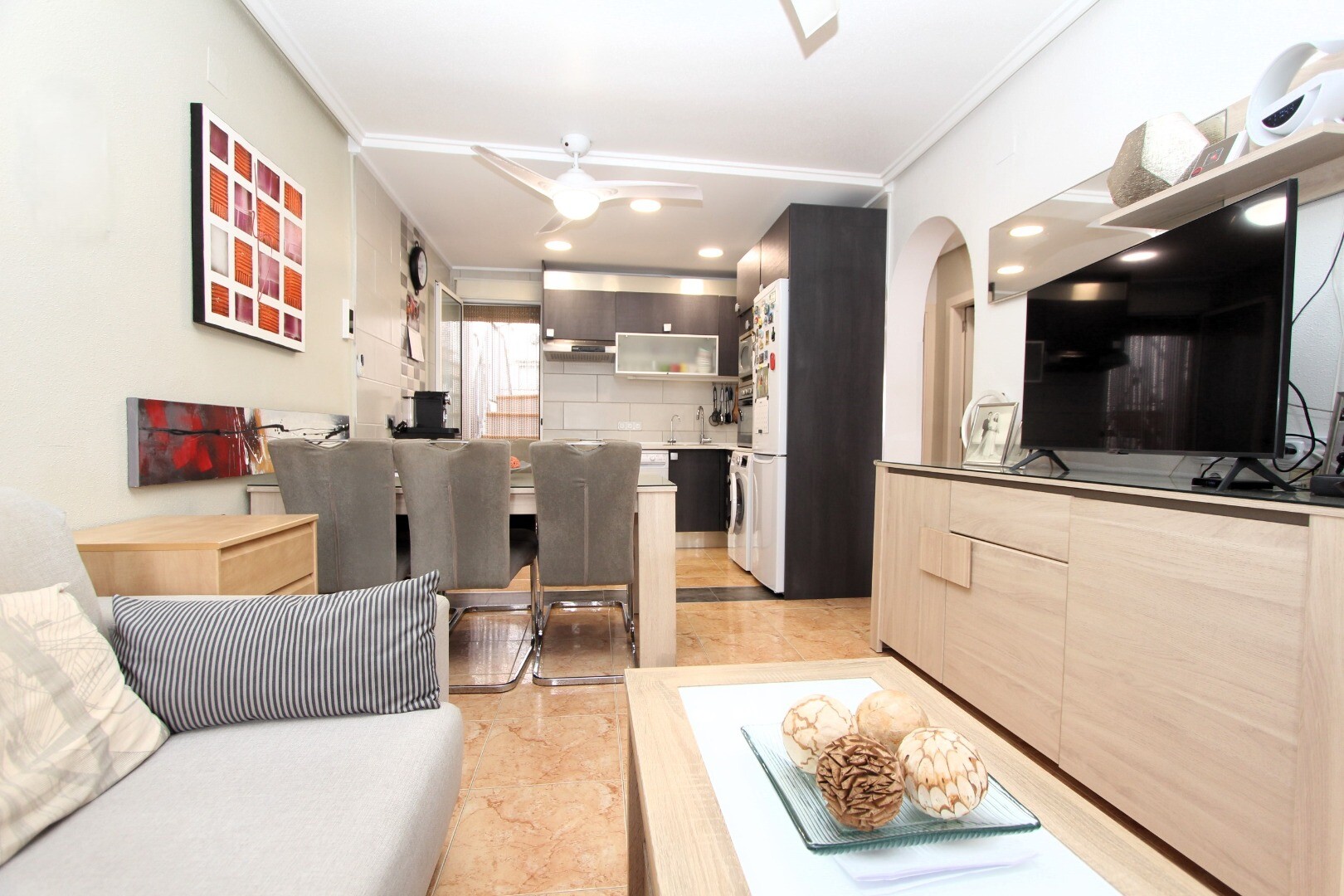 Zie je jezelf al wonen op een rustige plek, waar je het hele jaar door kunt genieten van de mediterrane zon? Wij presenteren je deze duplex-rijwoning op de eerste verdieping, gelegen in de wijk Altos del Limonar in Torrevieja. De woning beschikt over twee slaapkamers, een badkamer, een terras op het oosten en een ruim privé-zonneterras op de bovens...te verdieping. De keuken en badkamer van het pand zijn gerenoveerd met hoogwaardige materialen. De urbanisatie is omheind en beschikt over een multifunctioneel sportveld en een groot gemeenschappelijk zwembad, waar u tijdens de warme zomerdagen aangenaam kunt vertoeven. Het winkelcentrum Habaneras ligt op slechts 3 minuten rijden en de beroemde stranden Playas del Cura, Los Locos en Los Naúfragos liggen op ongeveer 10 minuten rijden. Het Universitair Ziekenhuis van Torrevieja ligt op ongeveer 15 minuten rijden en de internationale luchthaven van Alicante, met rechtstreekse vluchten naar de belangrijkste Europese bestemmingen, op ongeveer 40 minuten. Neem contact met ons op voor meer informatie!