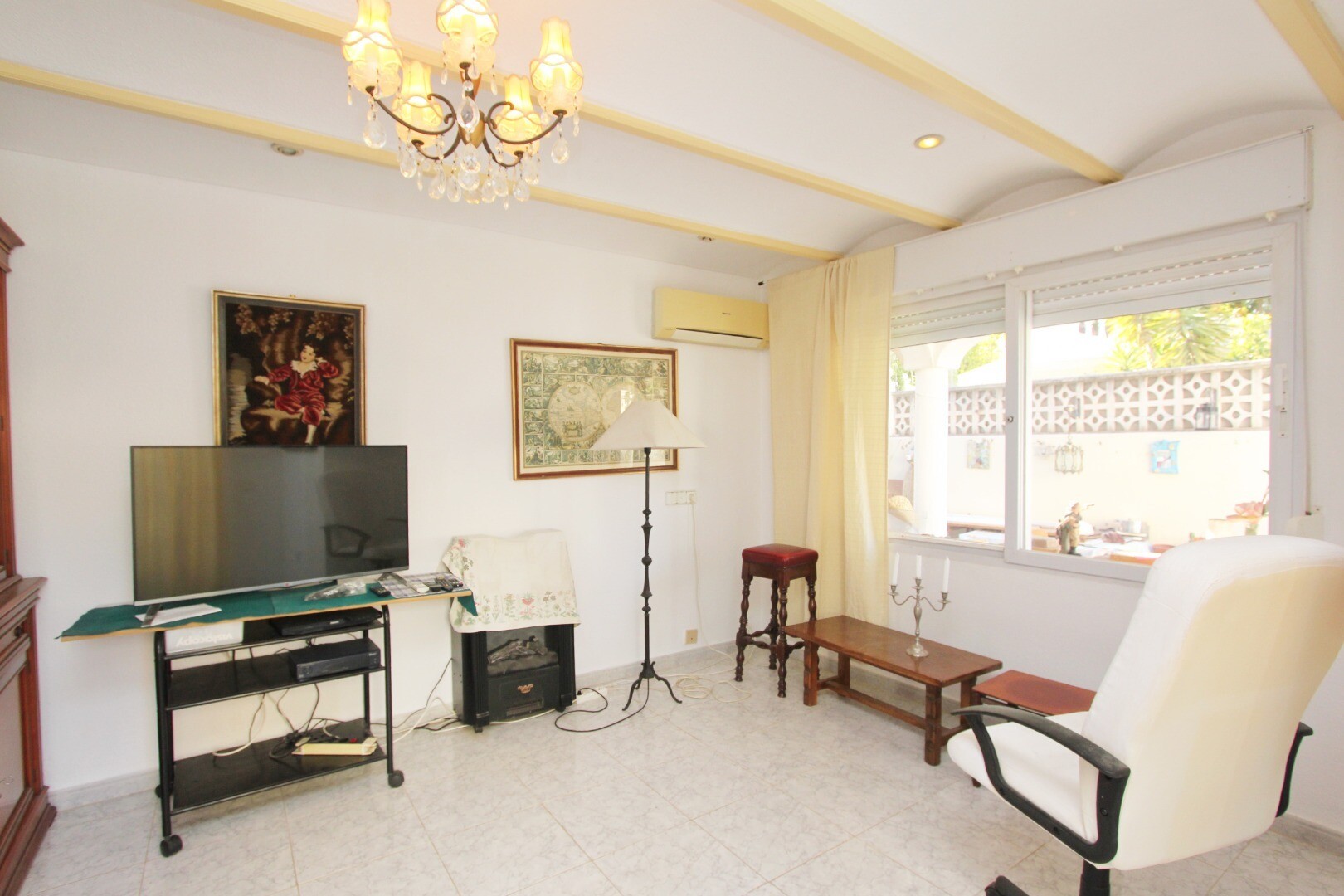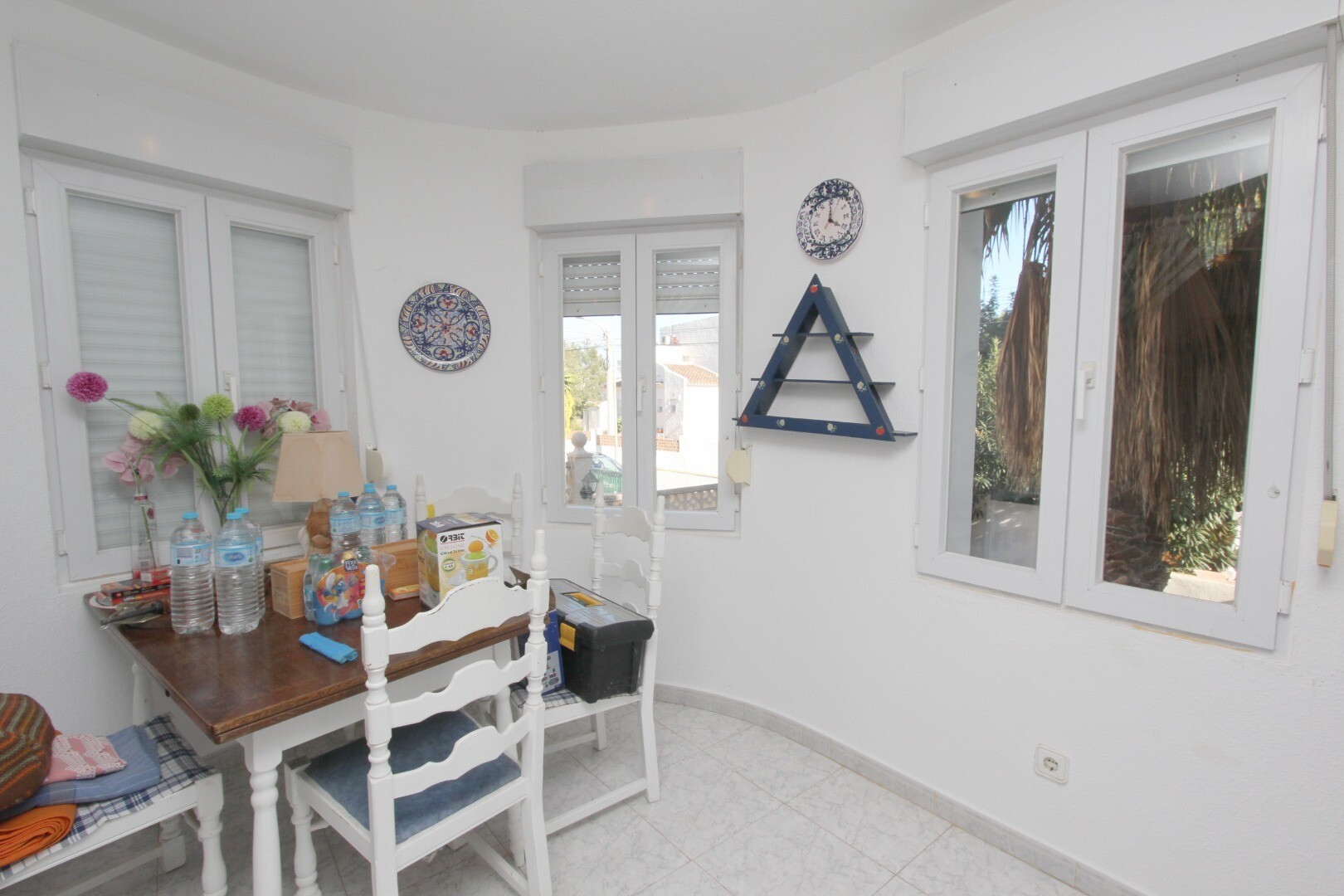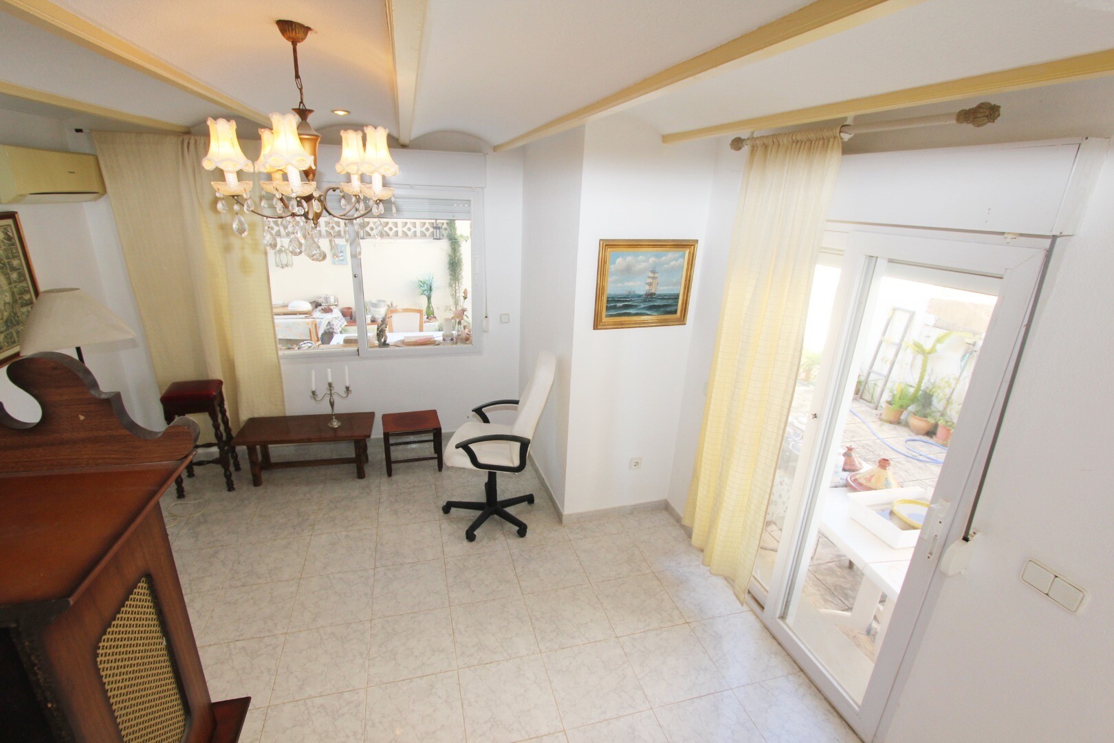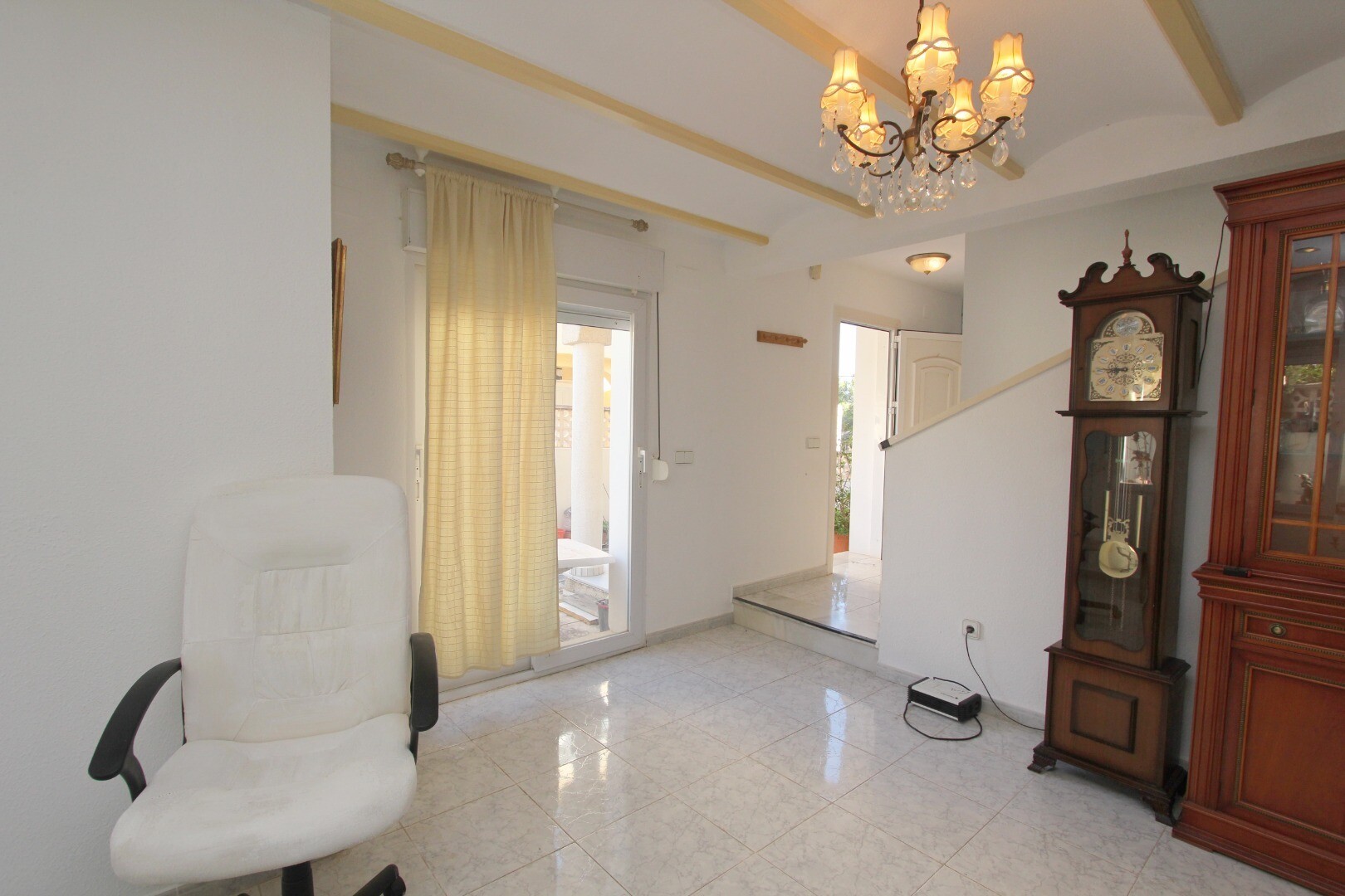 Te renoveren halfvrijstaande villa gelegen in een kleine gated community van 13 huizen. De woning wordt betreden via de elektronisch gestuurde poort die leidt naar de parkeerplaats voor 1 auto, motor, quad, etc. Het interieur van het huis is als volgt verdeeld: gastentoilet, keuken-eetkamer, woonkamer en berging. Boven: hoofdslaapkamer met groot te...rras op het zuiden, logeerkamer met terras en badkamer. Er is een mooie buitenveranda en een barbecue. Gemeenschappelijk zwembad en zithoek. De woning is aan renovatie toe en dit zie je terug in de lage prijs!
