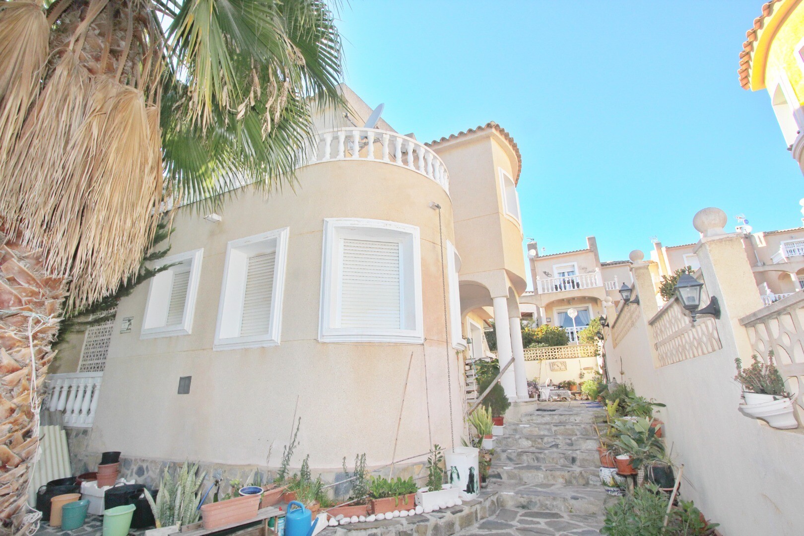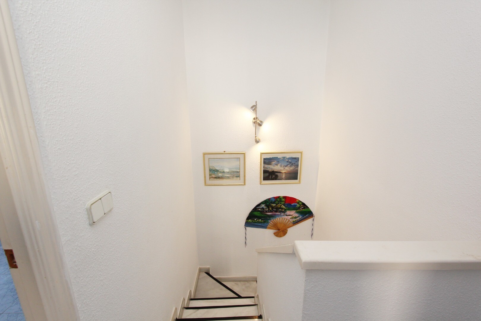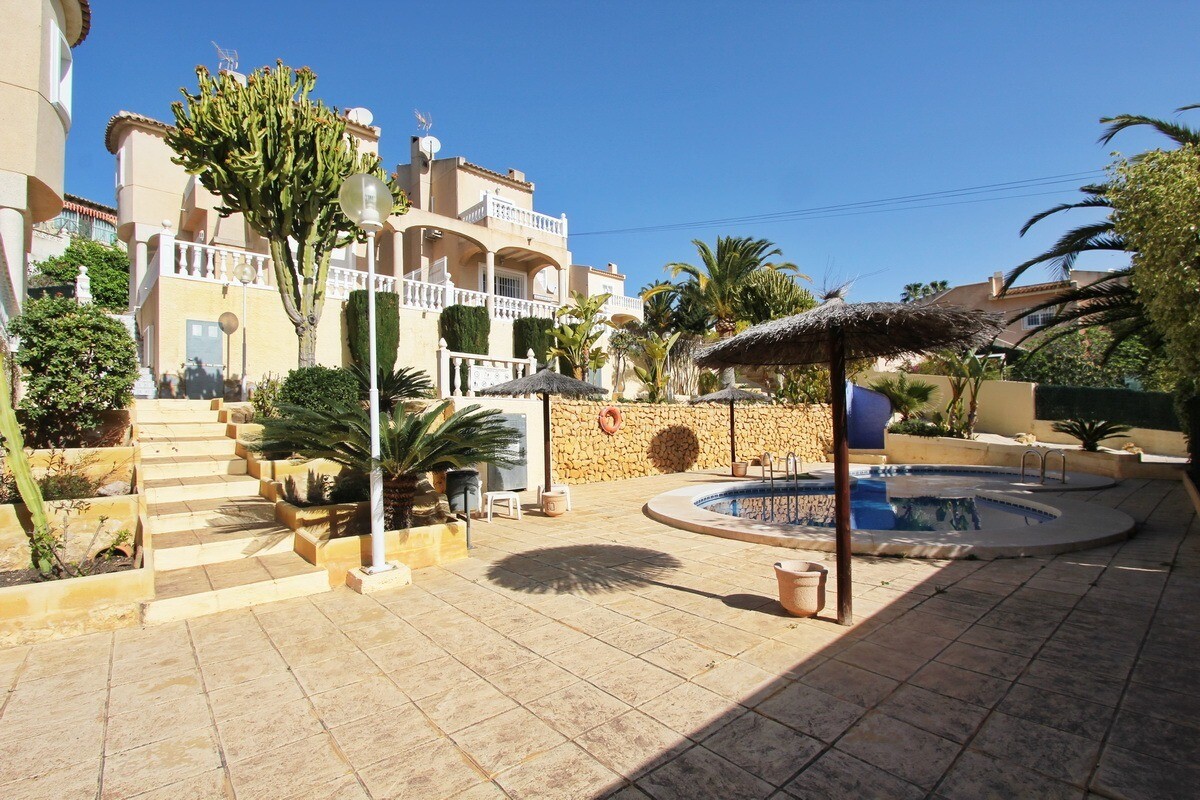 Te renoveren halfvrijstaande villa gelegen in een kleine gated community van 13 huizen. De woning wordt betreden via de elektronisch gestuurde poort die leidt naar de parkeerplaats voor 1 auto, motor, quad, etc. Het interieur van het huis is als volgt verdeeld: gastentoilet, keuken-eetkamer, woonkamer en berging. Boven: hoofdslaapkamer met groot te...rras op het zuiden, logeerkamer met terras en badkamer. Er is een mooie buitenveranda en een barbecue. Gemeenschappelijk zwembad en zithoek. De woning is aan renovatie toe en dit zie je terug in de lage prijs!