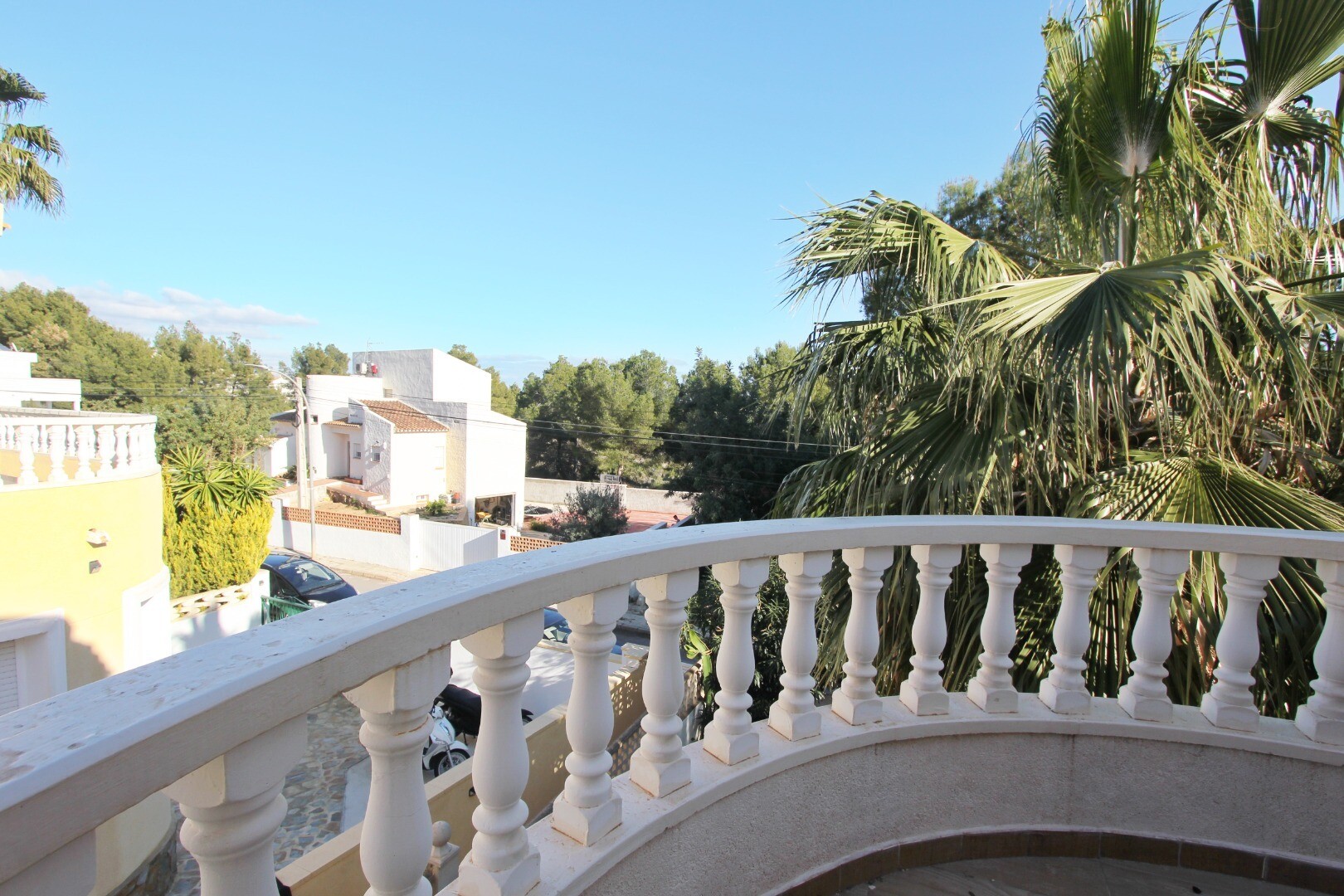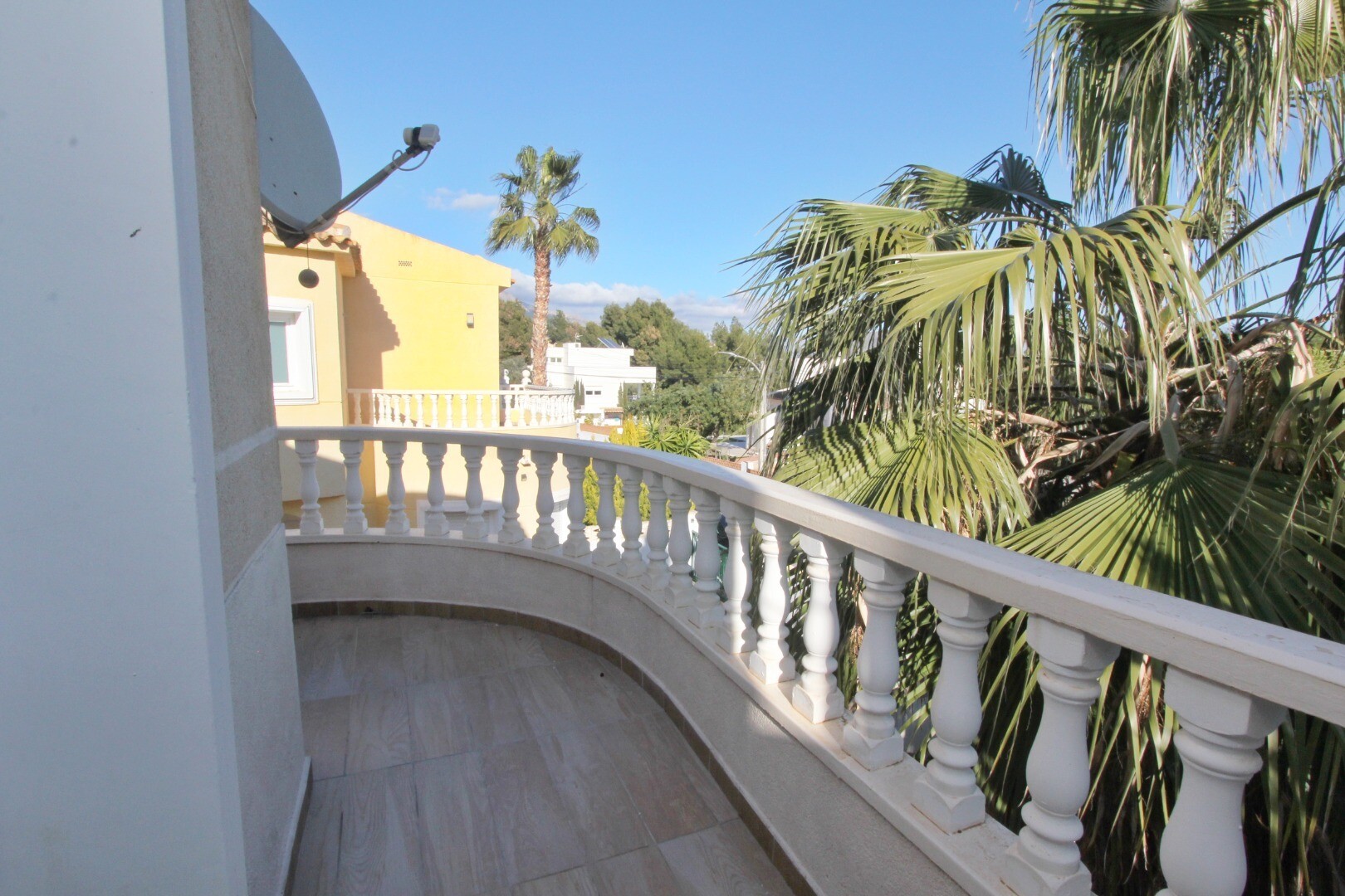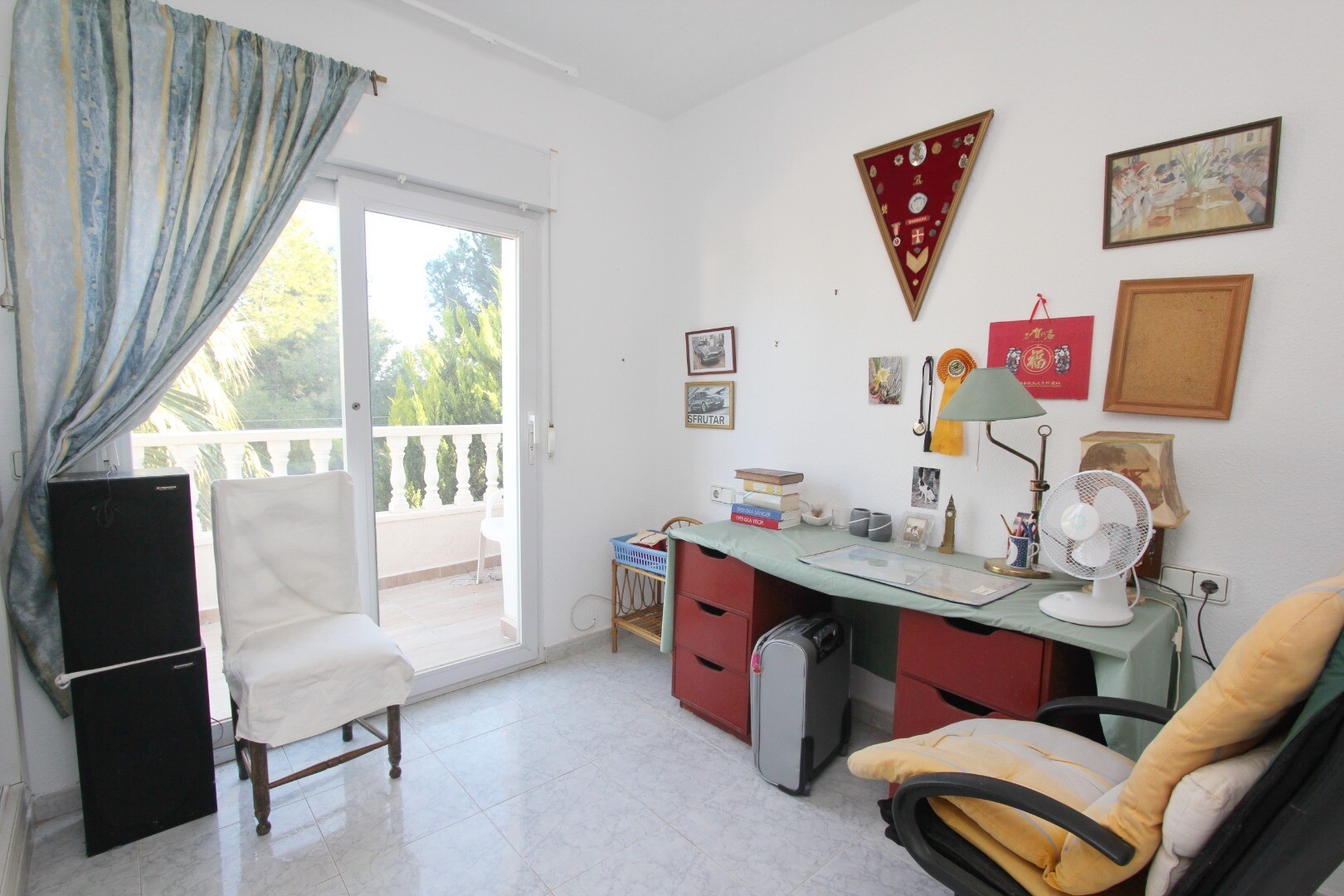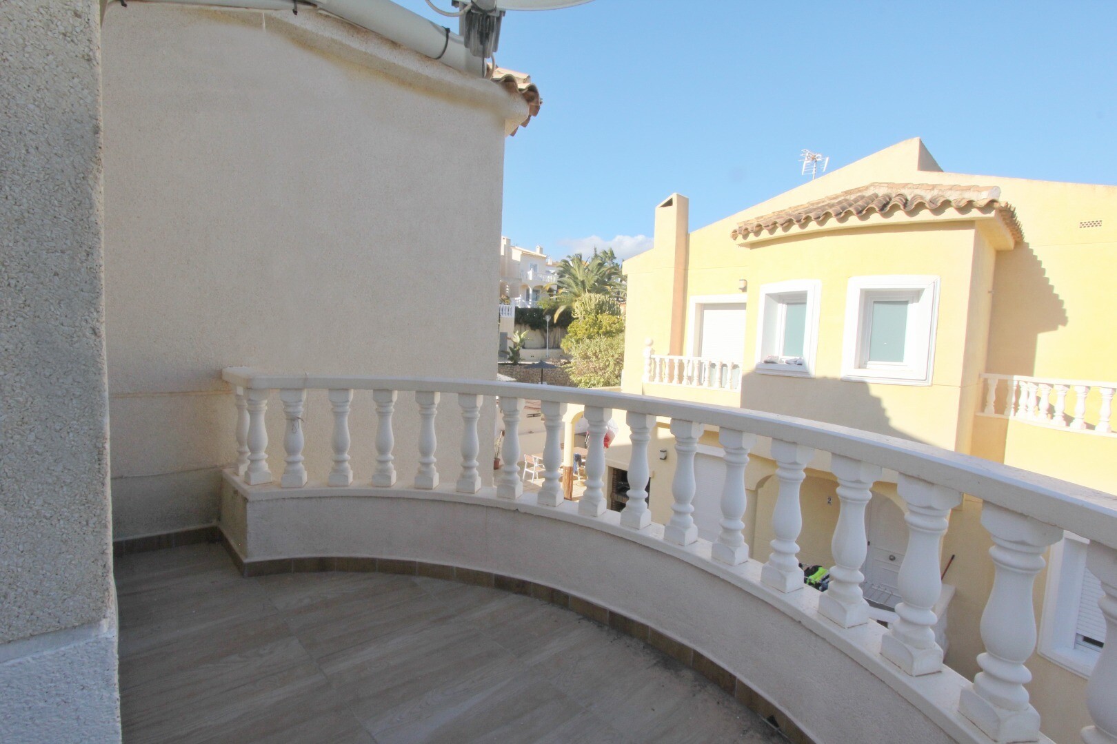 Te renoveren halfvrijstaande villa gelegen in een kleine gated community van 13 huizen. De woning wordt betreden via de elektronisch gestuurde poort die leidt naar de parkeerplaats voor 1 auto, motor, quad, etc. Het interieur van het huis is als volgt verdeeld: gastentoilet, keuken-eetkamer, woonkamer en berging. Boven: hoofdslaapkamer met groot te...rras op het zuiden, logeerkamer met terras en badkamer. Er is een mooie buitenveranda en een barbecue. Gemeenschappelijk zwembad en zithoek. De woning is aan renovatie toe en dit zie je terug in de lage prijs!