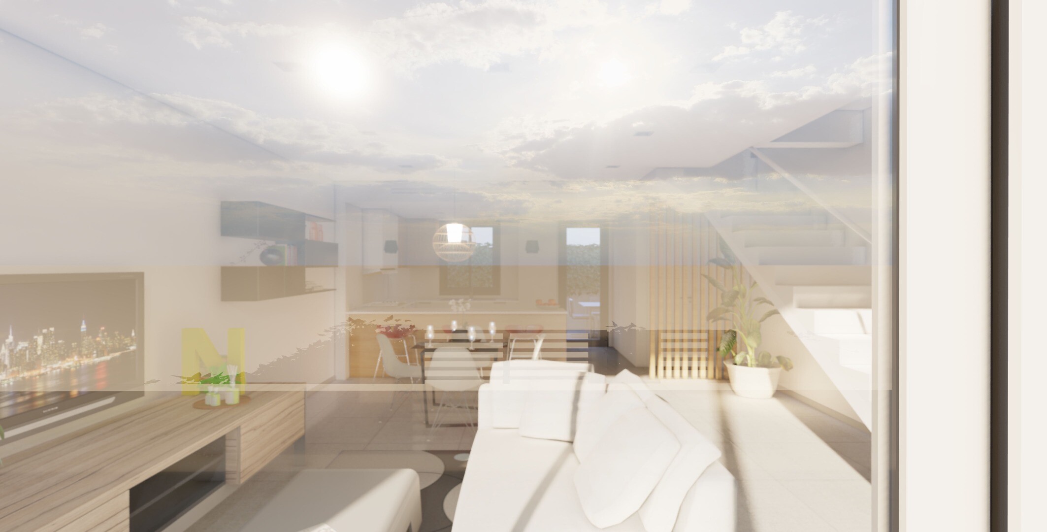 Het herenhuis heeft twee slaapkamers met inbouwka...sten en twee badkamers met hoogwaardige afwerking. De woon-eetkamer is verbonden met een geïntegreerde keuken die volledig is uitgerust met apparatuur, waardoor een gezellige en praktische sfeer wordt gecreëerd.