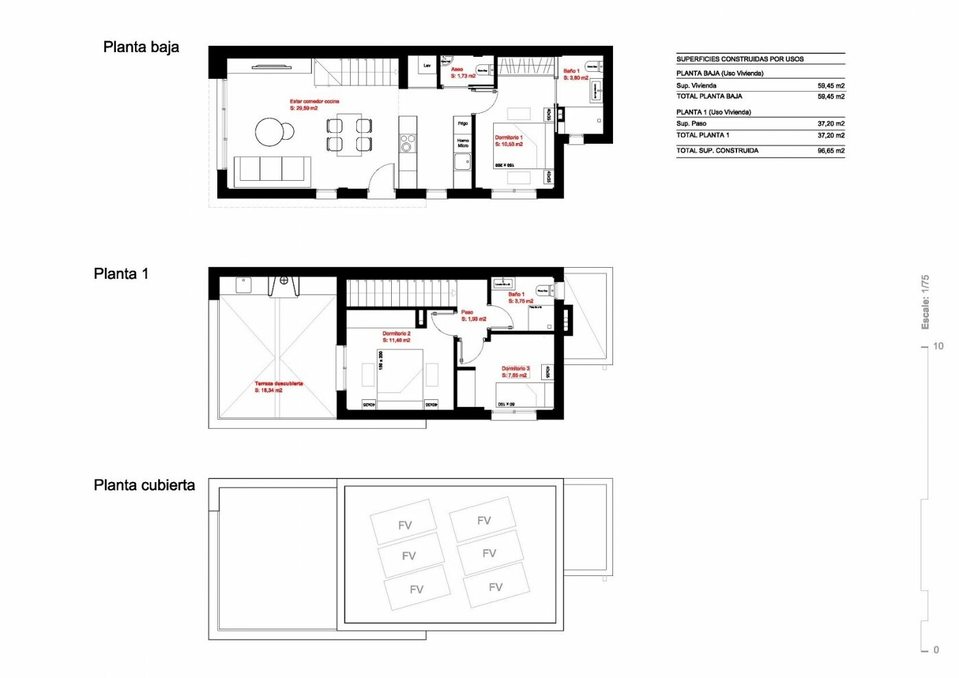Villas heeft 3 slaapkamers, 2 badkamers, privé tuin met het zwembad, eet - woonkamer met open keuken, slaapkamer met inbouwkasten, en suite badkamer op de begane gr...ond en op de eerste verdieping 2 slaapkamers, inbouwkasten en badkamer.