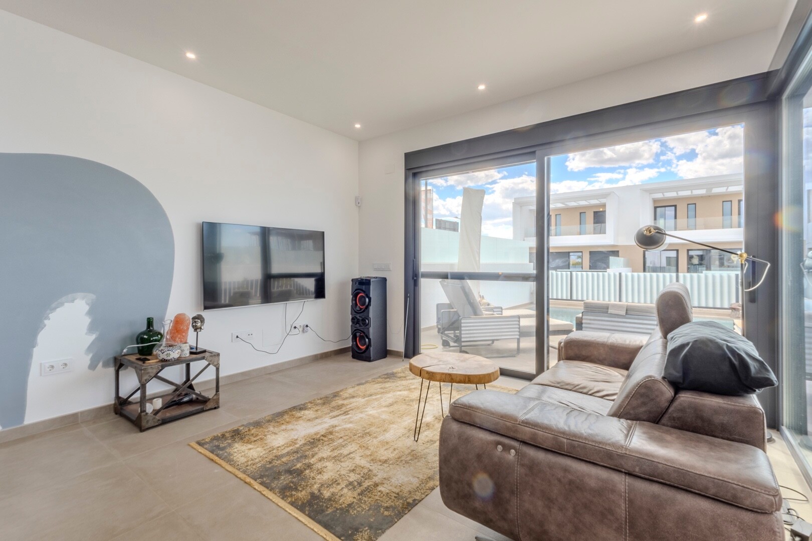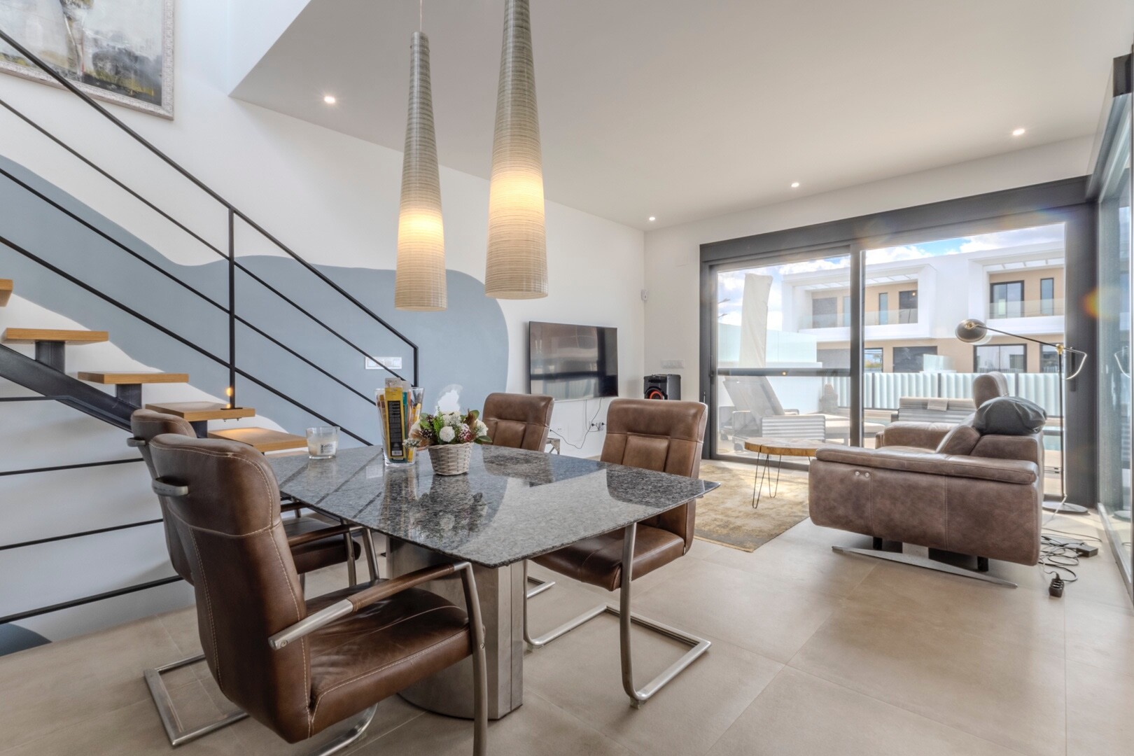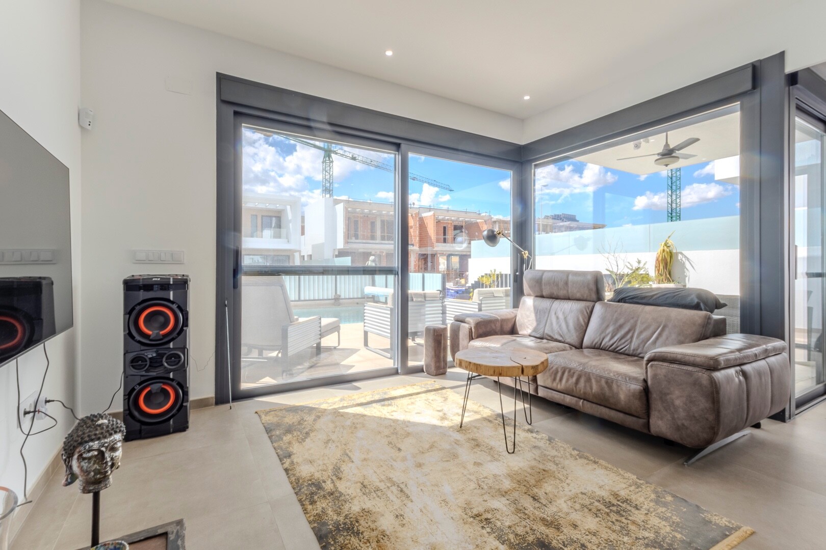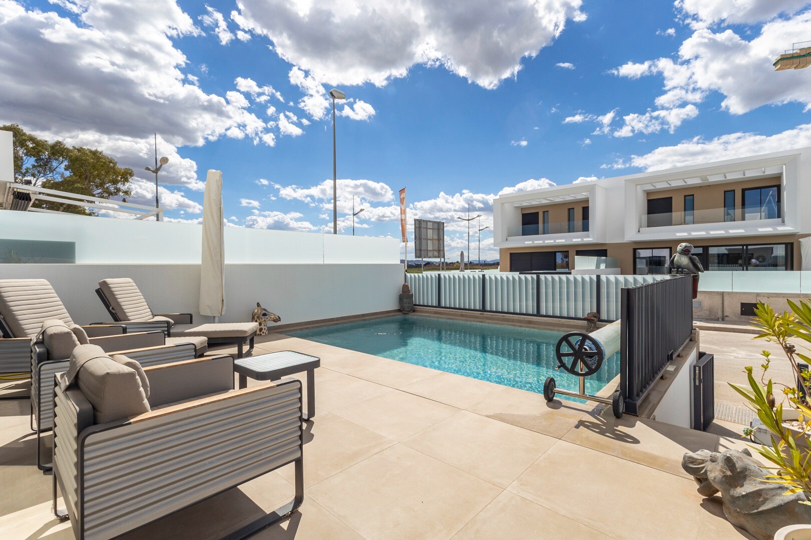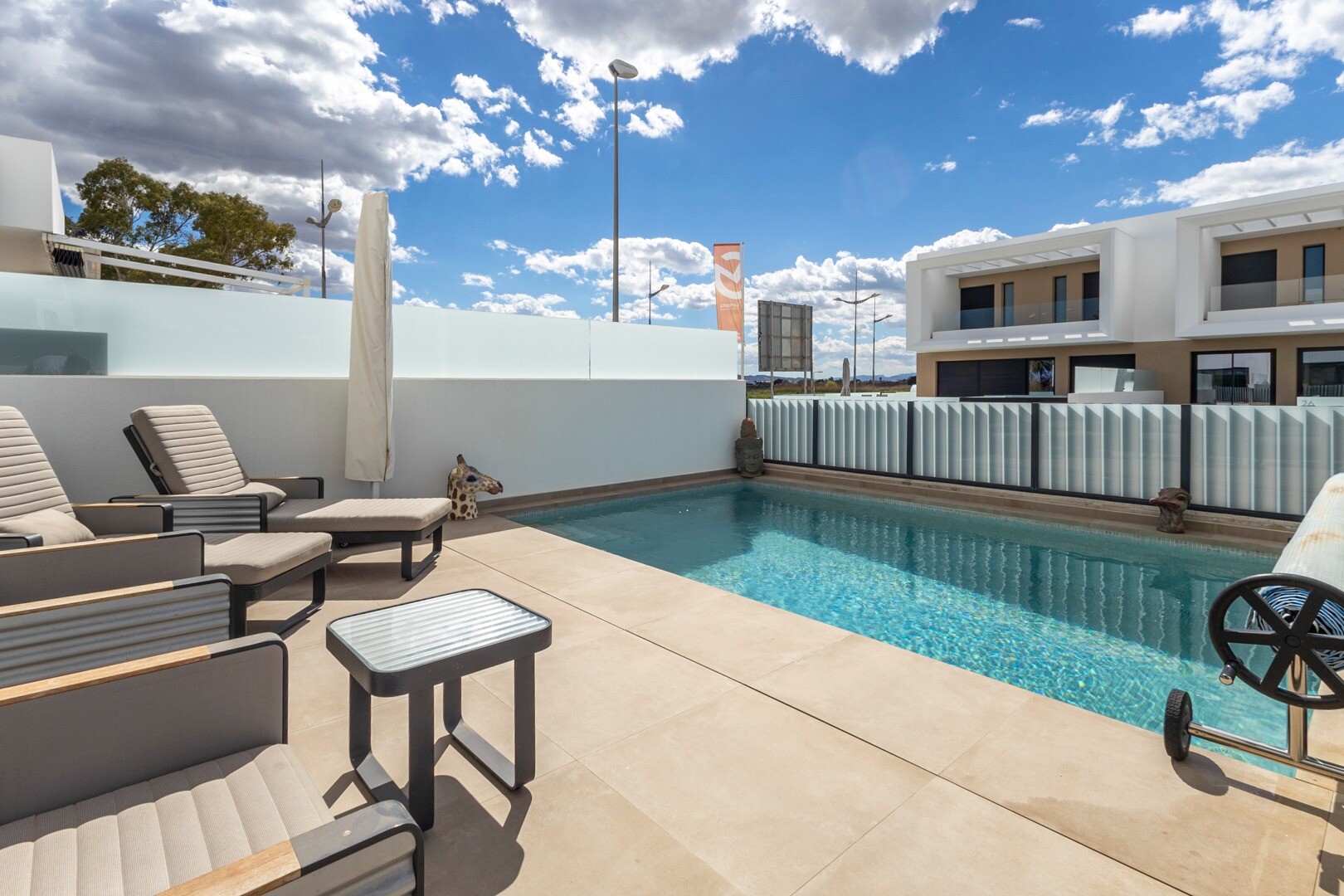 Prachtige nieuwe halfvrijstaande villa met verwarmd zwembad en dakterras in Dolores. De huidige eigenaar heeft het zelfs laten ombouwen naar een zout zwembad. De villa is van maart 2023 en voorzien van alle denkbare luxe. Er is gekozen voor luxe materialen en de woning is direct instapklaar. Met een lichte woonkamer, een mooie open keuken en een sl...aapkamer op de begane grond met daarnaast een dressing en een ensuite badkamer en een apart gastentoilet (is redelijk uniek in Spanje) Op de 1e verdieping treffen we 2 slaapkamers en een 2de badkamer en toegang tot een aansluitend terras. Met een grote kelderruimte onder de woning, welk voor verdere diverse doeleinden gebruikt kan worden, heeft deze woning zeer veel ruimte en luxe. De woning is gelegen in een nieuwbouw wijk waar nog diverse huizen in aanbouw zijn, maar op deze woning hoeft u geen jaar te wachten. De 15km lange goudgele zandstranden van Guardamar del Segura zijn bereikbaar in een 20-tal minuten. De luchthavens van Alicante en Murcia - Corvera zijn respectievelijk bereikbaar in een 30-tal minuten voor Alicante en een 45-Tal Minuten voor Murcia-Corvera.
