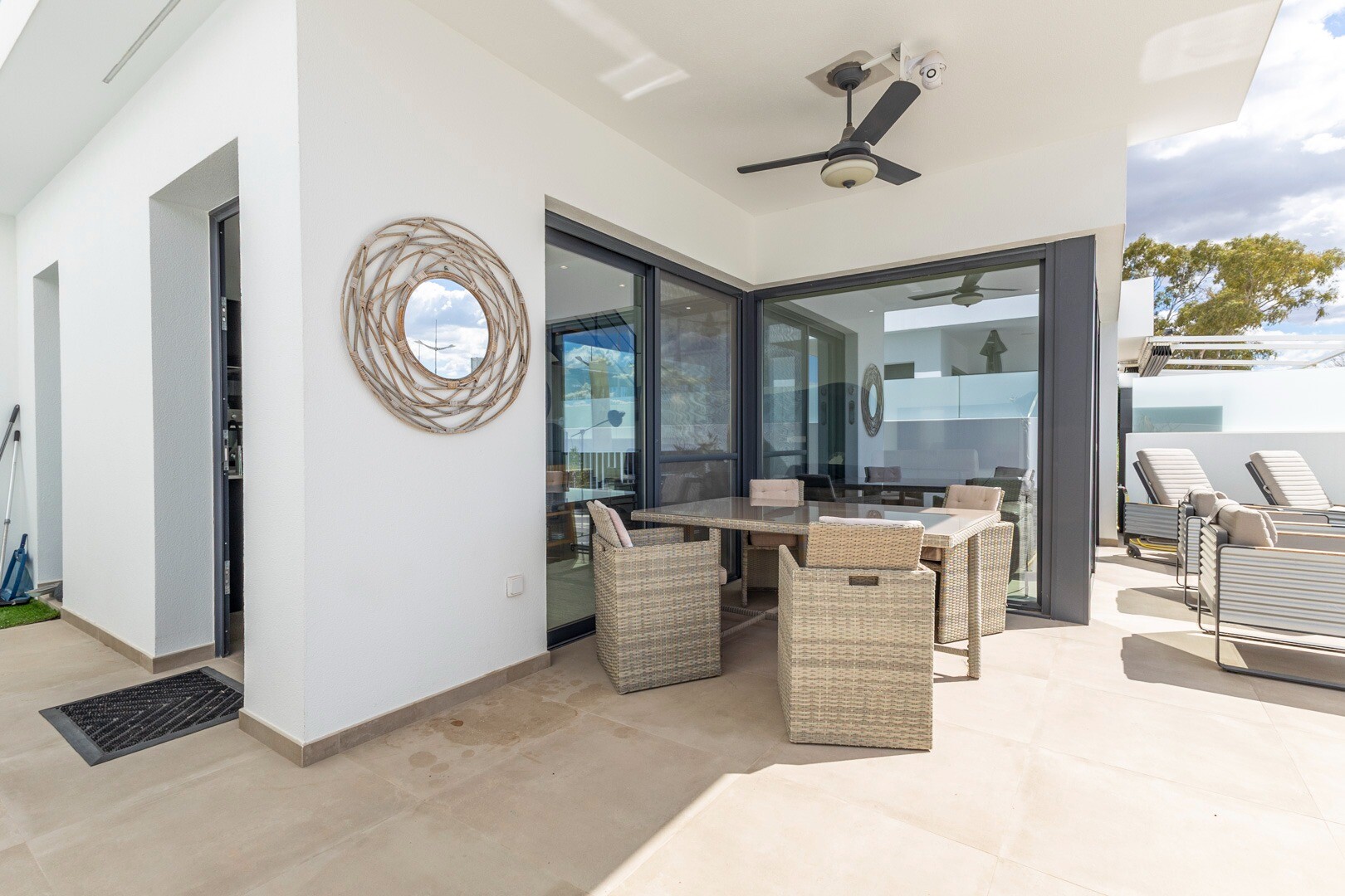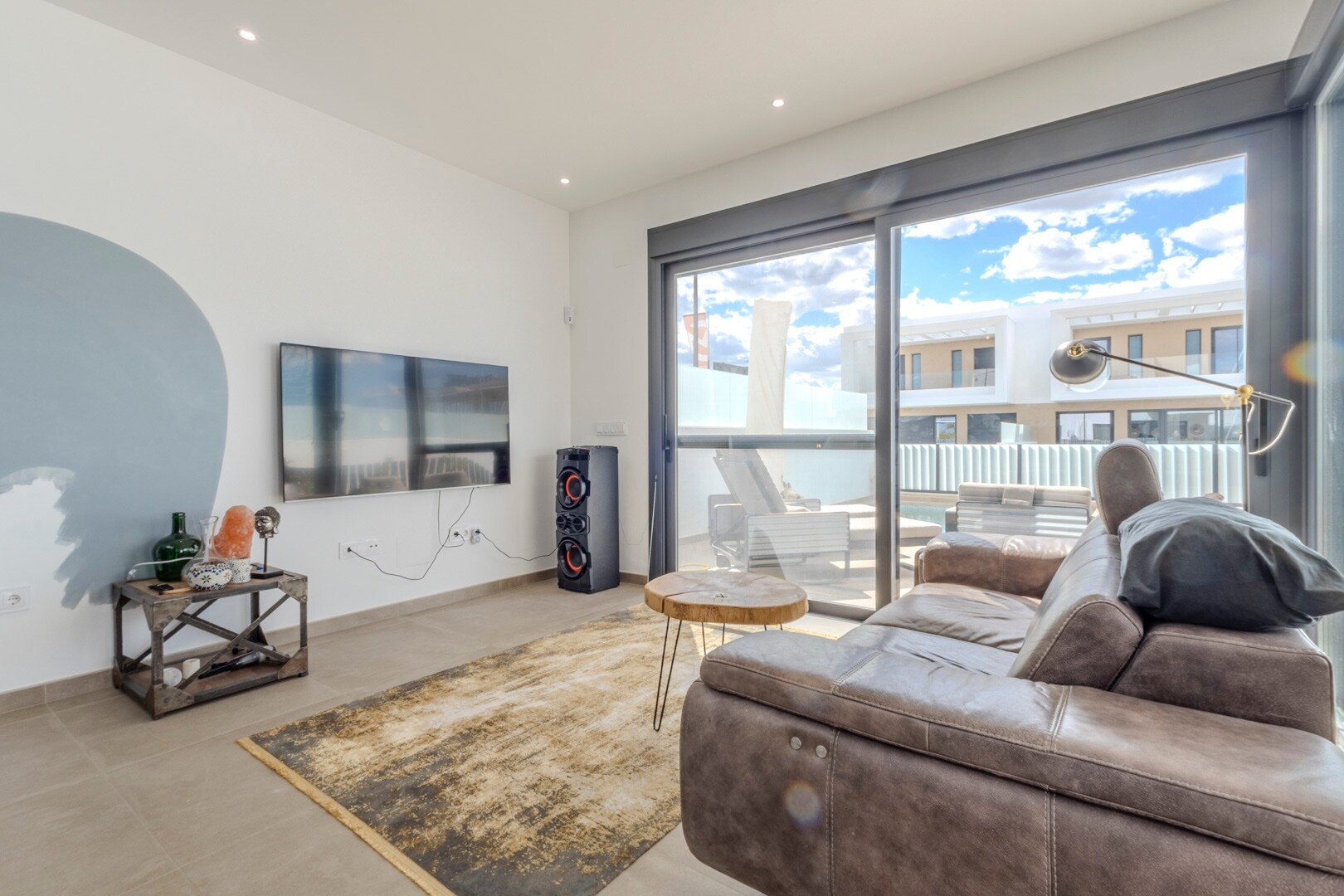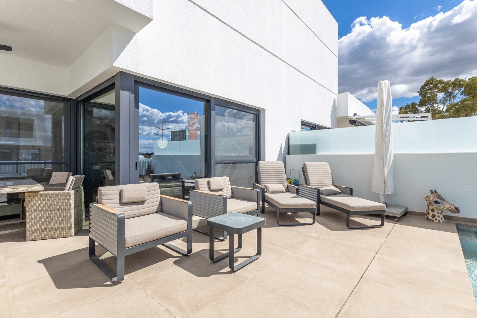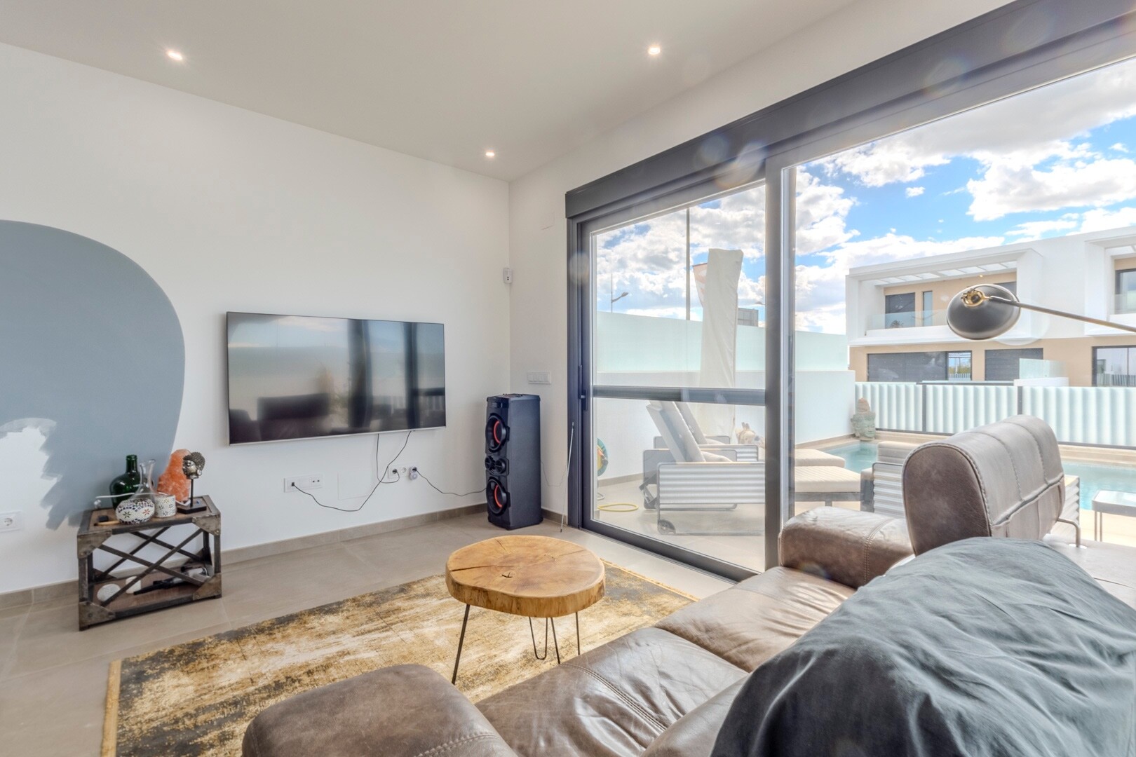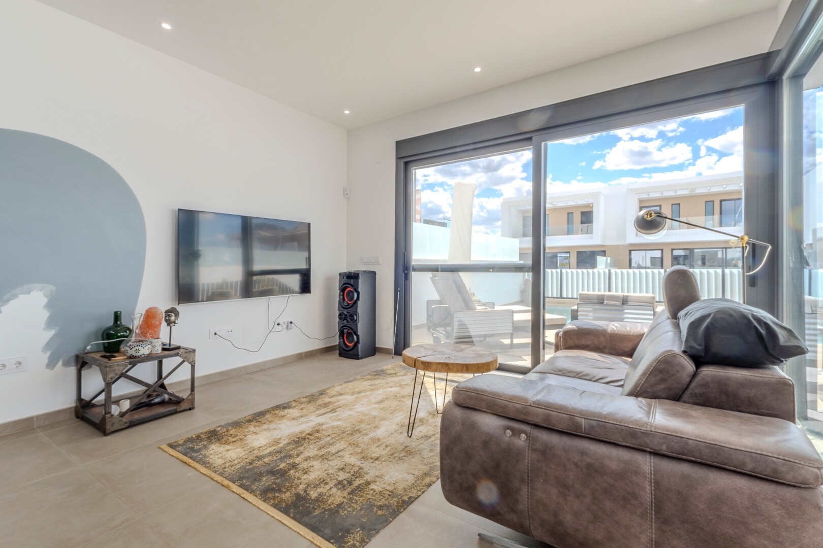 Prachtige nieuwe halfvrijstaande villa met verwarmd zwembad en dakterras in Dolores. De huidige eigenaar heeft het zelfs laten ombouwen naar een zout zwembad. De villa is van maart 2023 en voorzien van alle denkbare luxe. Er is gekozen voor luxe materialen en de woning is direct instapklaar. Met een lichte woonkamer, een mooie open keuken en een sl...aapkamer op de begane grond met daarnaast een dressing en een ensuite badkamer en een apart gastentoilet (is redelijk uniek in Spanje) Op de 1e verdieping treffen we 2 slaapkamers en een 2de badkamer en toegang tot een aansluitend terras. Met een grote kelderruimte onder de woning, welk voor verdere diverse doeleinden gebruikt kan worden, heeft deze woning zeer veel ruimte en luxe. De woning is gelegen in een nieuwbouw wijk waar nog diverse huizen in aanbouw zijn, maar op deze woning hoeft u geen jaar te wachten. De 15km lange goudgele zandstranden van Guardamar del Segura zijn bereikbaar in een 20-tal minuten. De luchthavens van Alicante en Murcia - Corvera zijn respectievelijk bereikbaar in een 30-tal minuten voor Alicante en een 45-Tal Minuten voor Murcia-Corvera.
