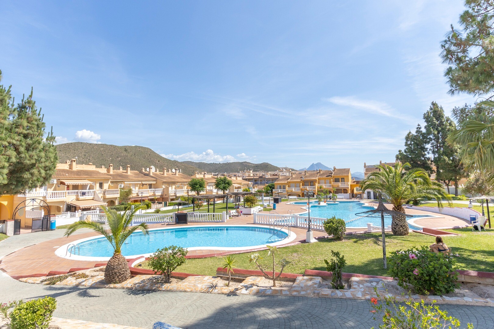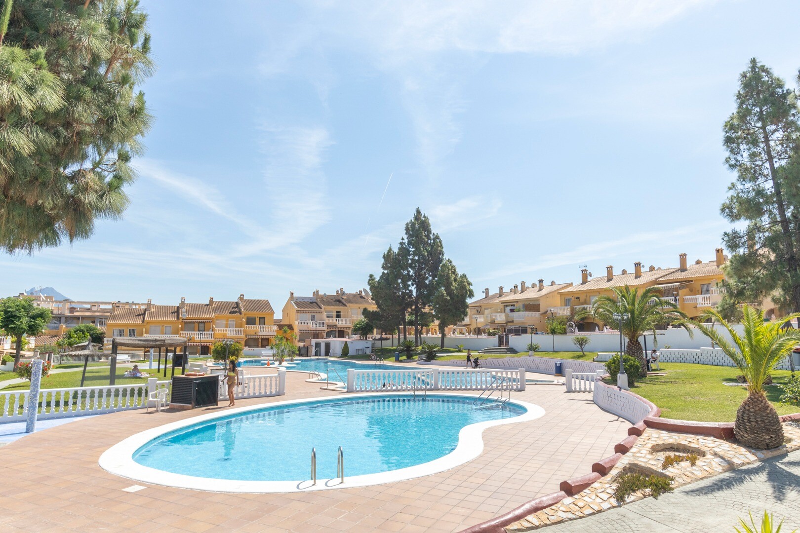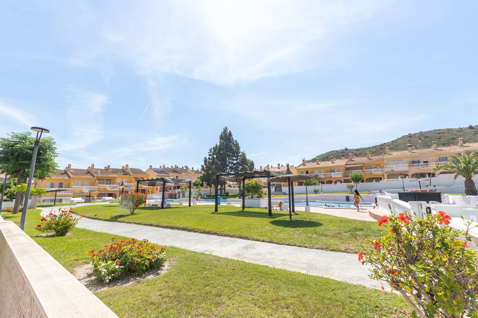 De bungalow omvat een complete badkamer en een ...gastentoilet, wat praktisch is voor gezinnen of gasten. Met twee terrassen biedt het pand de mogelijkheid om te genieten van buitenruimtes met uitzicht op de tuinen en het gemeenschappelijke zwembad, wat zorgt voor een ontspannen en gezellige sfeer.