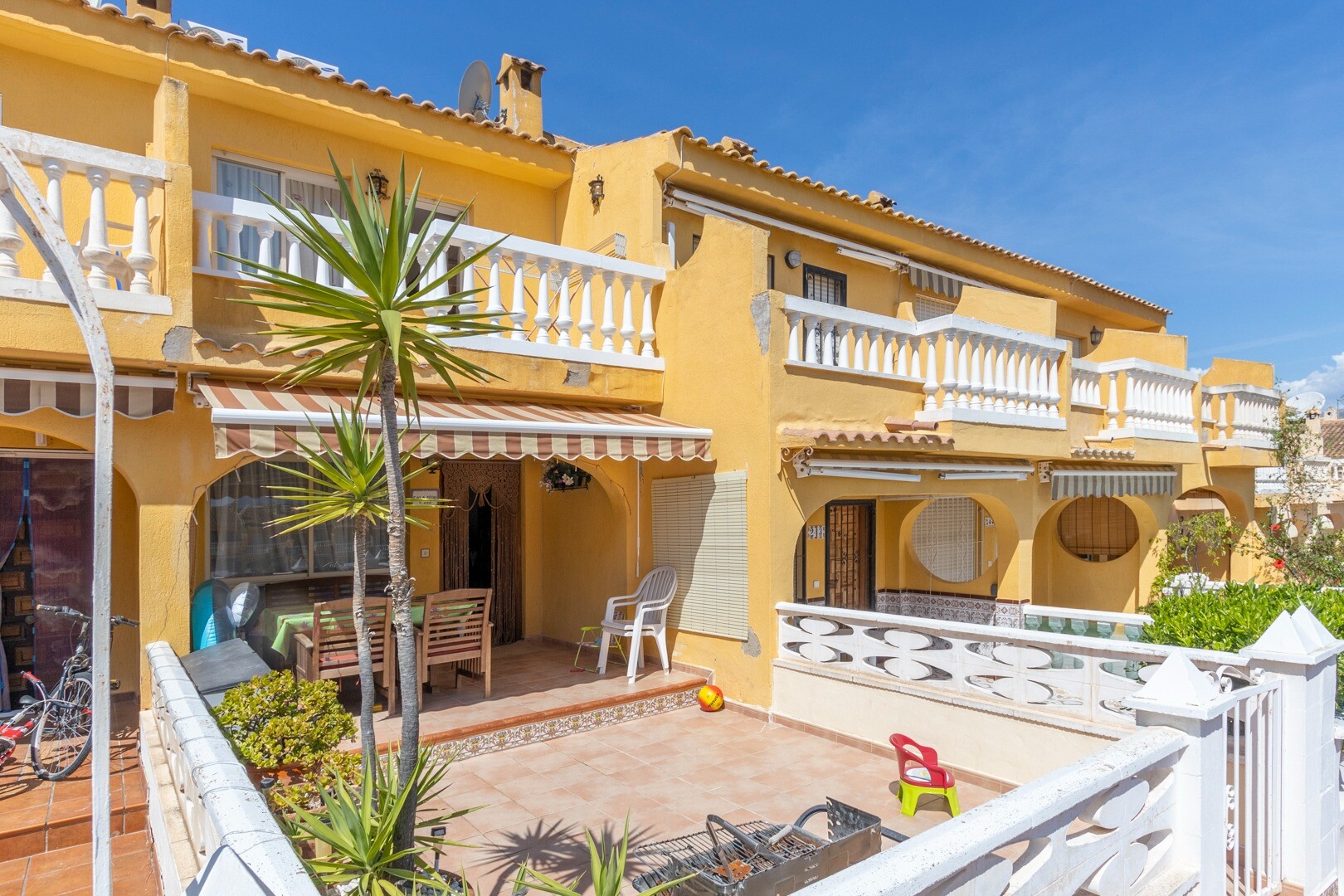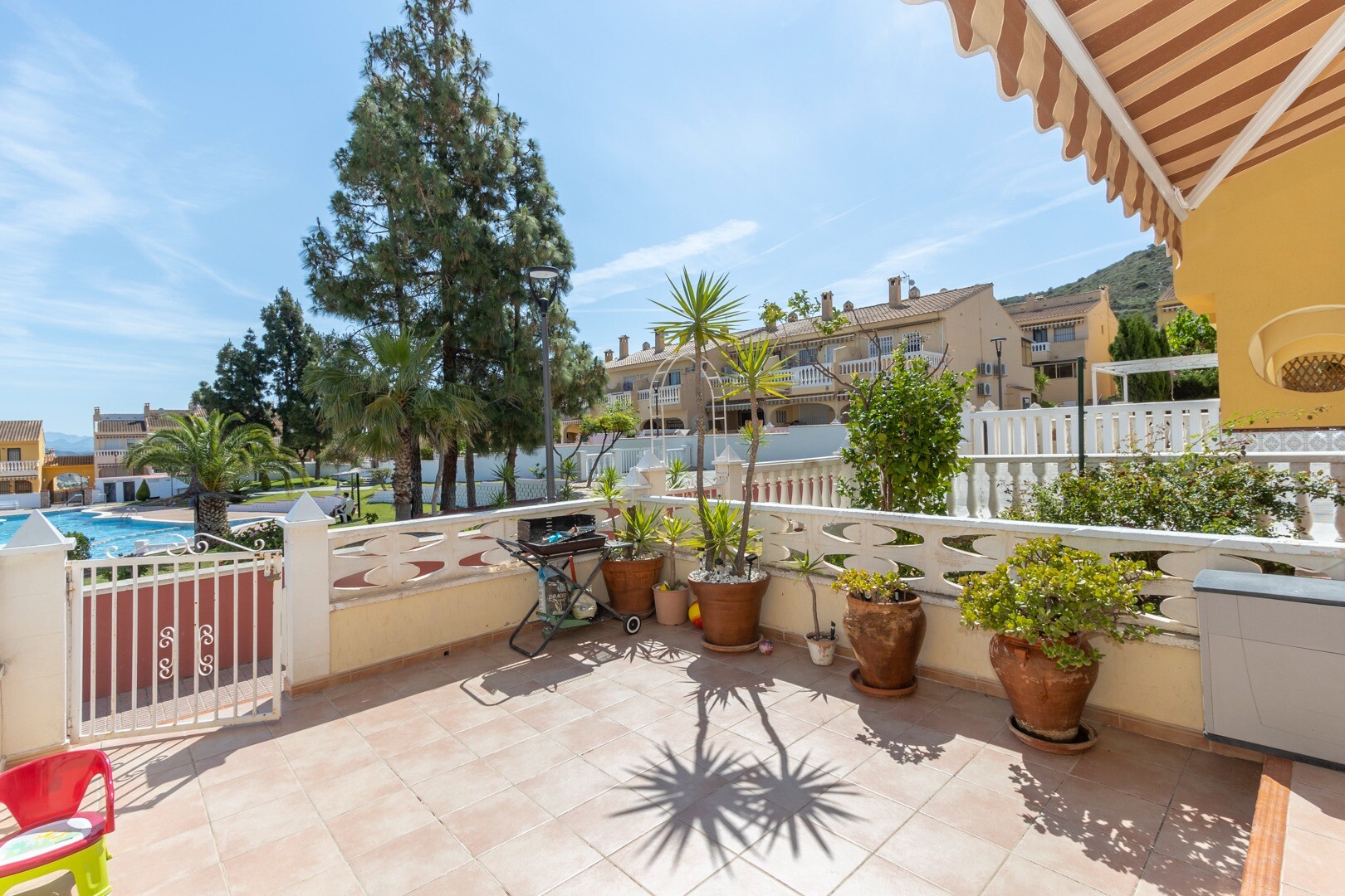 Op het gebied van voorzieningen omvat het pand een gemeenschappelijk zwembad, ideaal voor warme dagen. Het beschikt ook over een galerij/pantry en een wasruimte, elementen die de functionaliteit van de ruimte verbeteren. Het huis wordt volledig gemeubileerd verkocht, inclusief apparaten, wat de verhuizing vergemakkelijkt.