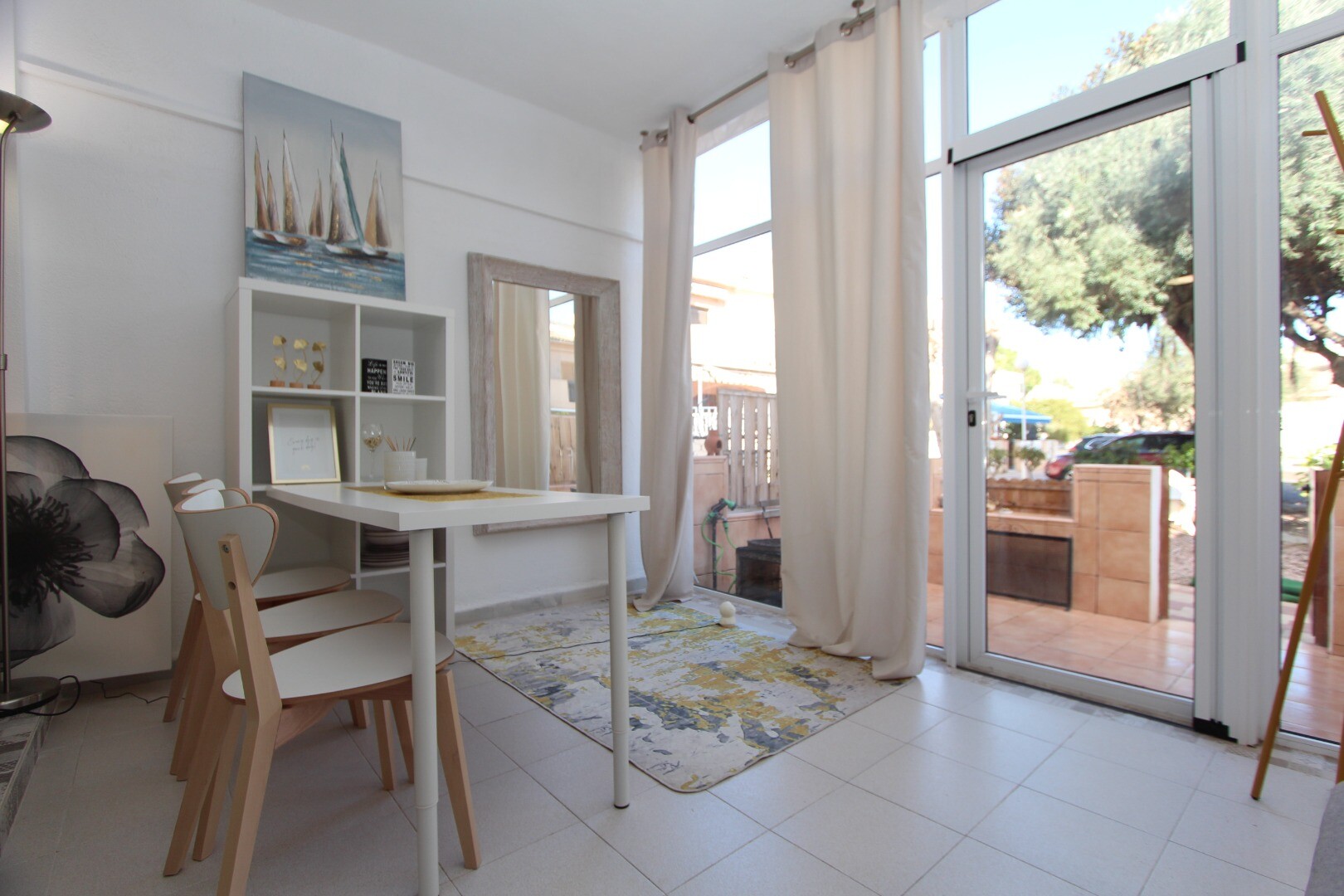 De woning zelf verkeert in uitstekende staat en, hoewel er een hoofdslaapkamer is, is de zolder ingericht als gastenslaapkamer, waardoor het veel meer biedt dan op het eerste gezicht lijkt. Het huis is geüpdatet en gerenoveerd, met aandacht voor natuurlijk licht en comfort op de begane grond, die een grote bank voor de open haard heeft, perfect voor gezellige winteravonden. De keuken is klein maar zeer functioneel, en de eetkamer is licht en uitnodigend.