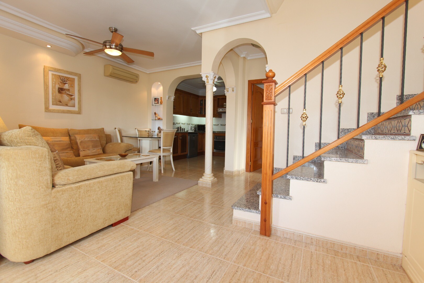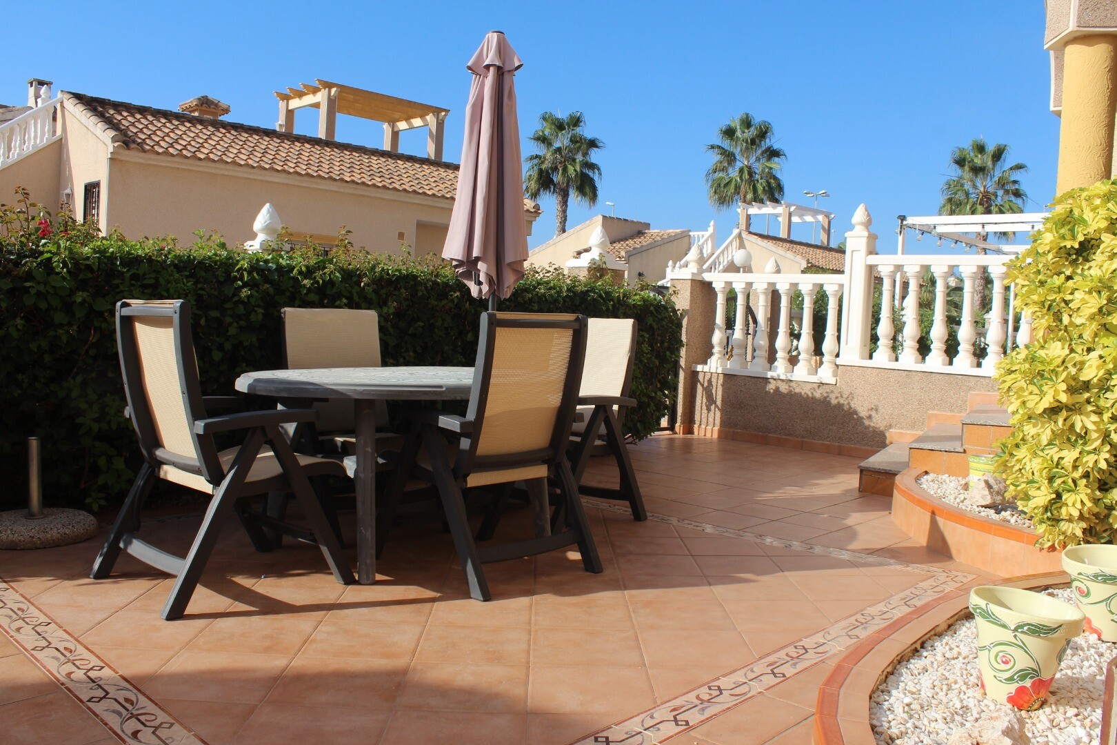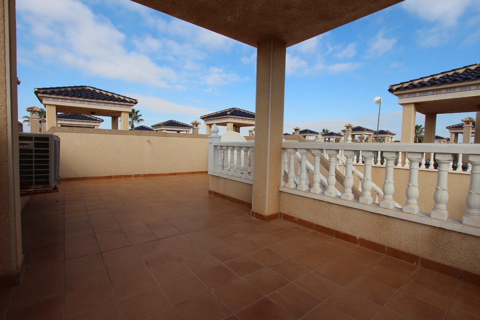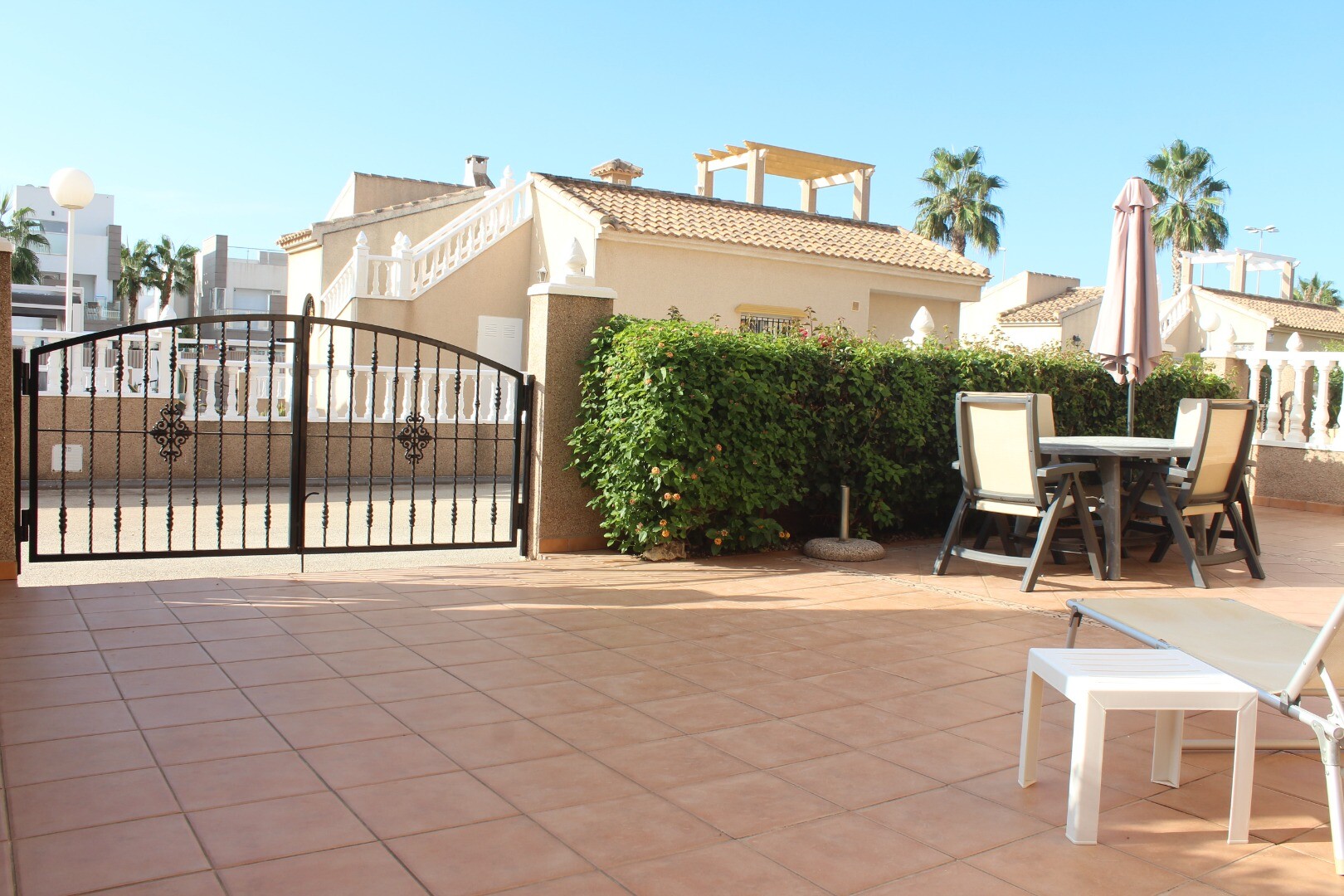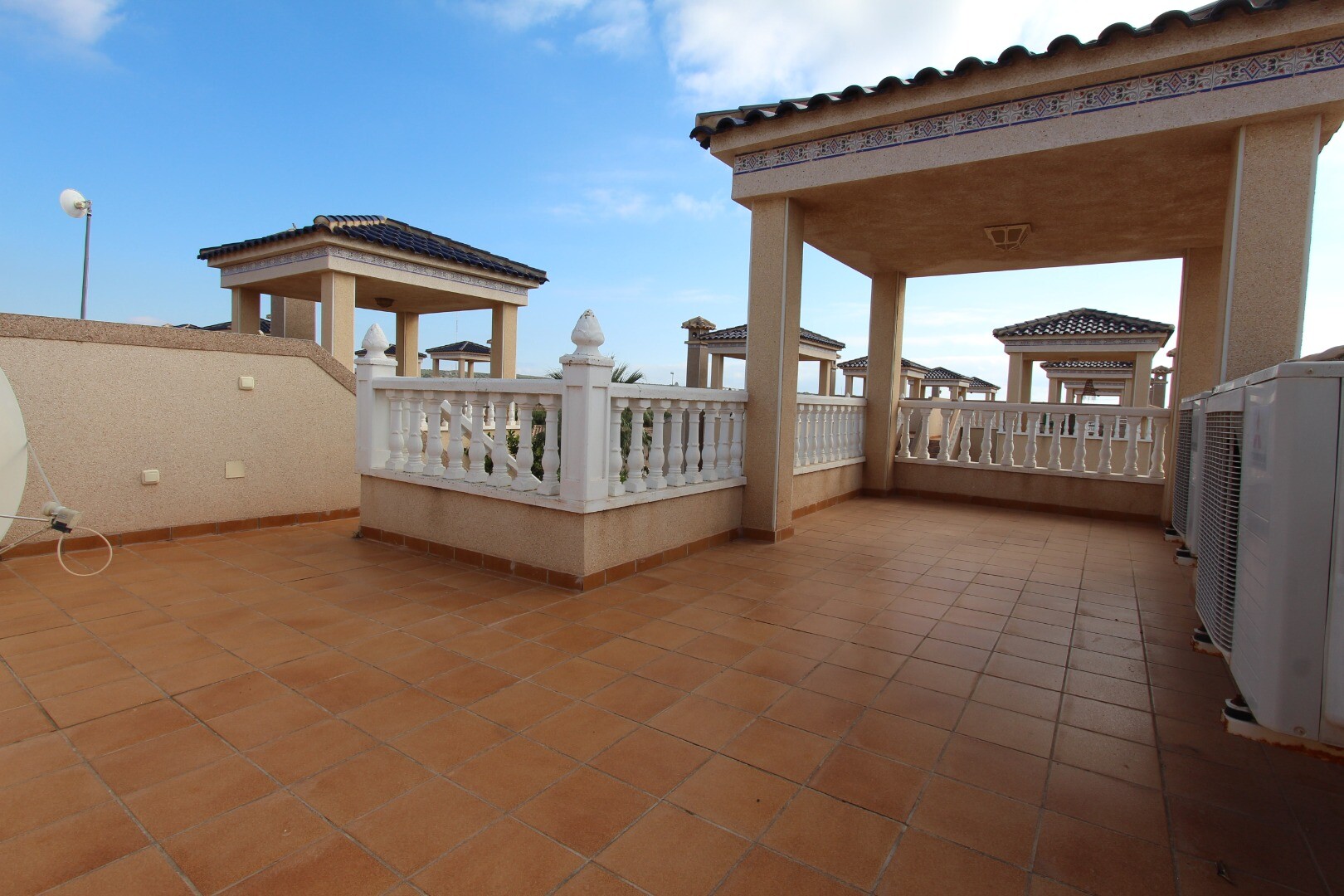 Ben je op zoek naar een woning op een rustige locatie, met grote terrassen, privésolarium en klaar om in te trekken? Wij presenteren dit herenhuis in de wijk El Raso, Guardamar del Segura, Alicante.