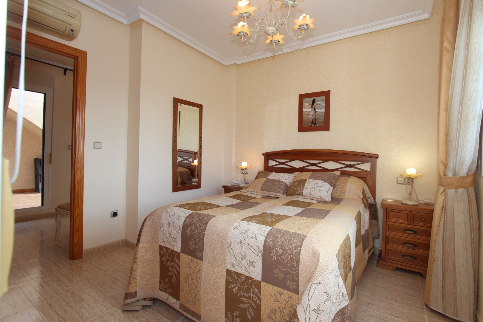 Op de bovenverdieping heeft de woning twee tweepersoonsslaapkamers, waarvan een met toegang tot een klein terras, met ingebouwde kasten en een complete badkamer. Tot slot is er op de bovenste verdieping een groot solarium met vrij uitzicht waar je kunt genieten van het klimaat en de mediterrane zon wanneer je maar wilt.