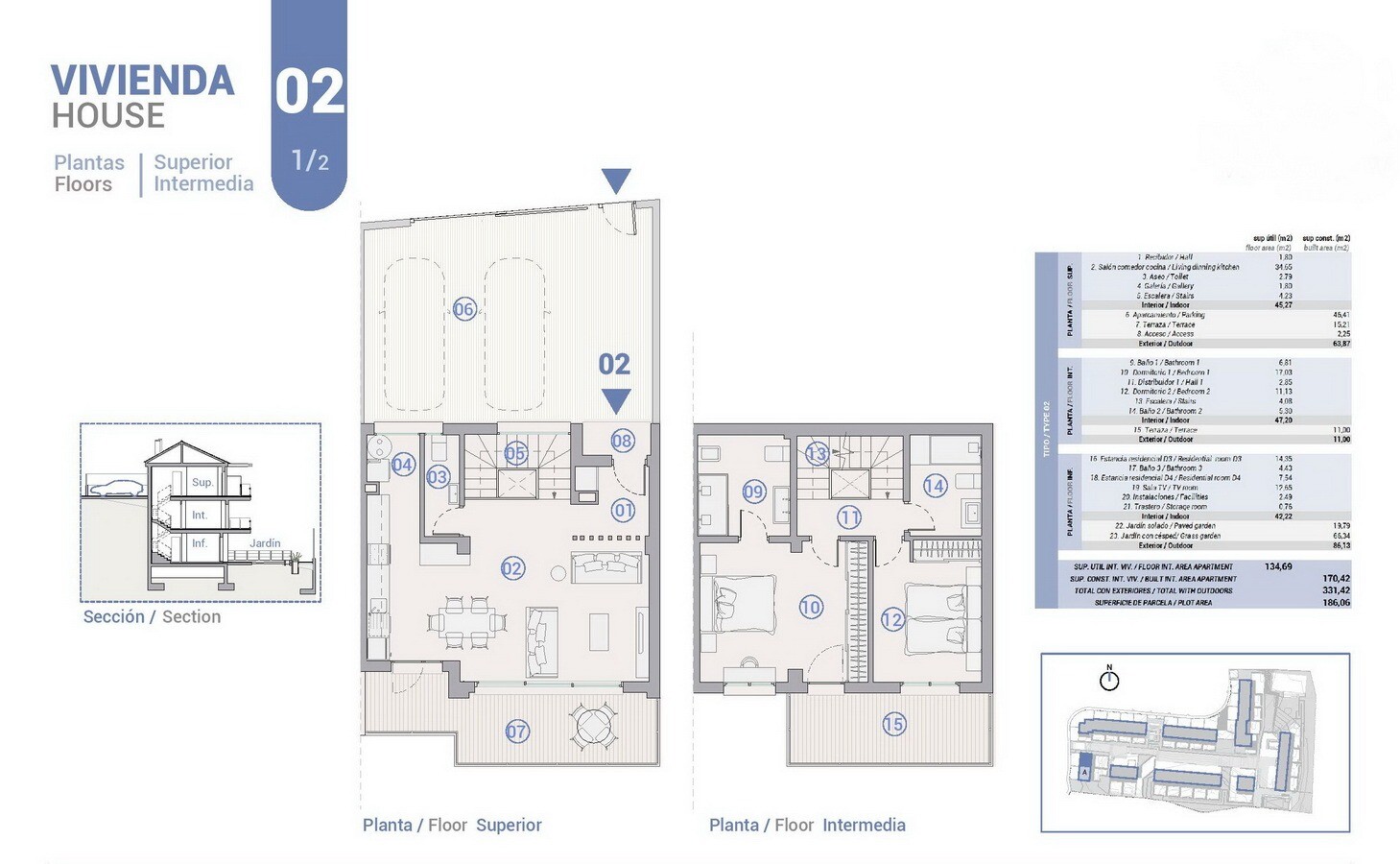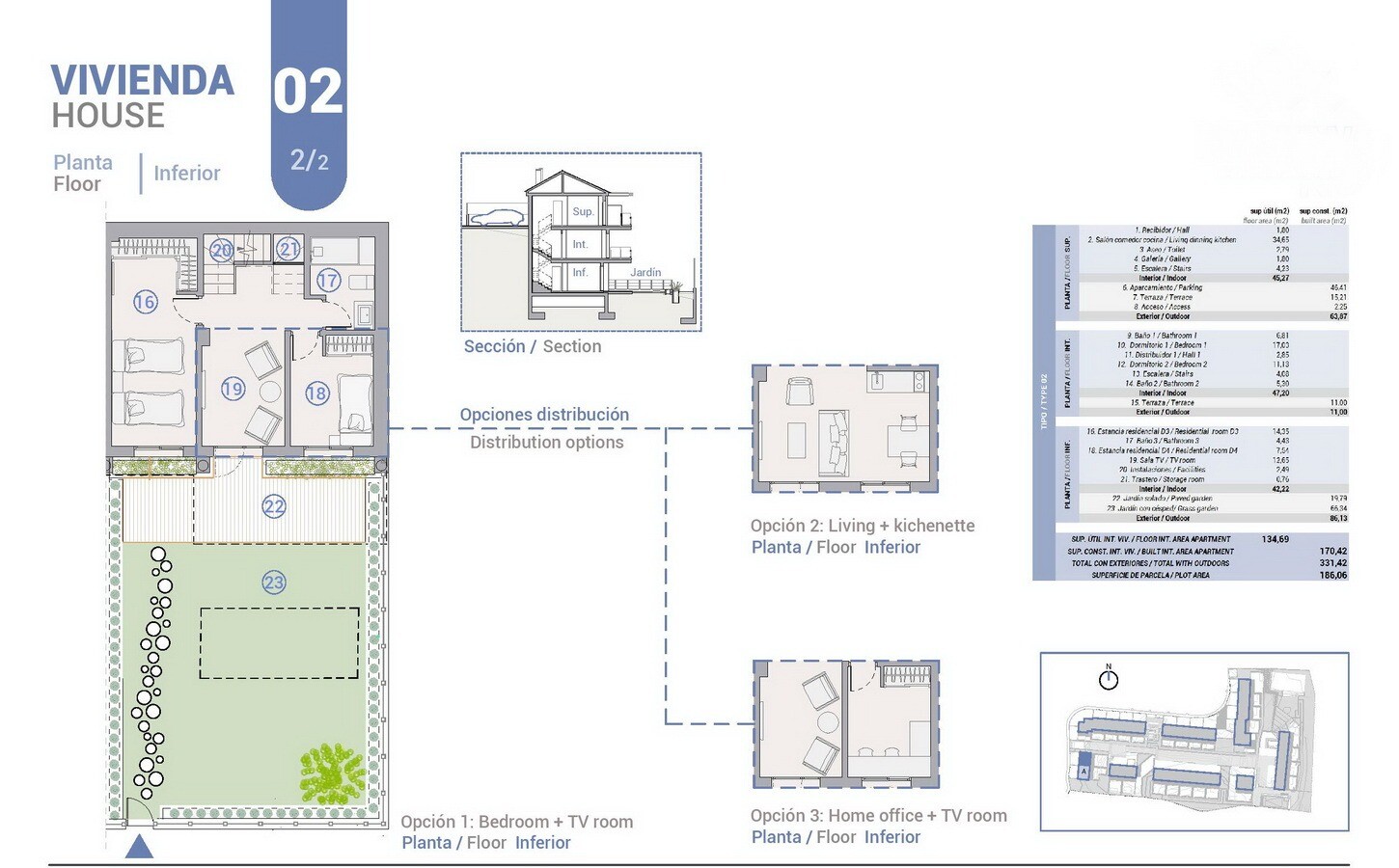De woningen hebben diverse terrassen met uitzicht, parkeergelegenheid voor twee auto’s en een tuin met directe toegang tot de gemeenschappelijke ruimtes. Velen van hen hebben ook een solarium waar u met uw vrienden 's avonds buiten kunt genieten.
