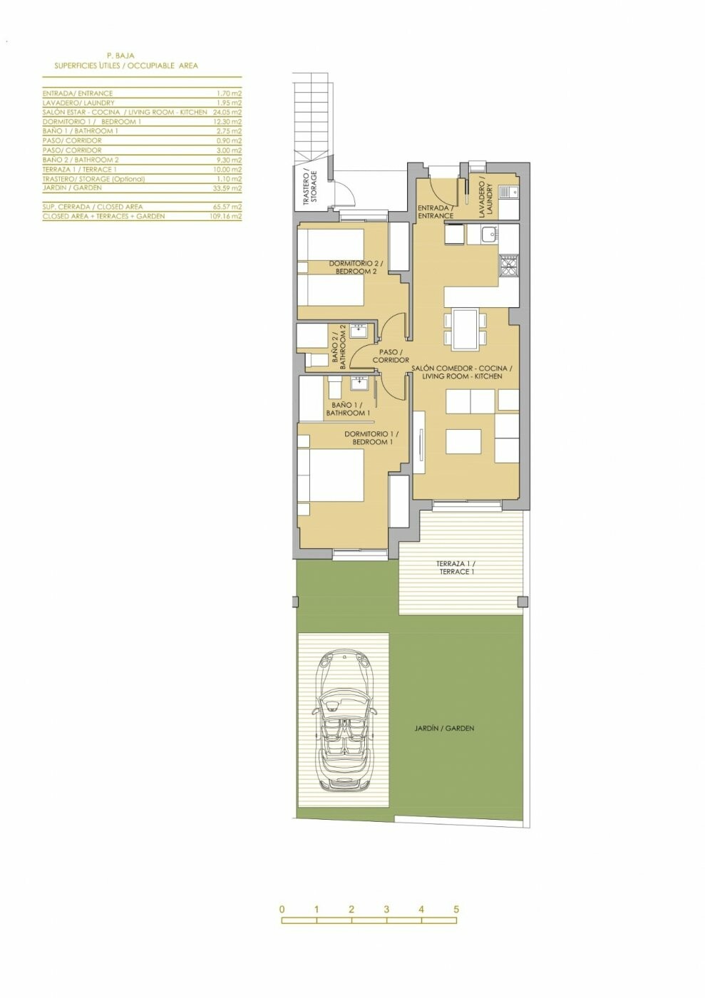 Complex met gemeenschappelijke voorzieningen en zwembad bestaat uit 2 en 3 slaapkamers bungalows, op de begane grond met eigen tuin en bovenste verdieping met prive solarium, open keuk...en met de woonkamer, inbouwkasten, terras.